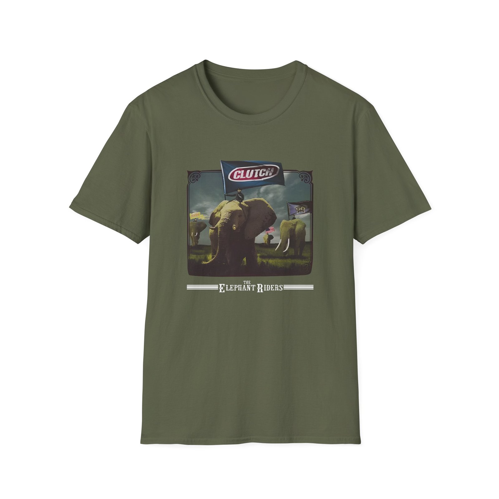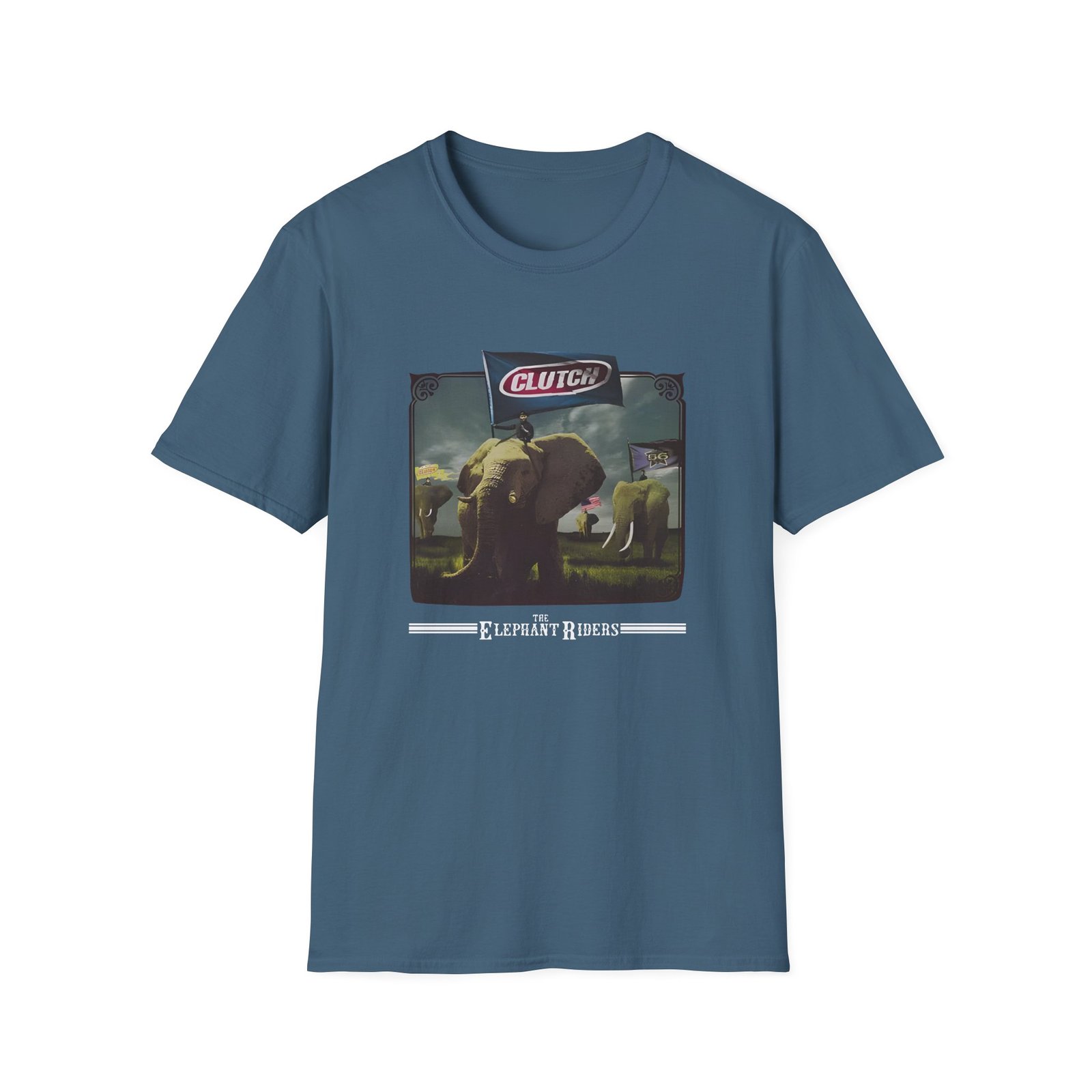 The Clutch Elephant Riders unisex soft-style t-shirt puts a new spin on casual comfort. Made from very soft materials, this tee is 100% cotton for solid colors. Heather colors and sports grey include polyester. The shoulders have twill tape for improved durability. There are no side seams. The collar is made with ribbed knitting to prevent curling damage.
