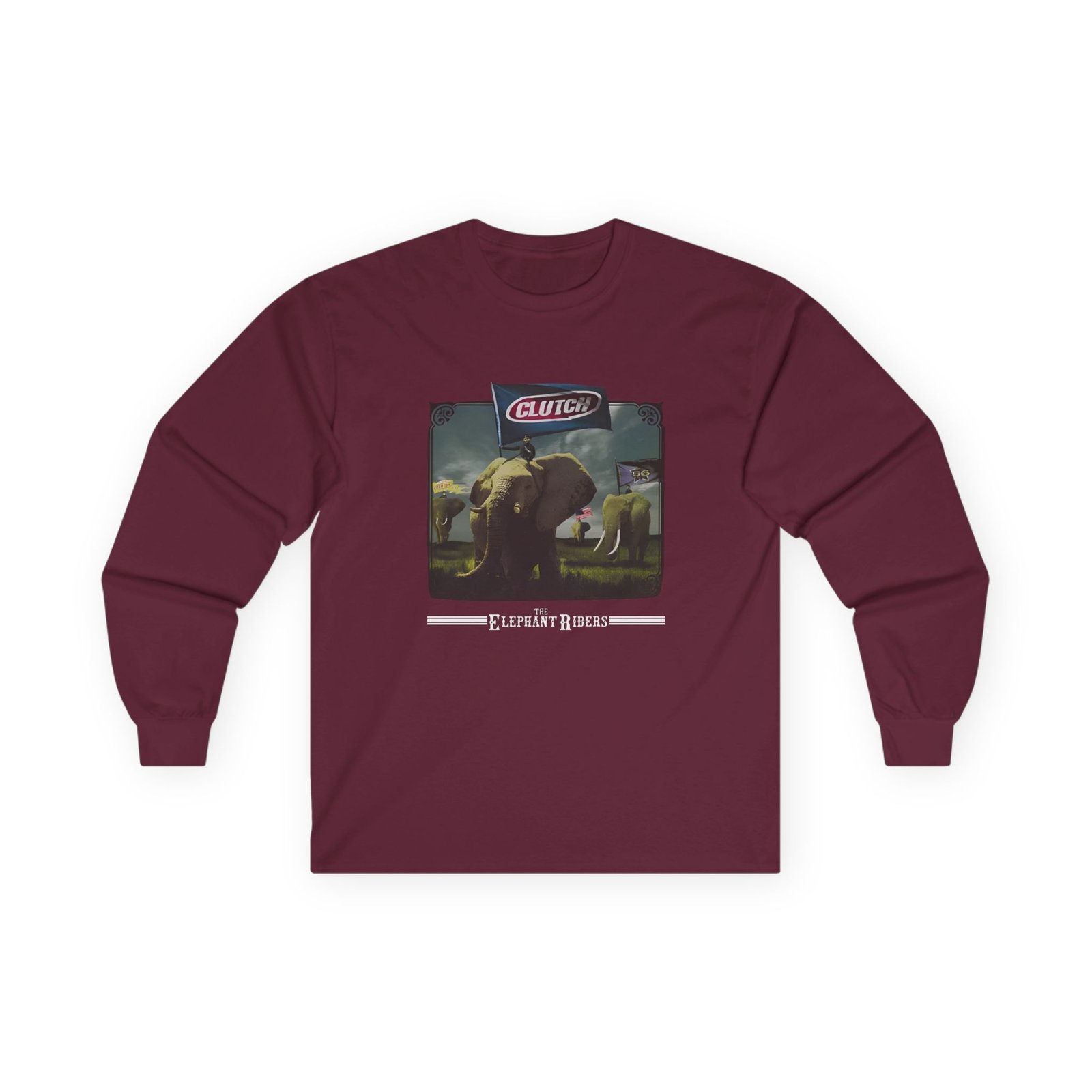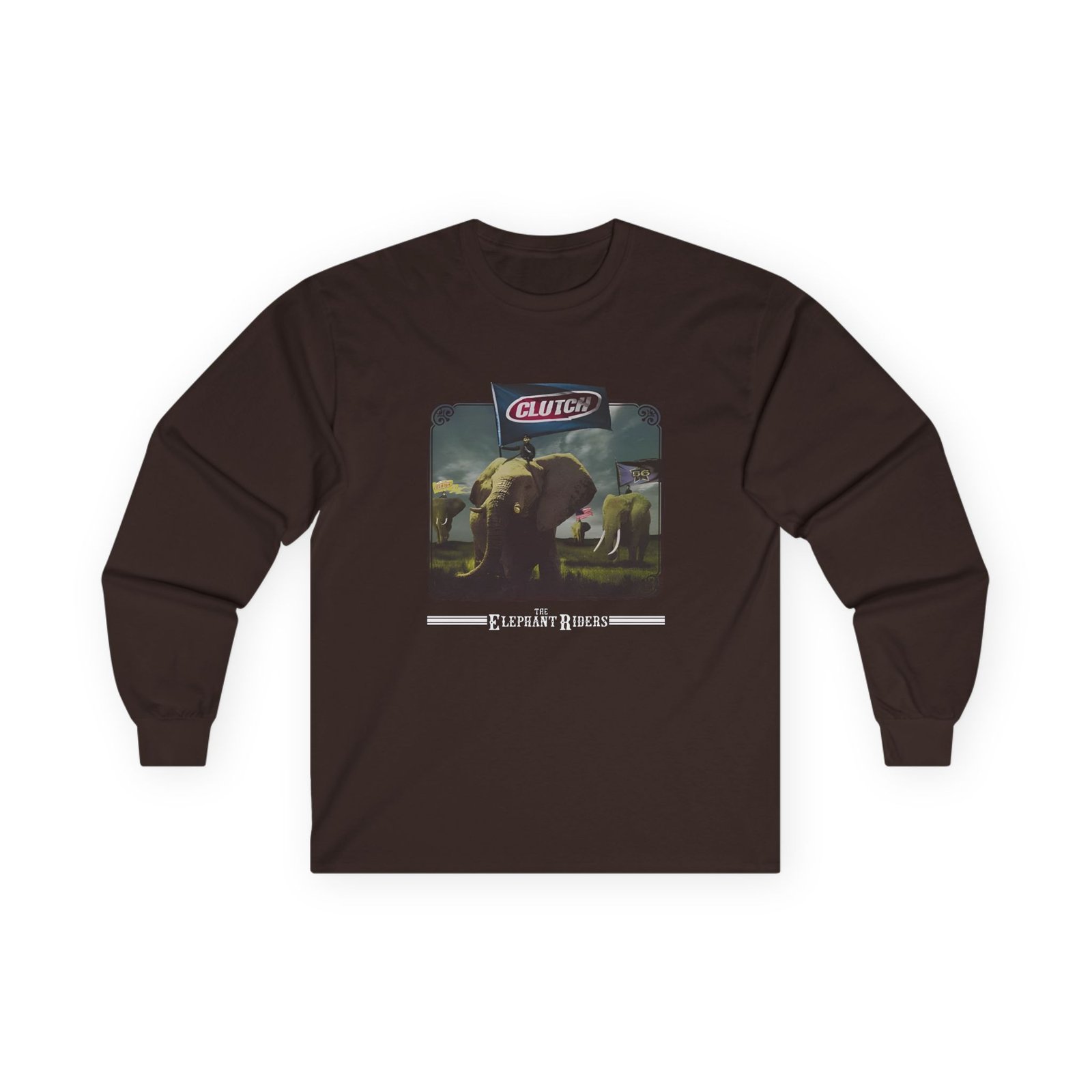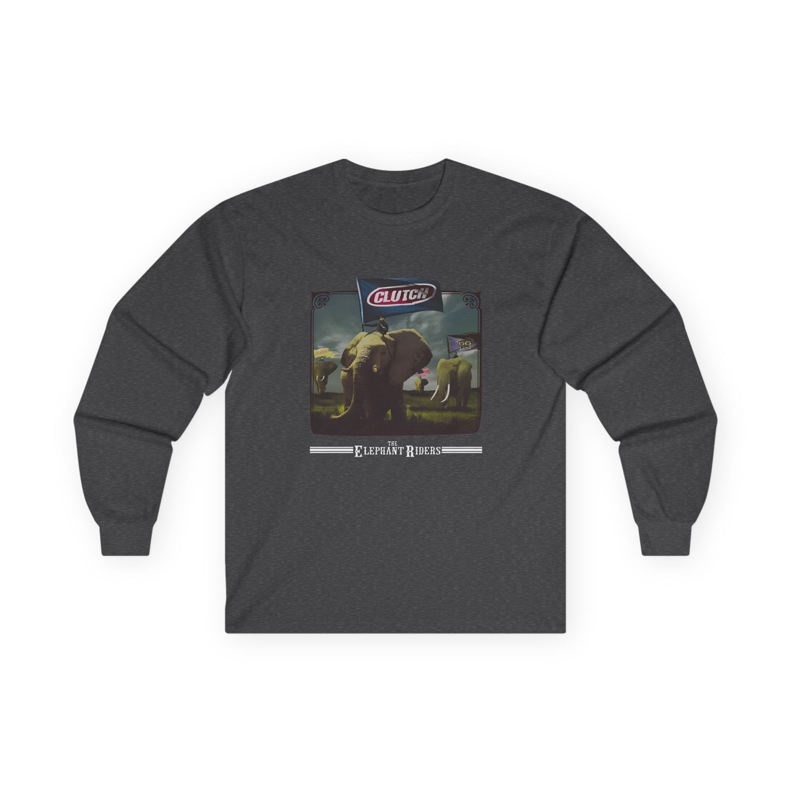 A bit more formal than a standard-issue t-shirt, the Clutch Elephant Riders ultra cotton long sleeve tee is a clear comfort winner. The sleeves also act as a nice frame. There are no side seams. The shoulders are taped for improved durability. This makes for a good fitting around the shoulders and neck. The cotton used for these shirts is environmentally friendly.