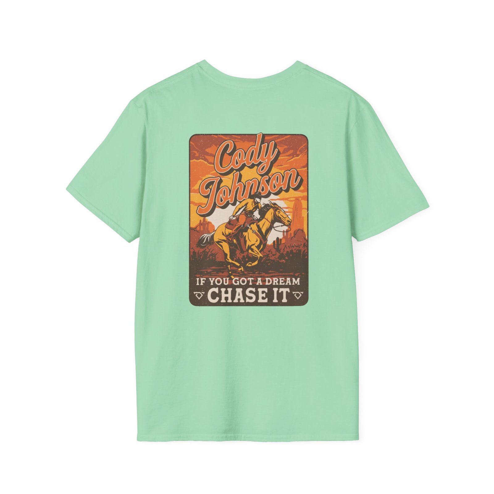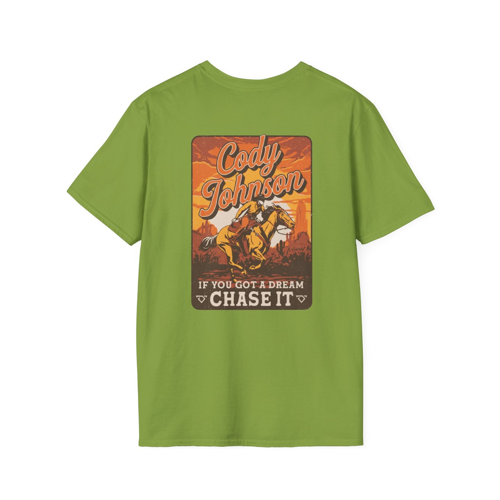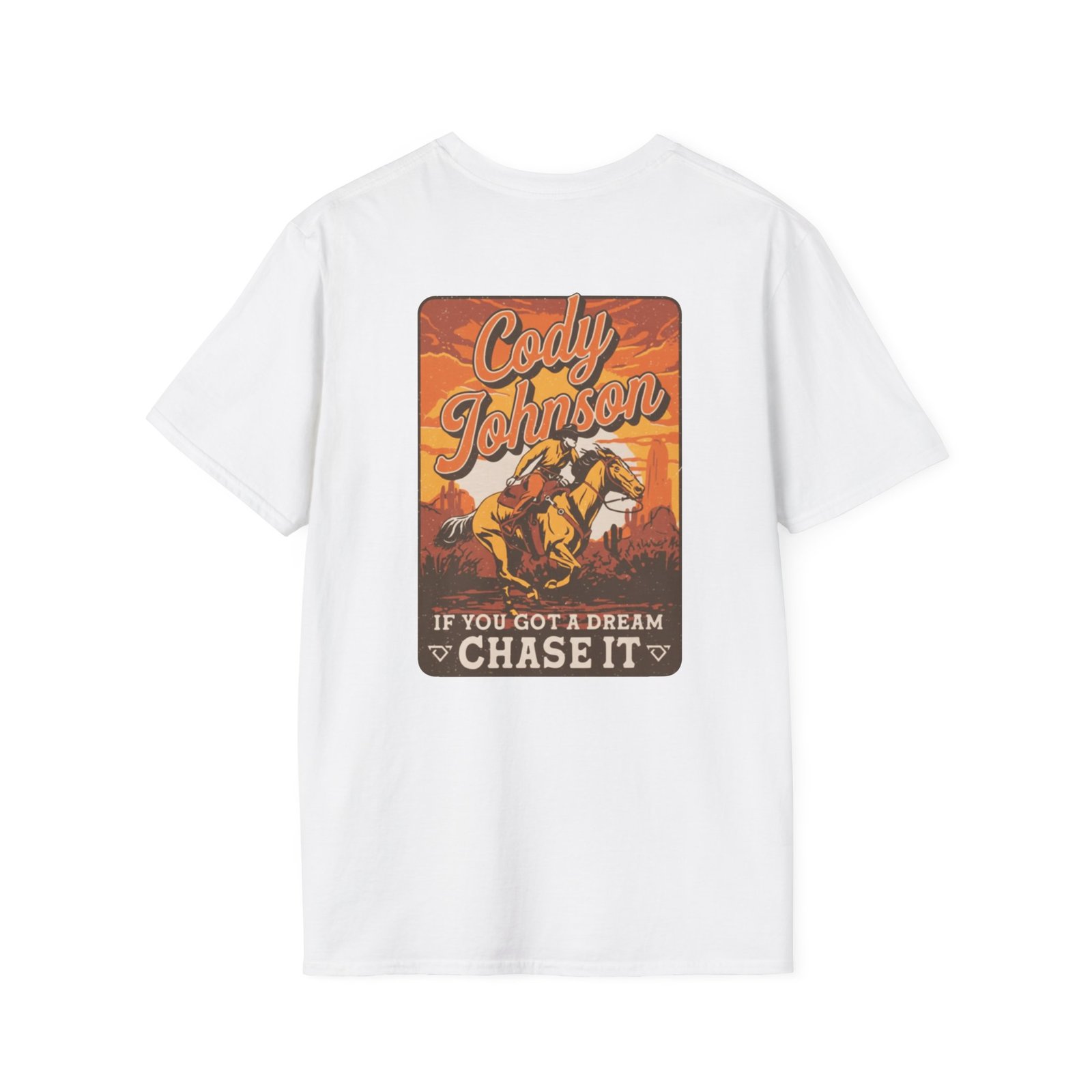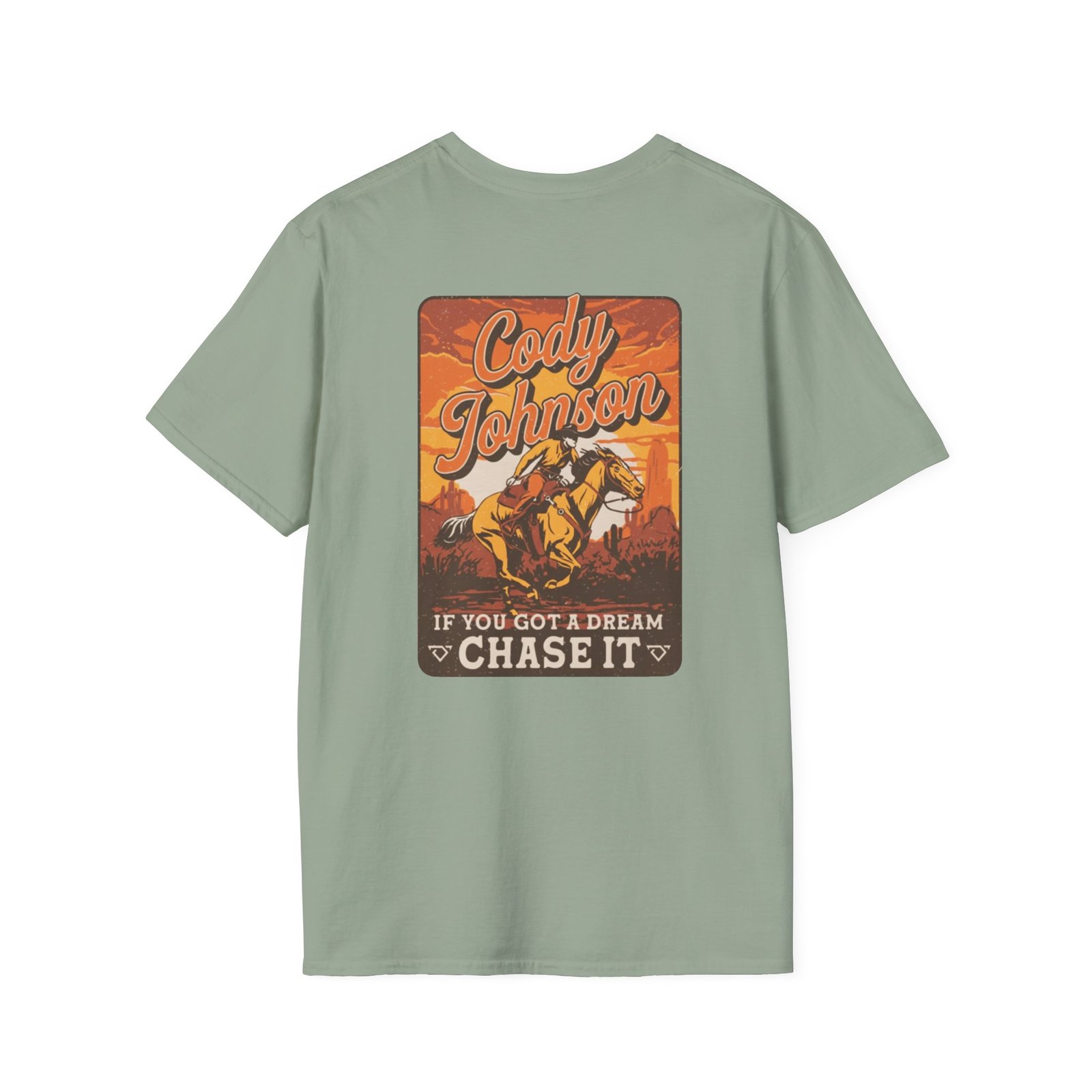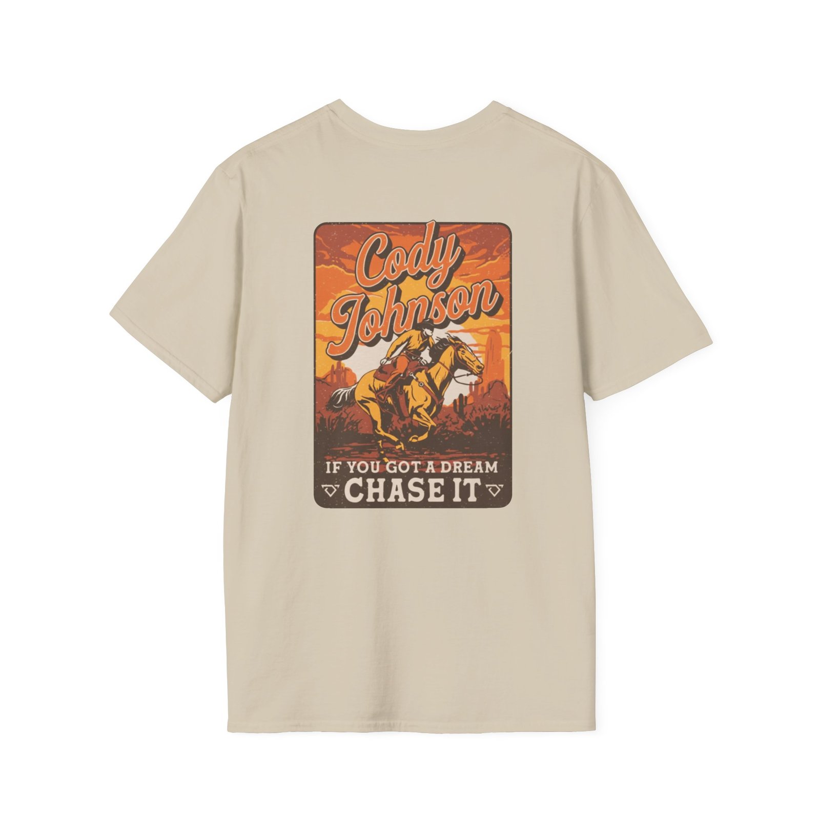 The Cody Johnson If You Got A Dream unisex soft-style t-shirt puts a new spin on casual comfort. Made from very soft materials, this tee is 100% cotton for solid colors. Heather colors and sports grey include polyester. The shoulders have twill tape for improved durability. There are no side seams. The collar is made with ribbed knitting to prevent curling damage.