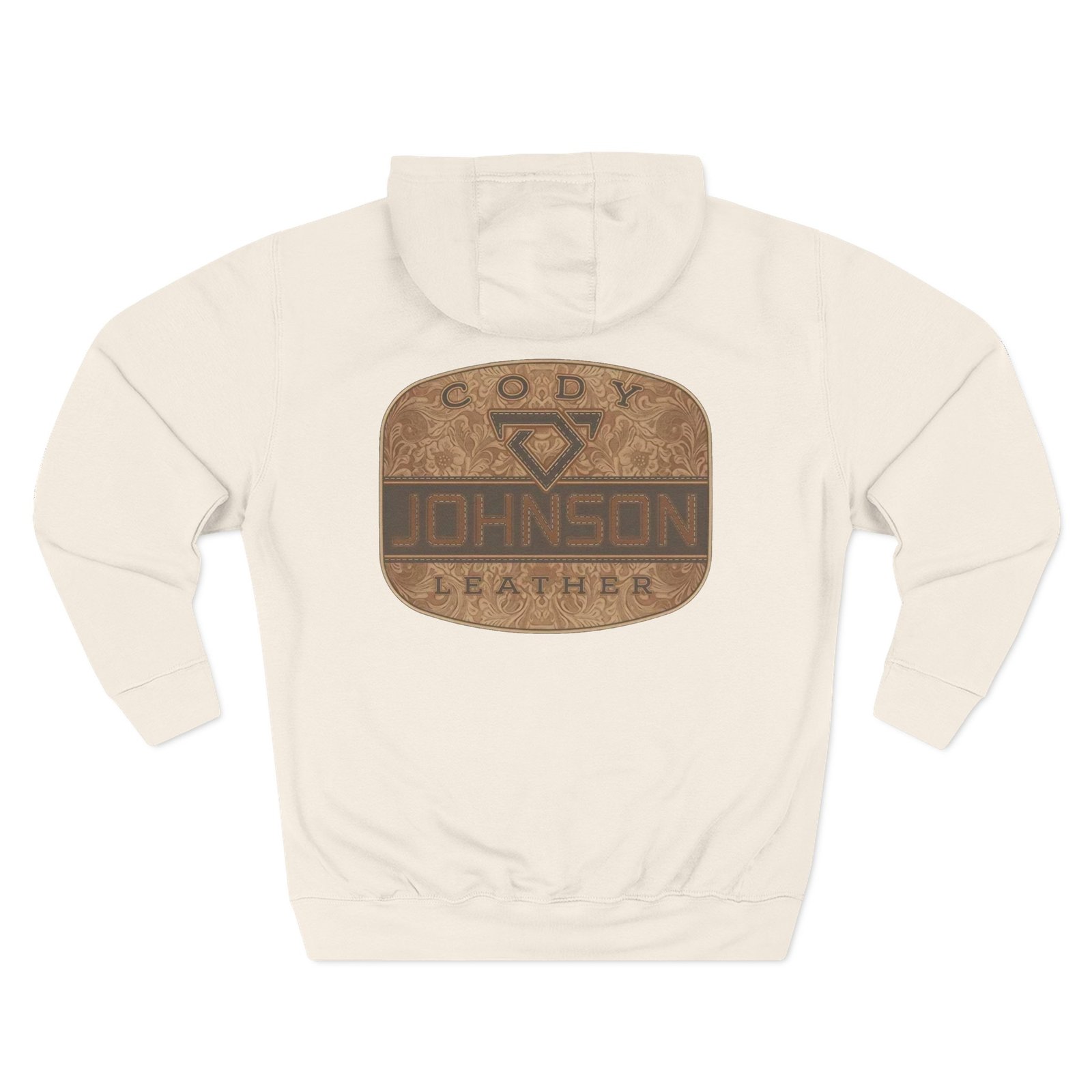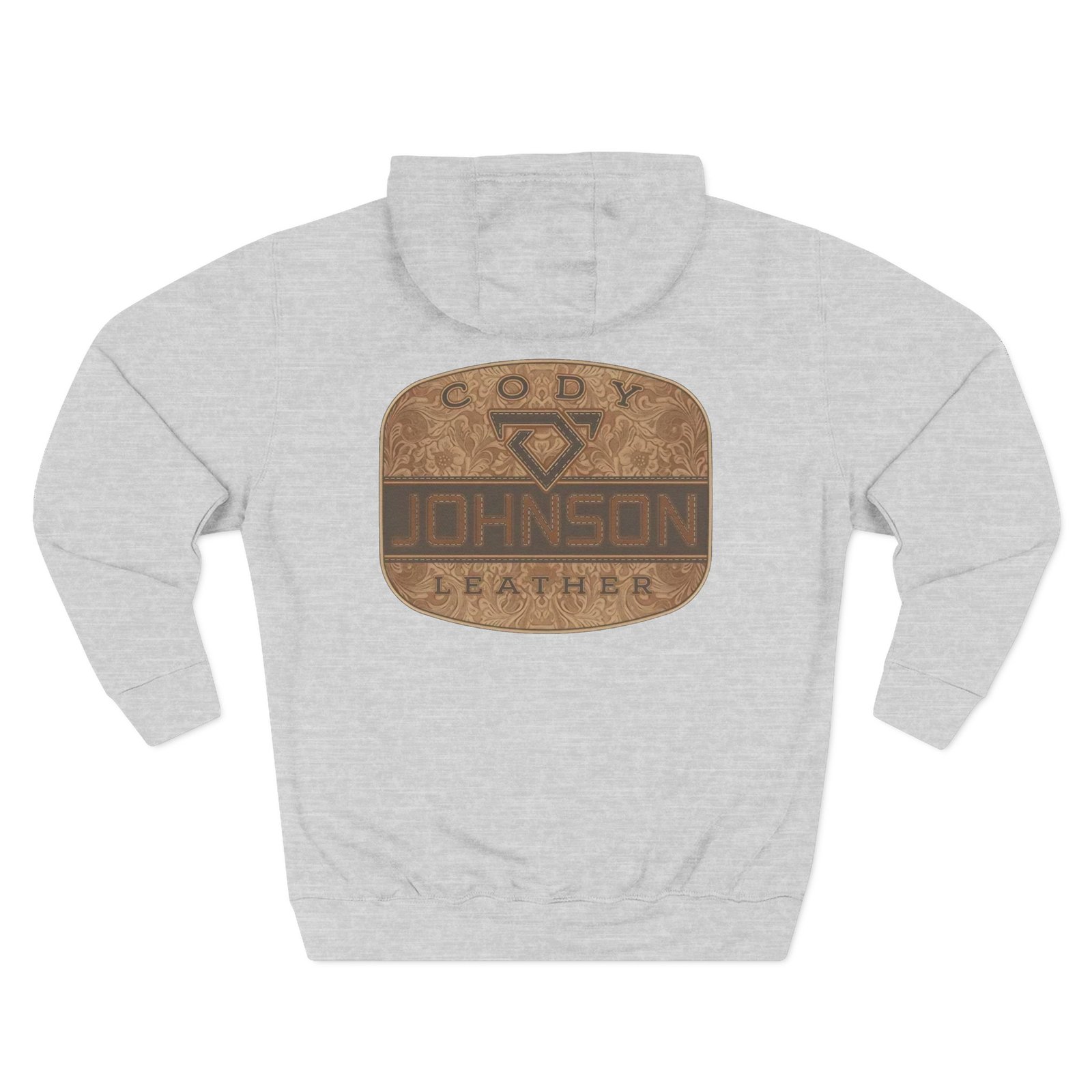 Beat the cold with this Cody Johnson Leather Patch premium pullover hoodie that’s just the right layer of warm and cozy. Made with three-panel fleece lining, this pullover is double stitched for durability and roomy. Pick one in your favorite color to match your style.
