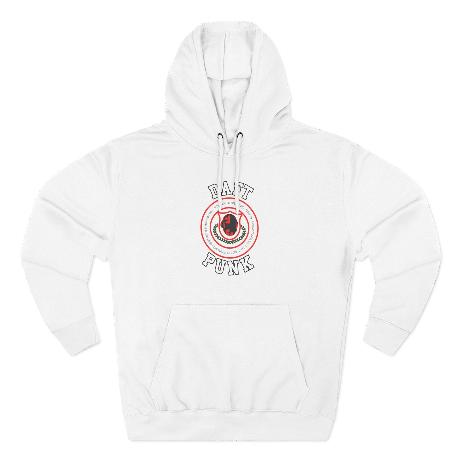 Beat the cold with this Daft Punk premium pullover hoodie that’s just the right layer of warm and cozy. Made with three-panel fleece lining, this pullover is double stitched for durability and roomy. Pick one in your favorite color to match your style.