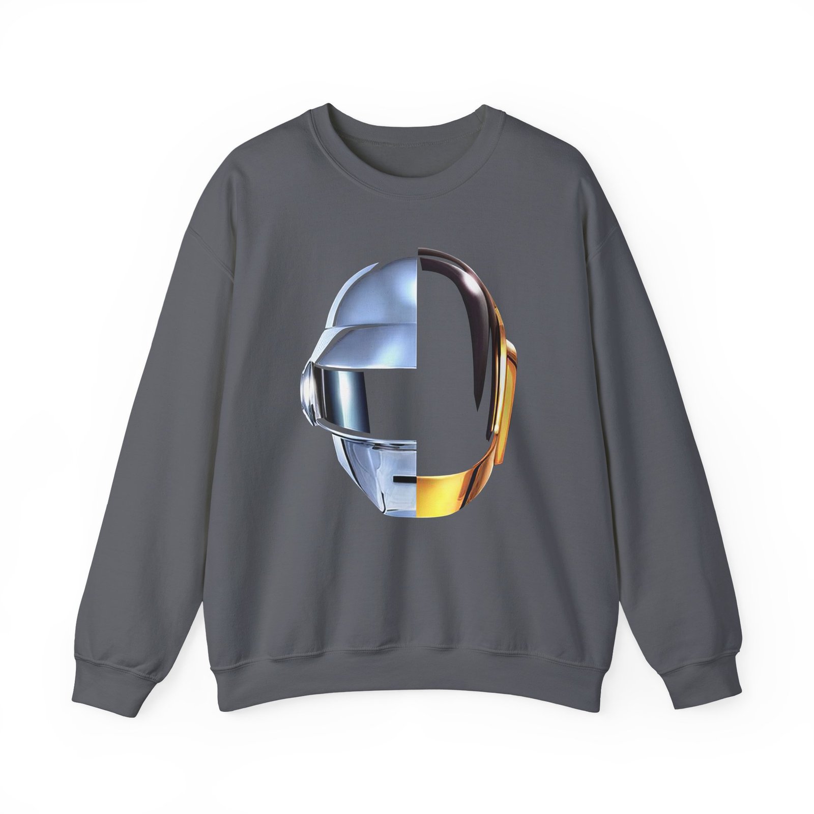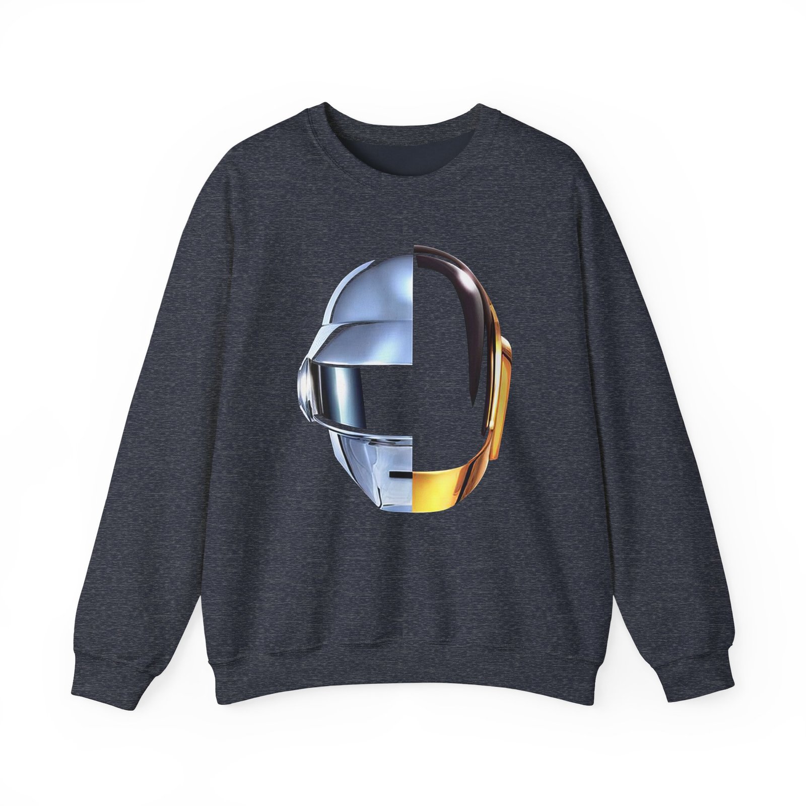 Ideal for any situation, a Daft Punk unisex heavy blend crewneck sweatshirt is pure comfort. These garments are made from polyester and cotton. This combination helps designs come out looking fresh and beautiful. The collar is ribbed knit, so it retains its shape even after washing. There are no itchy side seams on these sweaters.