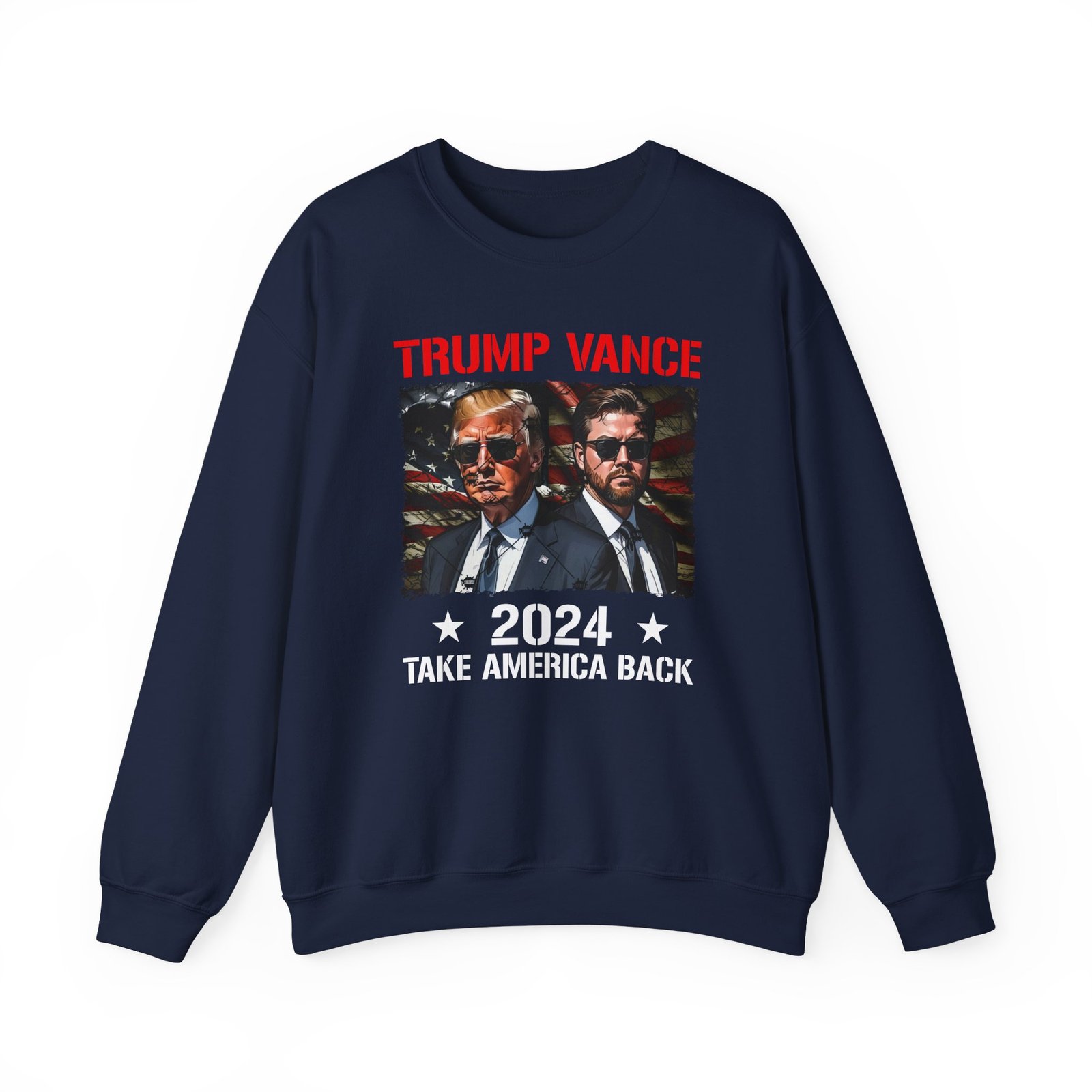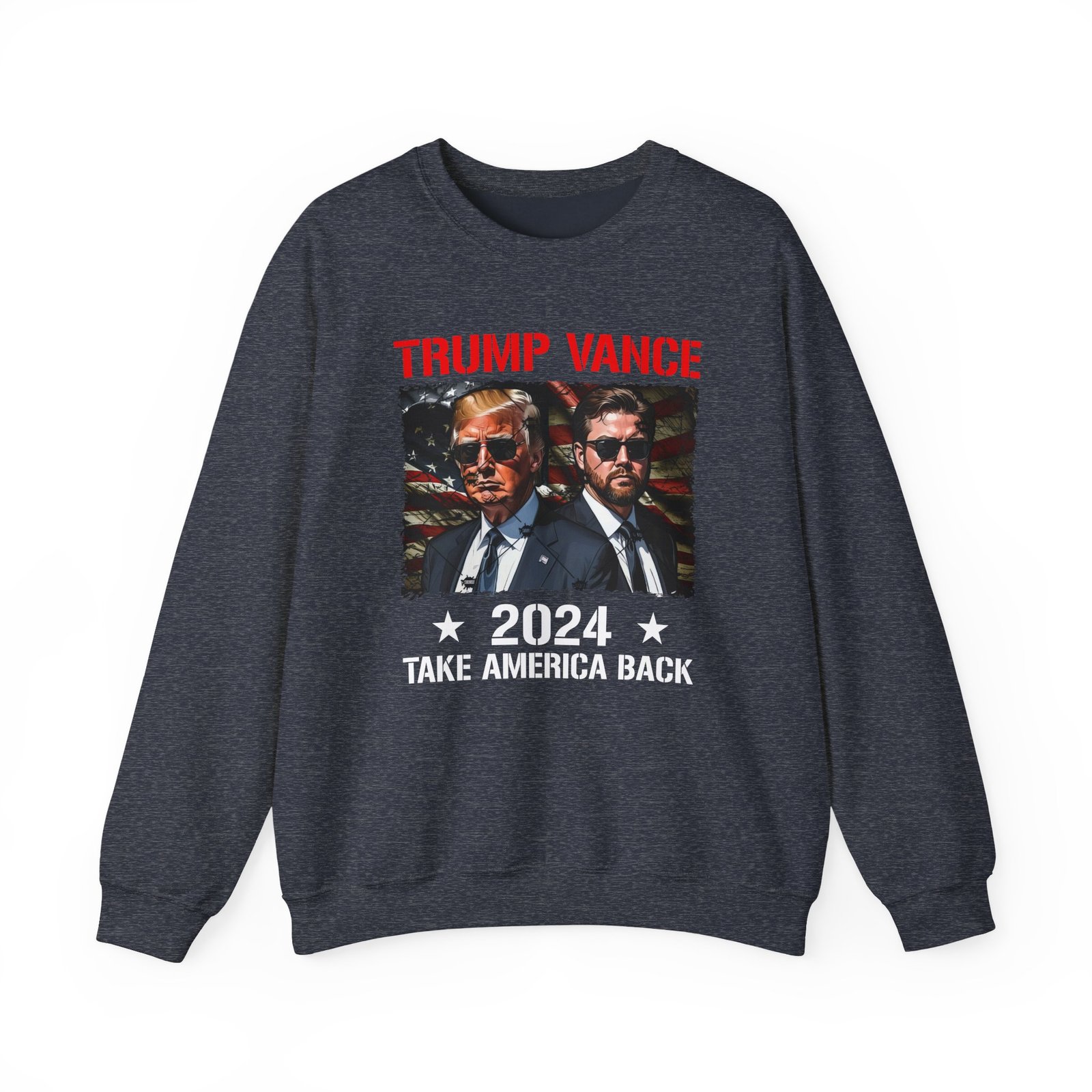 Ideal for any situation, a Donald Trump J.d. Vance Take America Back unisex heavy blend crewneck sweatshirt is pure comfort. These garments are made from polyester and cotton. This combination helps designs come out looking fresh and beautiful. The collar is ribbed knit, so it retains its shape even after washing. There are no itchy side seams on these sweaters.