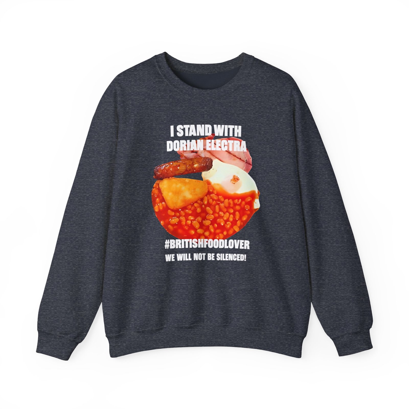 Ideal for any situation, a Dorian Electra I Stand With unisex heavy blend crewneck sweatshirt is pure comfort. These garments are made from polyester and cotton. This combination helps designs come out looking fresh and beautiful. The collar is ribbed knit, so it retains its shape even after washing. There are no itchy side seams on these sweaters.