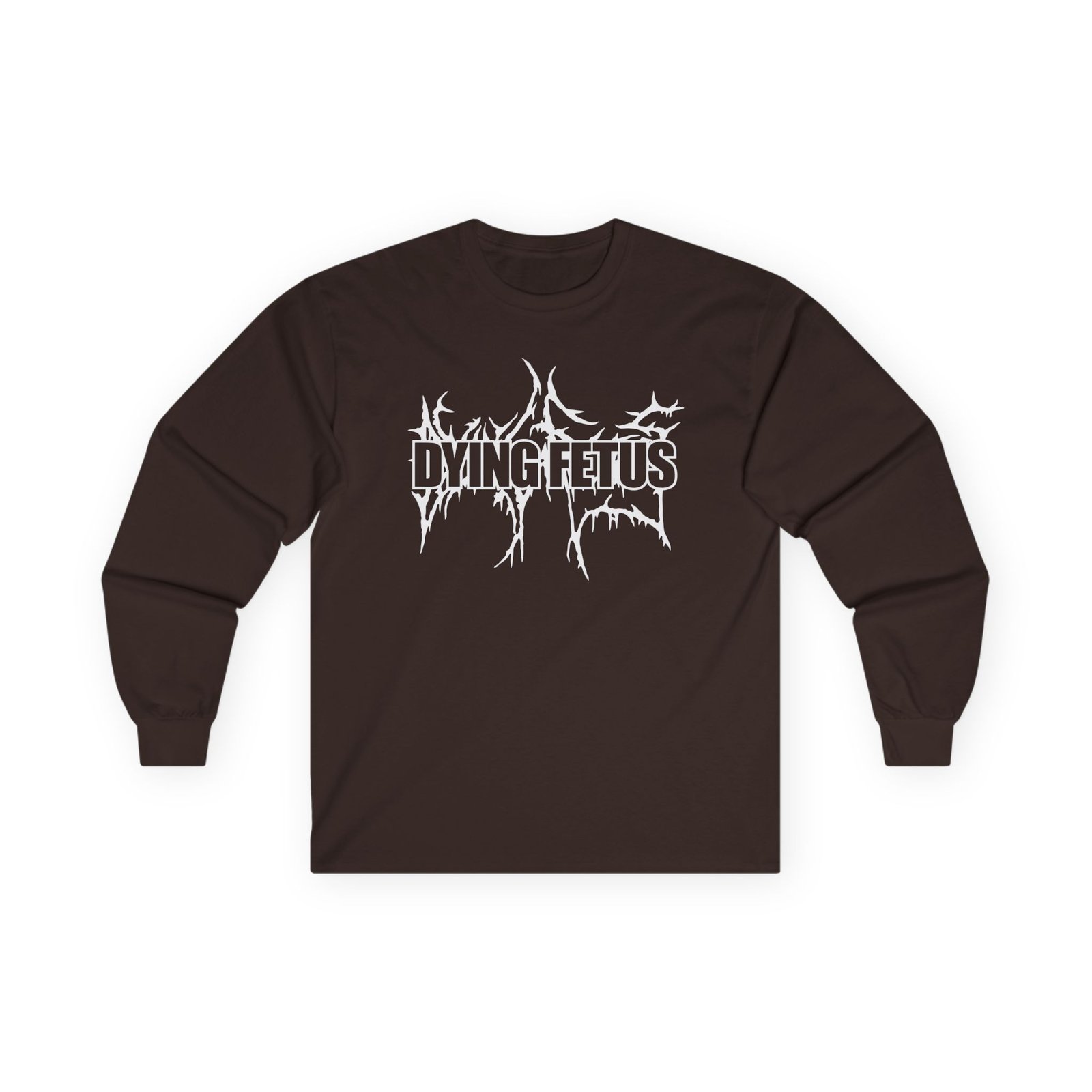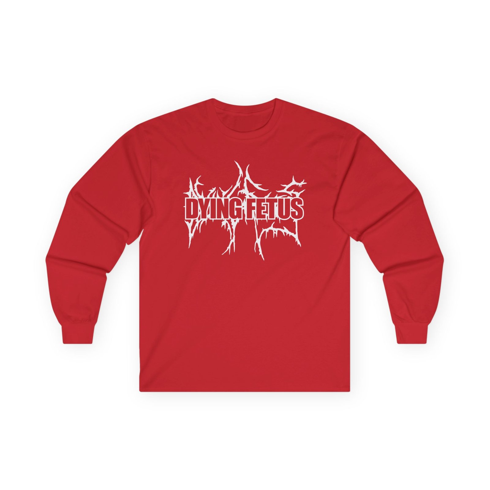 A bit more formal than a standard-issue t-shirt, the Dying Fetus Dual Logo ultra cotton long sleeve tee is a clear comfort winner. The sleeves also act as a nice frame. There are no side seams. The shoulders are taped for improved durability. This makes for a good fitting around the shoulders and neck. The cotton used for these shirts is environmentally friendly.
