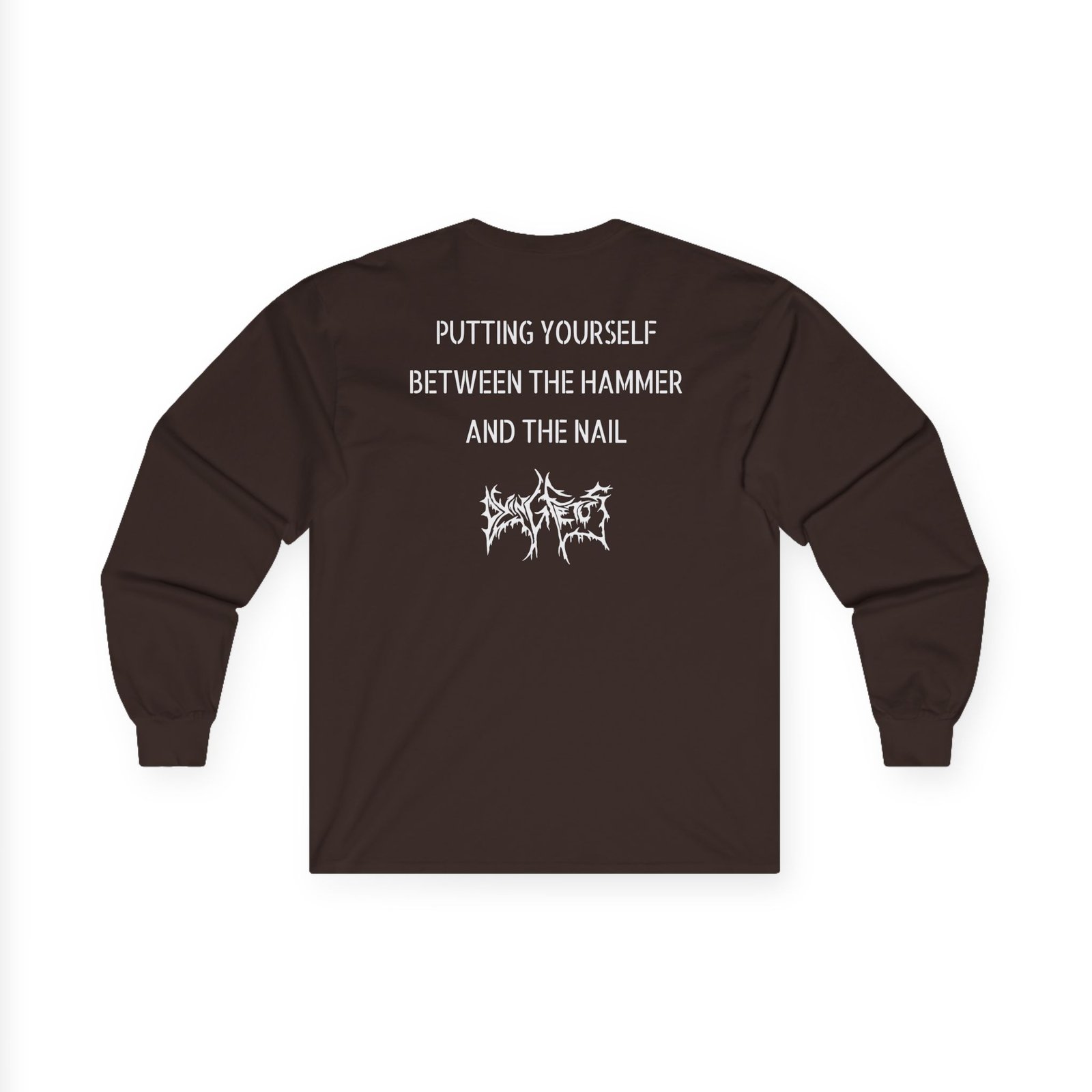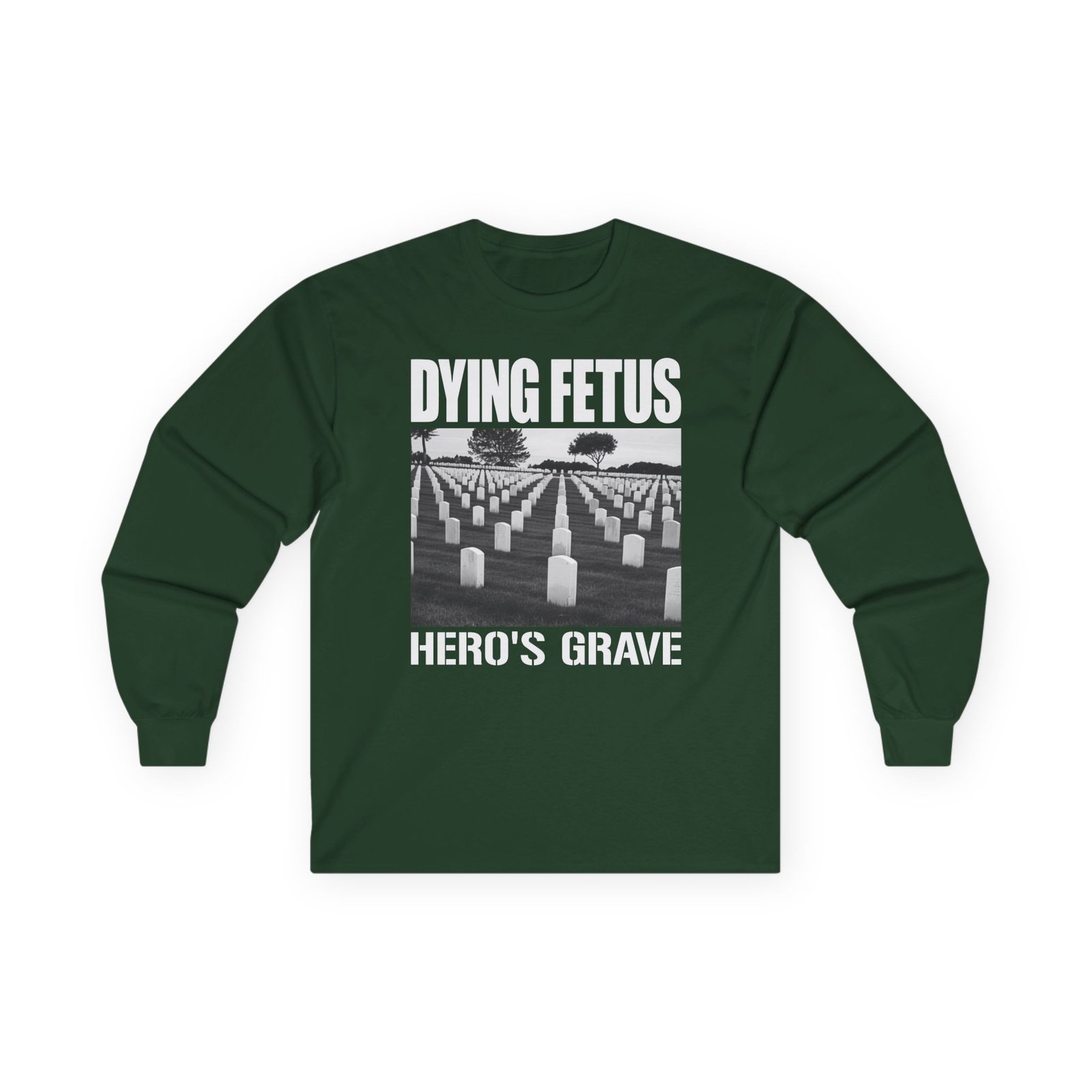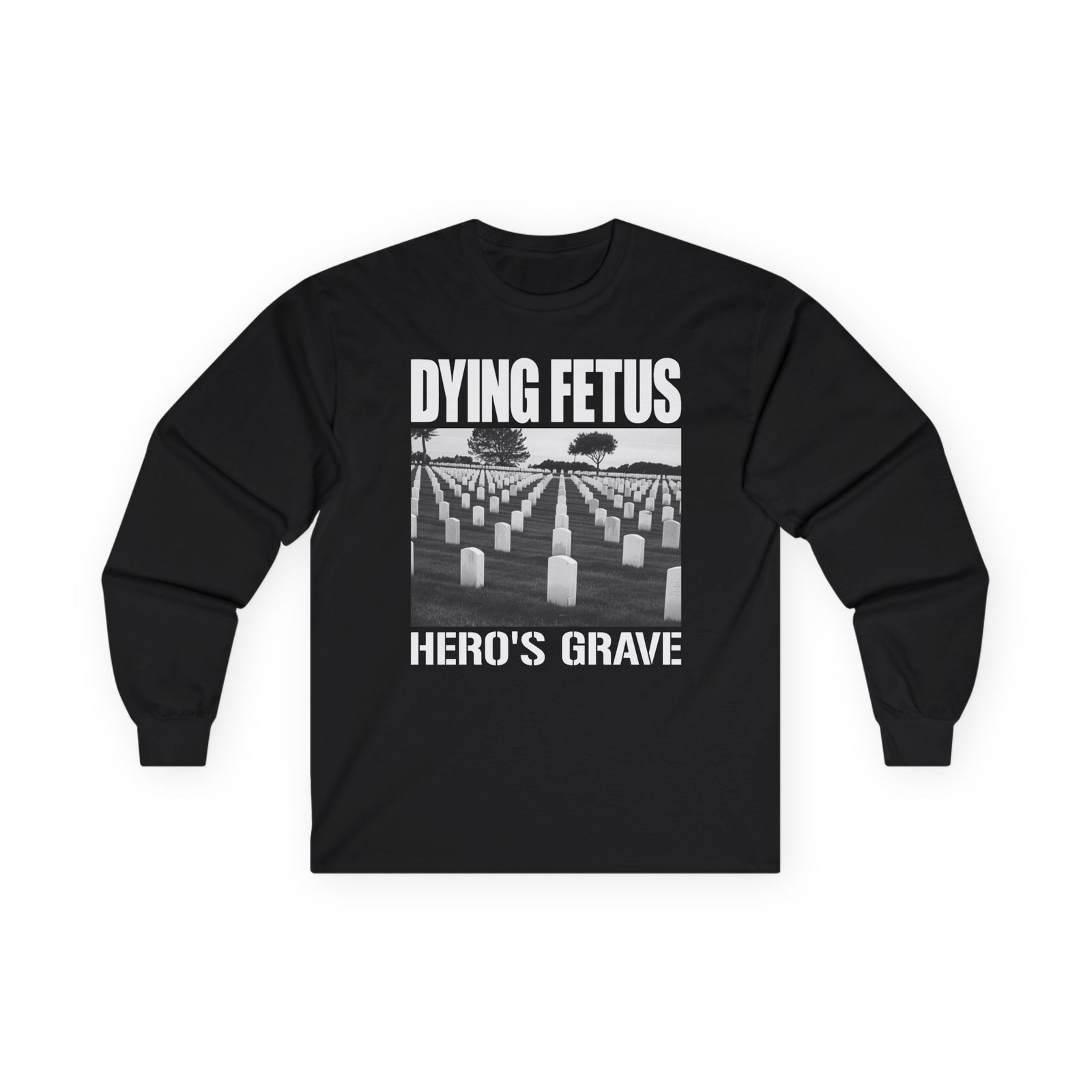 A bit more formal than a standard-issue t-shirt, the Dying Fetus Hero's Grave ultra cotton long sleeve tee is a clear comfort winner. The sleeves also act as a nice frame. There are no side seams. The shoulders are taped for improved durability. This makes for a good fitting around the shoulders and neck. The cotton used for these shirts is environmentally friendly.