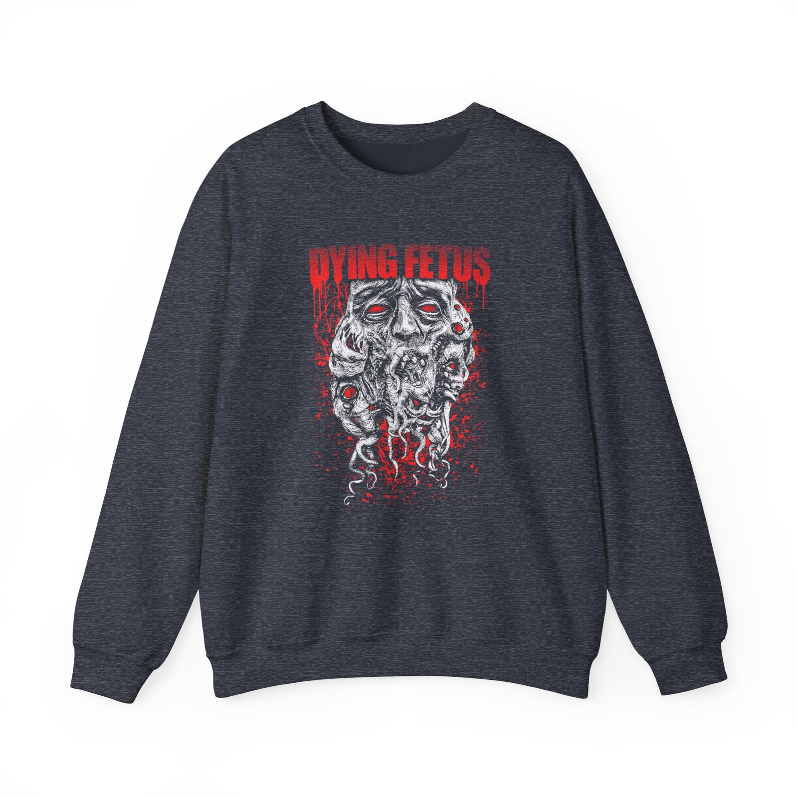 Ideal for any situation, a Dying Fetus Tentacle Face unisex heavy blend crewneck sweatshirt is pure comfort. These garments are made from polyester and cotton. This combination helps designs come out looking fresh and beautiful. The collar is ribbed knit, so it retains its shape even after washing. There are no itchy side seams on these sweaters.
