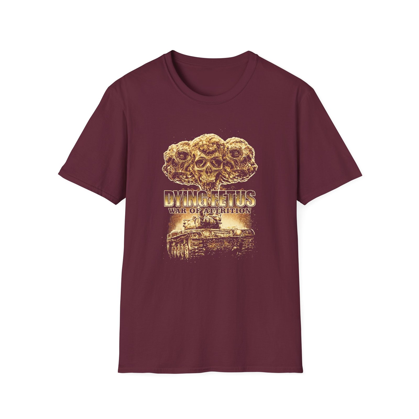The Dying Fetus War of Attrition Logo unisex soft-style t-shirt puts a new spin on casual comfort. Made from very soft materials, this tee is 100% cotton for solid colors. Heather colors and sports grey include polyester. The shoulders have twill tape for improved durability. There are no side seams. The collar is made with ribbed knitting to prevent curling damage.