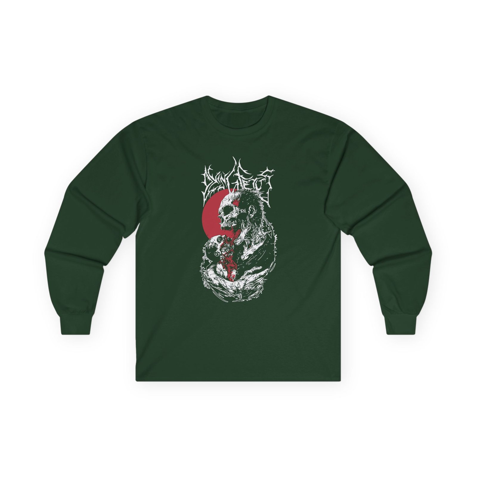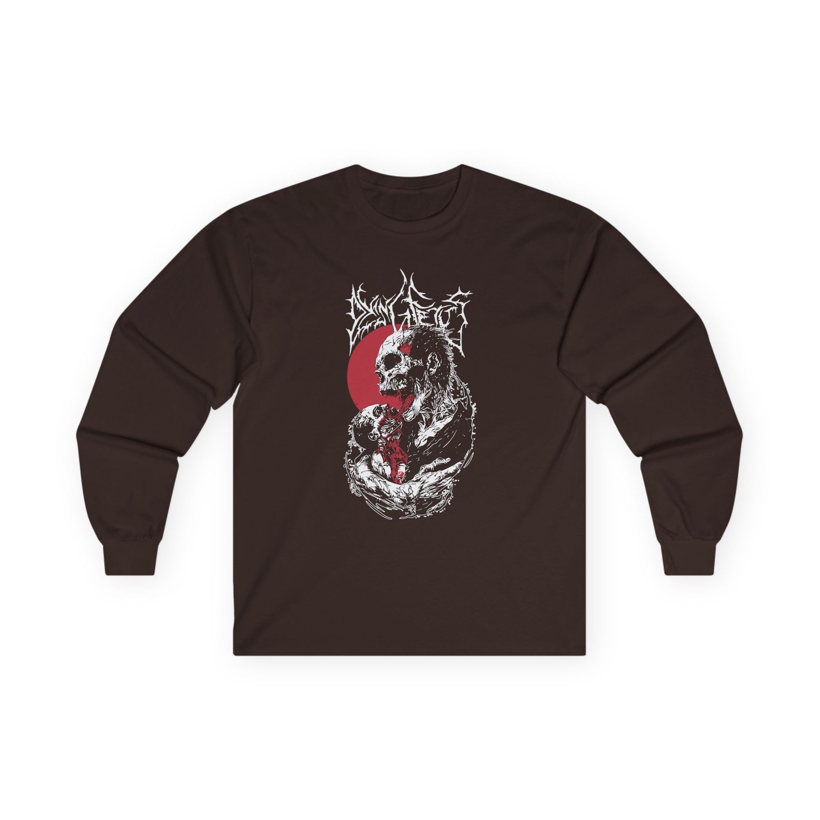 A bit more formal than a standard-issue t-shirt, the Dying Fetus Zombie Hug ultra cotton long sleeve tee is a clear comfort winner. The sleeves also act as a nice frame. There are no side seams. The shoulders are taped for improved durability. This makes for a good fitting around the shoulders and neck. The cotton used for these shirts is environmentally friendly.