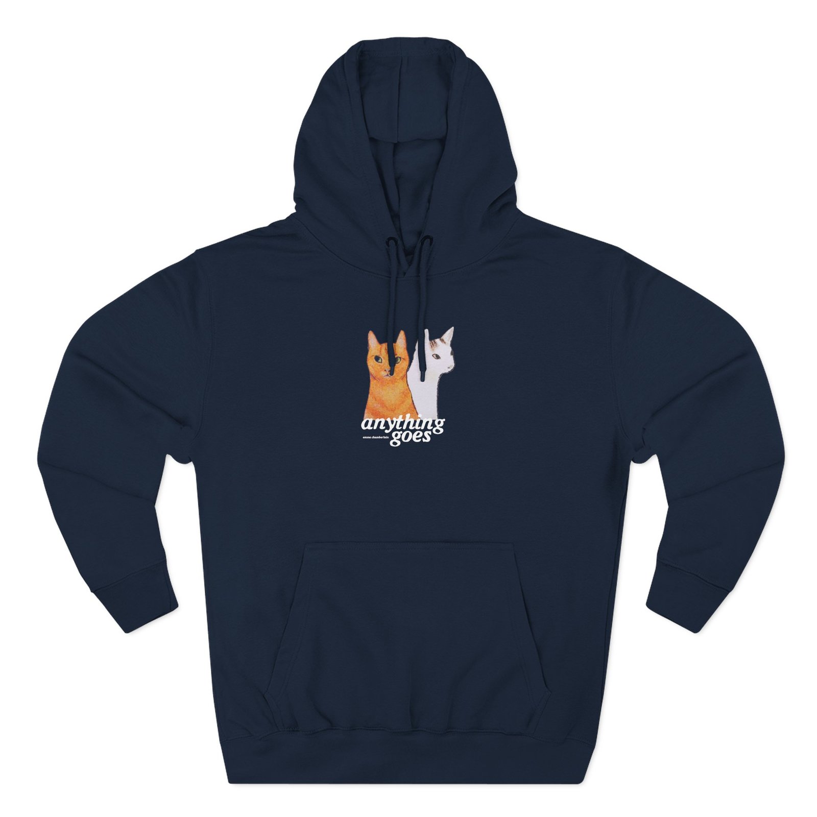 Beat the cold with this Emma Chamberlain Anything Goes Cats premium pullover hoodie that’s just the right layer of warm and cozy. Made with three-panel fleece lining, this pullover is double stitched for durability and roomy. Pick one in your favorite color to match your style.