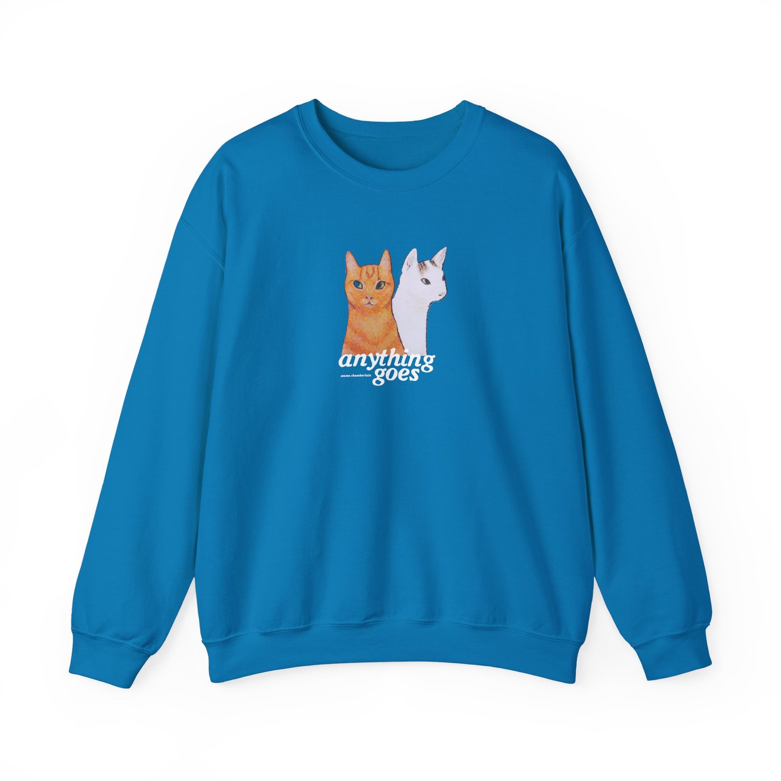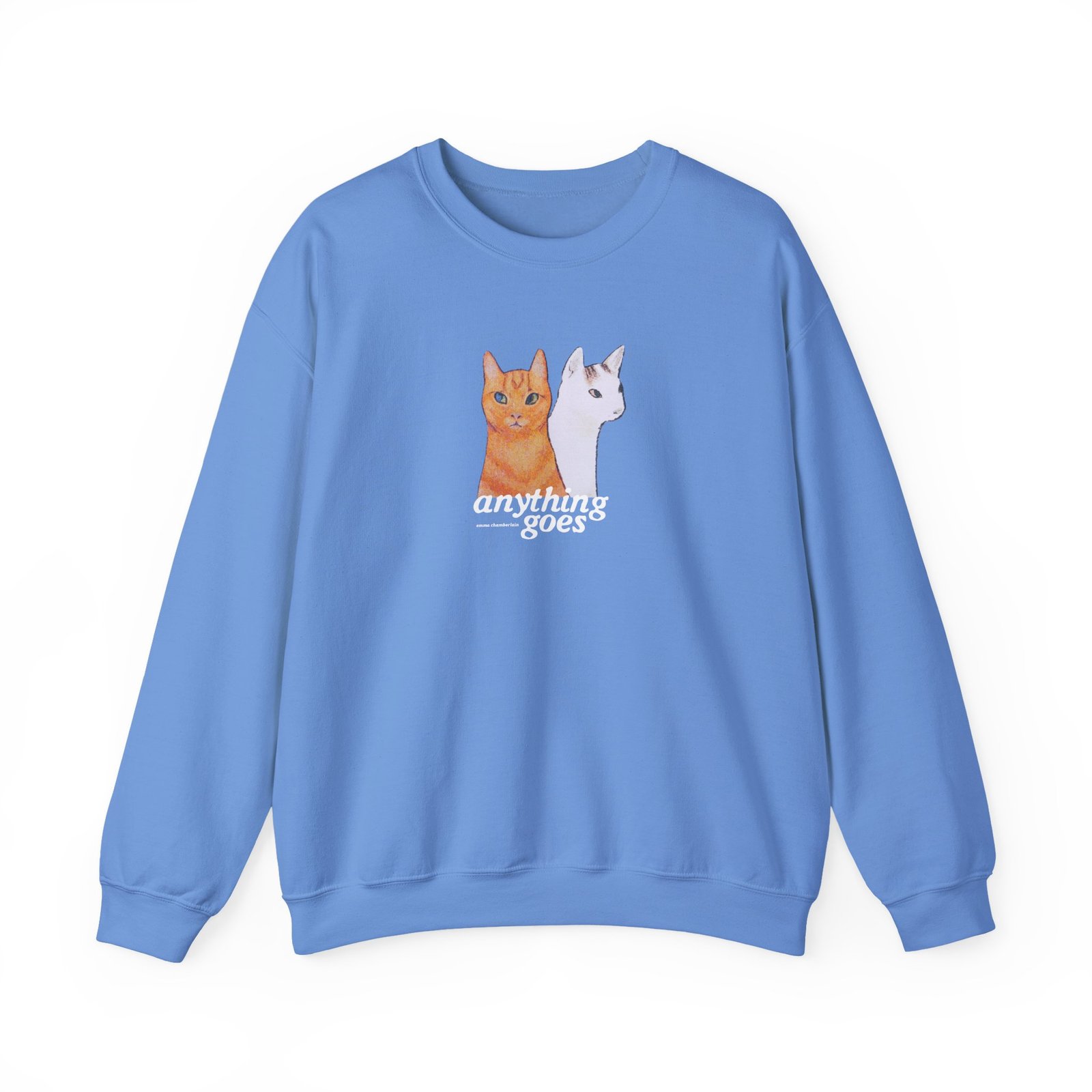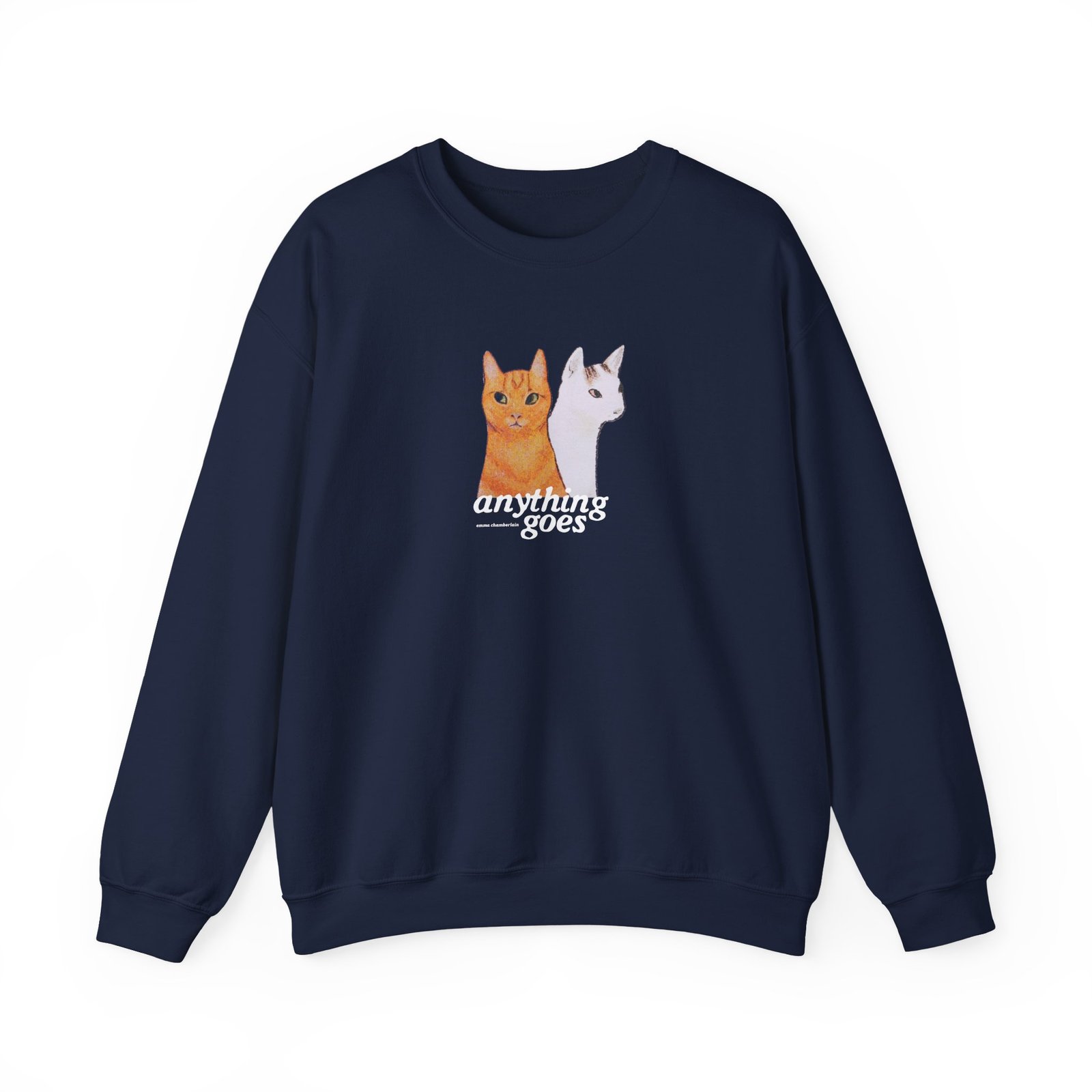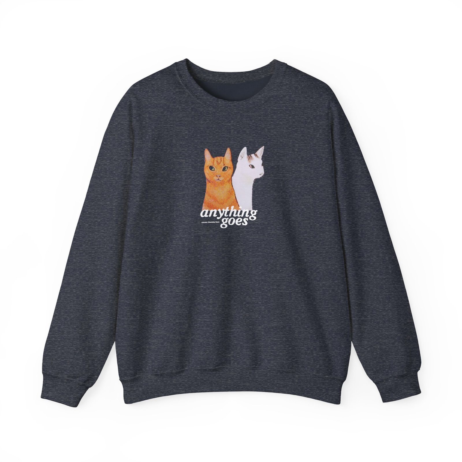 Ideal for any situation, a Emma Chamberlain Anything Goes Cats unisex heavy blend crewneck sweatshirt is pure comfort. These garments are made from polyester and cotton. This combination helps designs come out looking fresh and beautiful. The collar is ribbed knit, so it retains its shape even after washing. There are no itchy side seams on these sweaters.