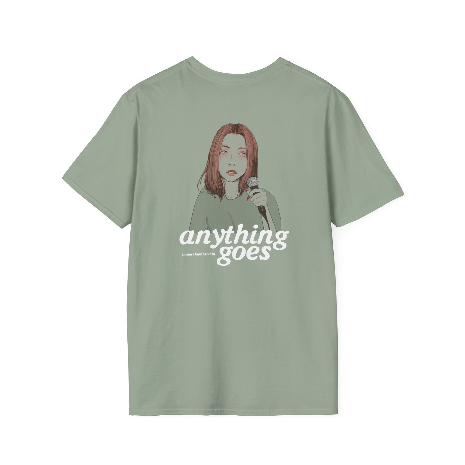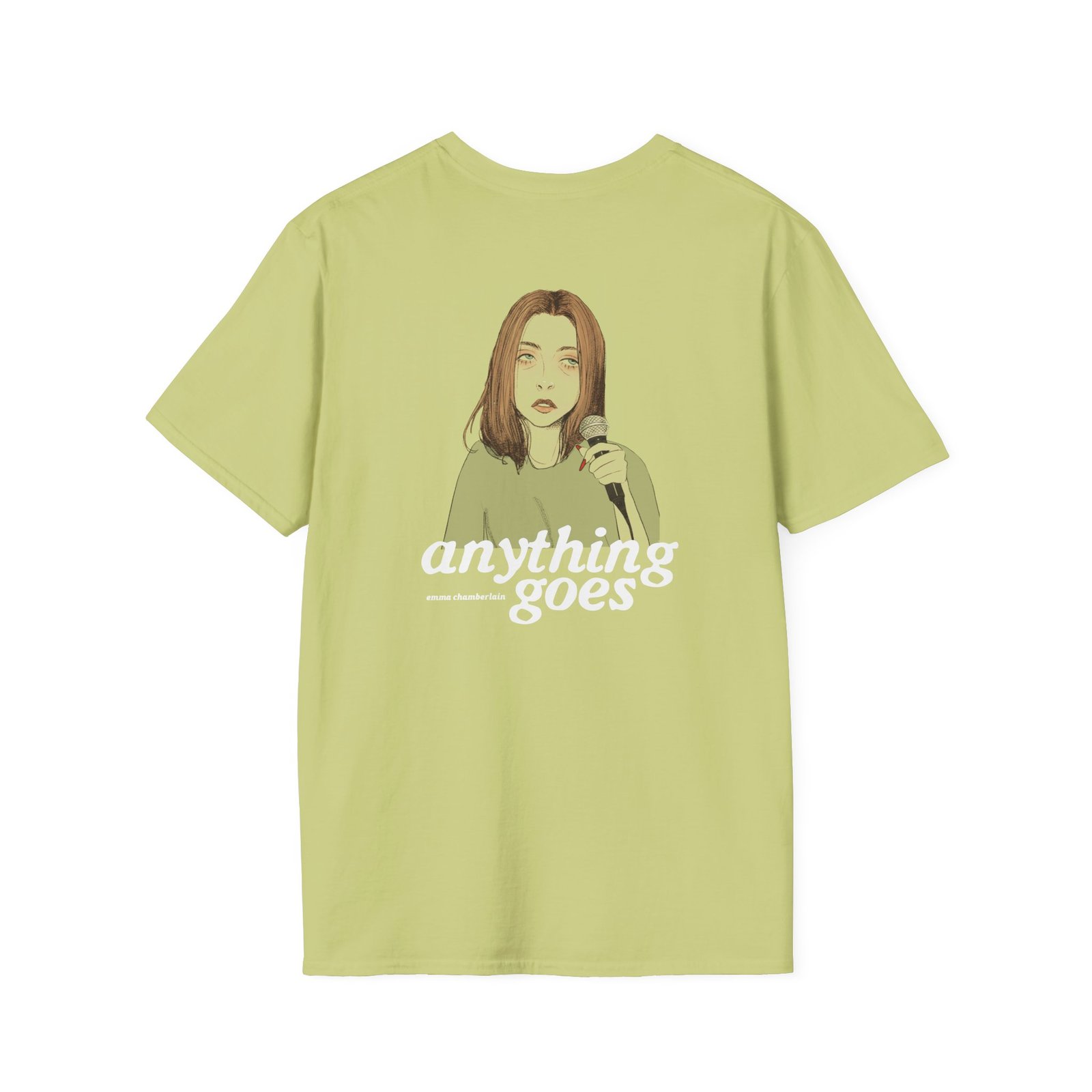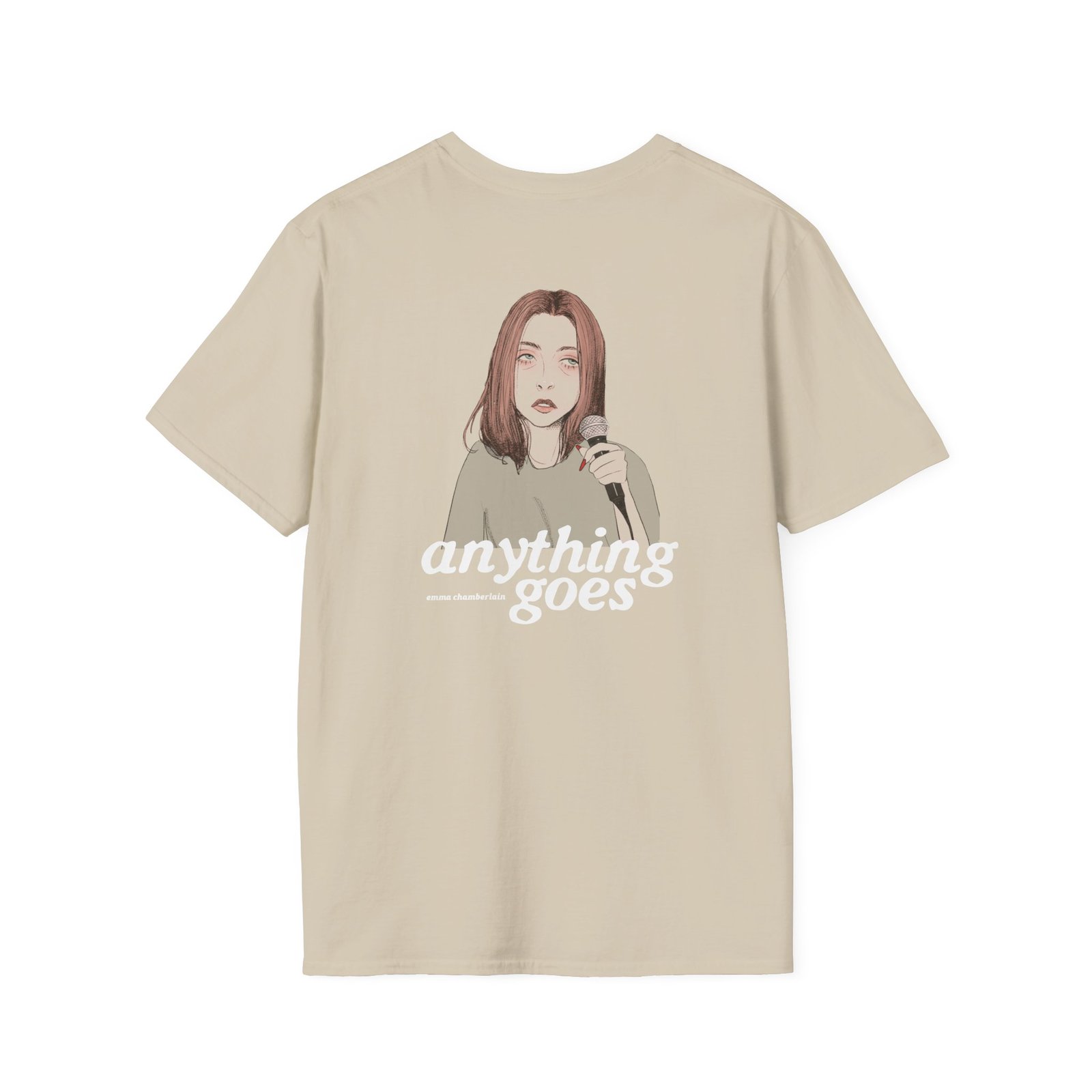 The Emma Chamberlain Anything Goes unisex soft-style t-shirt puts a new spin on casual comfort. Made from very soft materials, this tee is 100% cotton for solid colors. Heather colors and sports grey include polyester. The shoulders have twill tape for improved durability. There are no side seams. The collar is made with ribbed knitting to prevent curling damage.