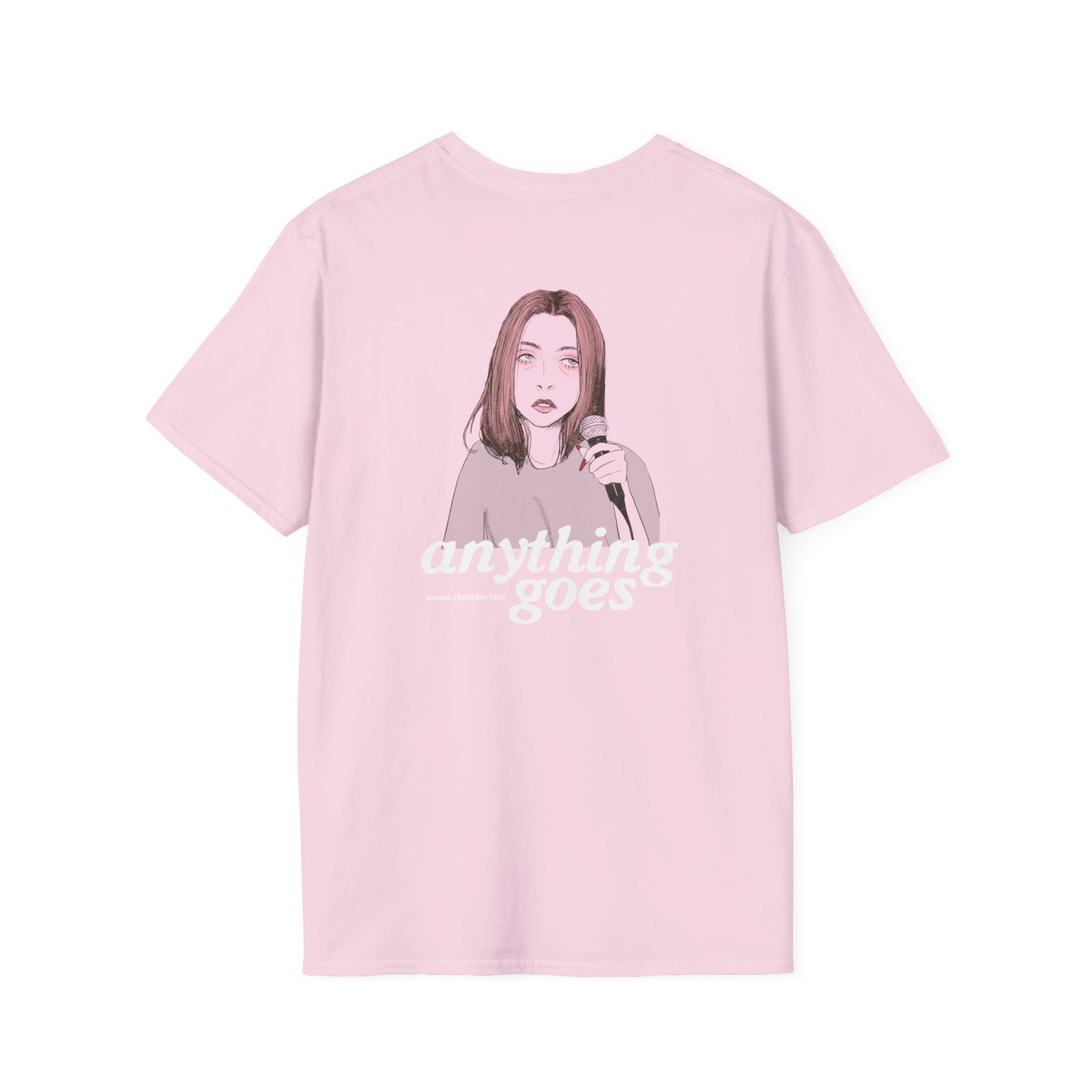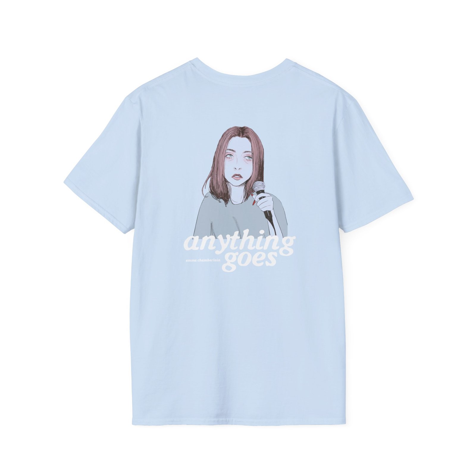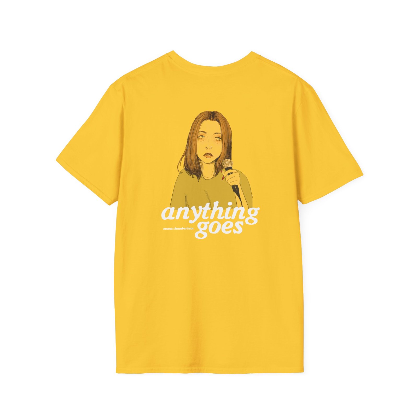 The Emma Chamberlain Anything Goes unisex soft-style t-shirt puts a new spin on casual comfort. Made from very soft materials, this tee is 100% cotton for solid colors. Heather colors and sports grey include polyester. The shoulders have twill tape for improved durability. There are no side seams. The collar is made with ribbed knitting to prevent curling damage.