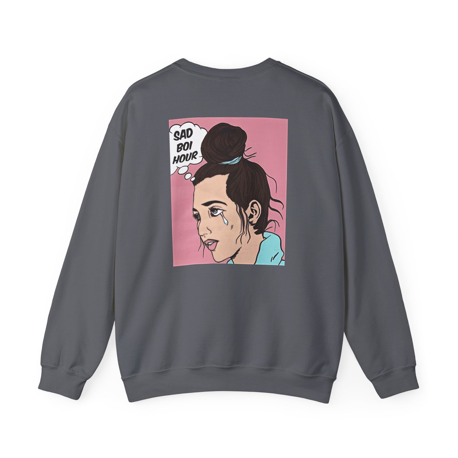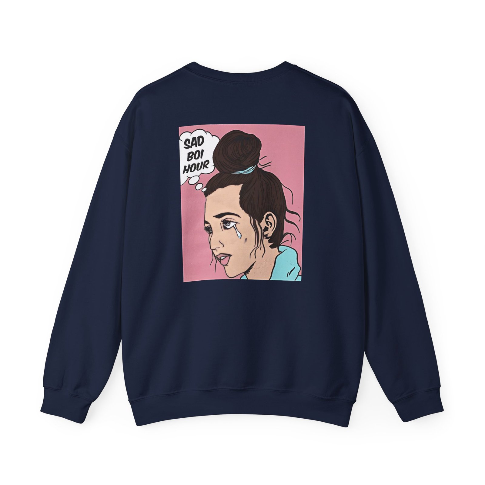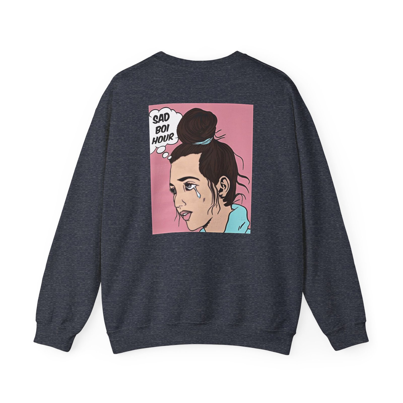Ideal for any situation, a Emma Chamberlain SAD BOI unisex heavy blend crewneck sweatshirt is pure comfort. These garments are made from polyester and cotton. This combination helps designs come out looking fresh and beautiful. The collar is ribbed knit, so it retains its shape even after washing. There are no itchy side seams on these sweaters.