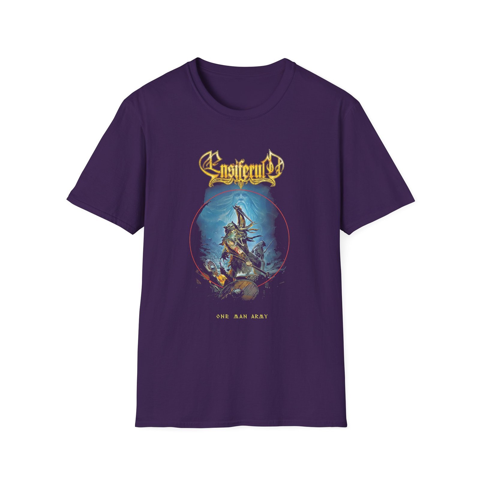 The Ensiferum One Man Army unisex soft-style t-shirt puts a new spin on casual comfort. Made from very soft materials, this tee is 100% cotton for solid colors. Heather colors and sports grey include polyester. The shoulders have twill tape for improved durability. There are no side seams. The collar is made with ribbed knitting to prevent curling damage.