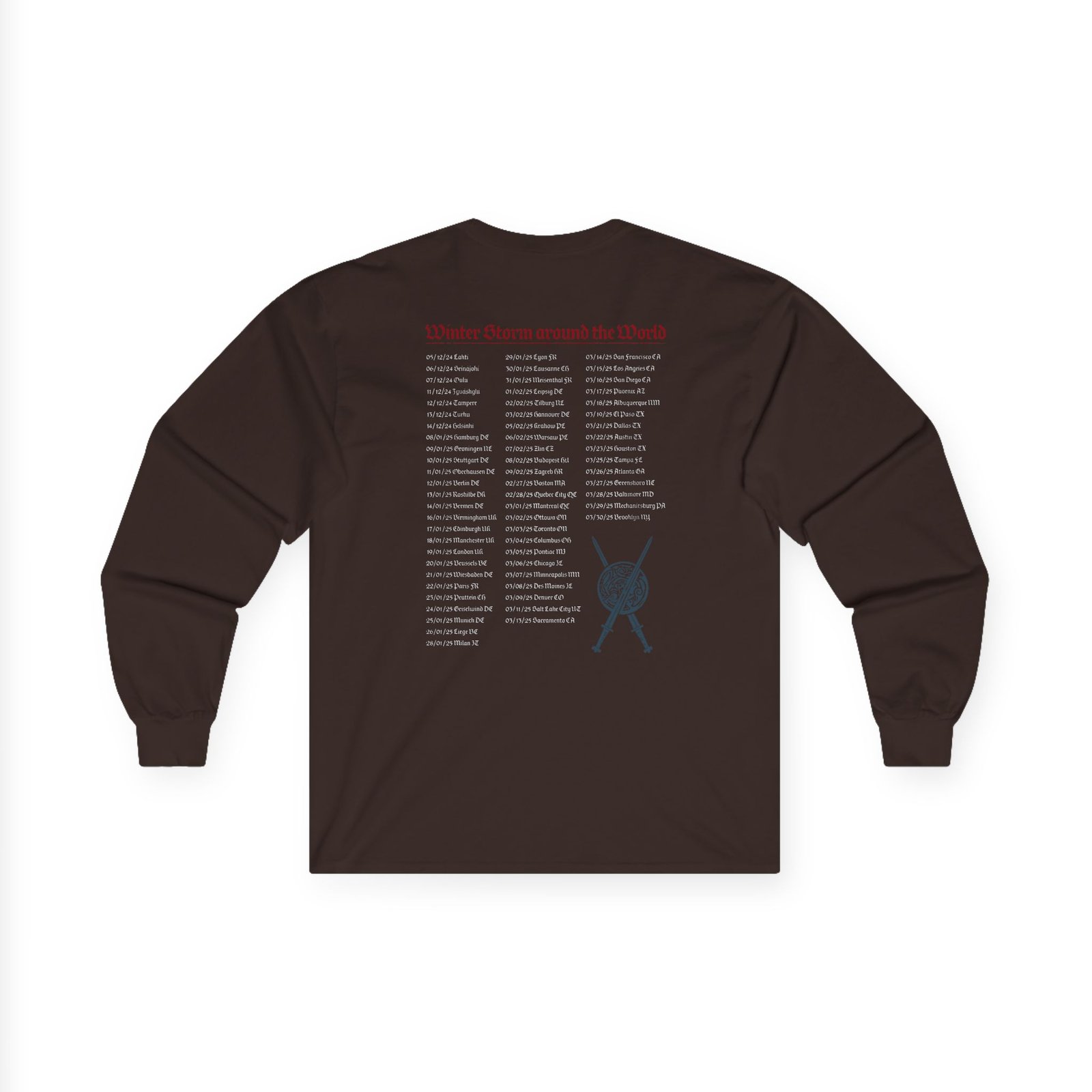 A bit more formal than a standard-issue t-shirt, the Ensiferum Paganfest 2025 Tour ultra cotton long sleeve tee is a clear comfort winner. The sleeves also act as a nice frame. There are no side seams. The shoulders are taped for improved durability. This makes for a good fitting around the shoulders and neck. The cotton used for these shirts is environmentally friendly.