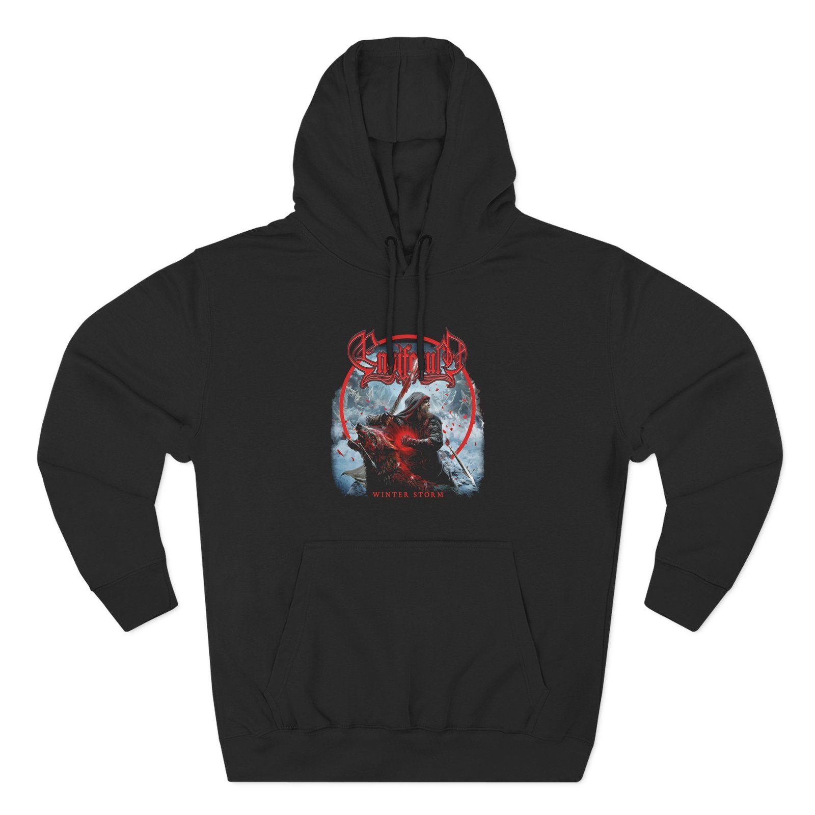 Beat the cold with this Ensiferum Winter Storm premium pullover hoodie that’s just the right layer of warm and cozy. Made with three-panel fleece lining, this pullover is double stitched for durability and roomy. Pick one in your favorite color to match your style.