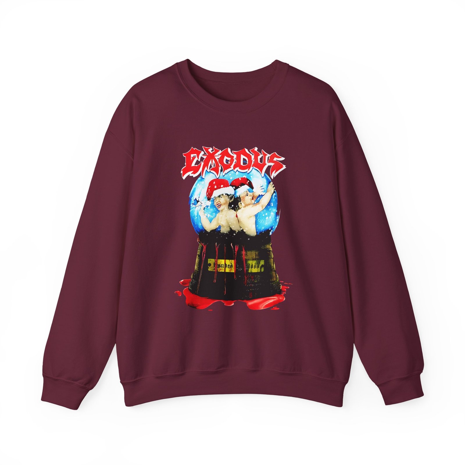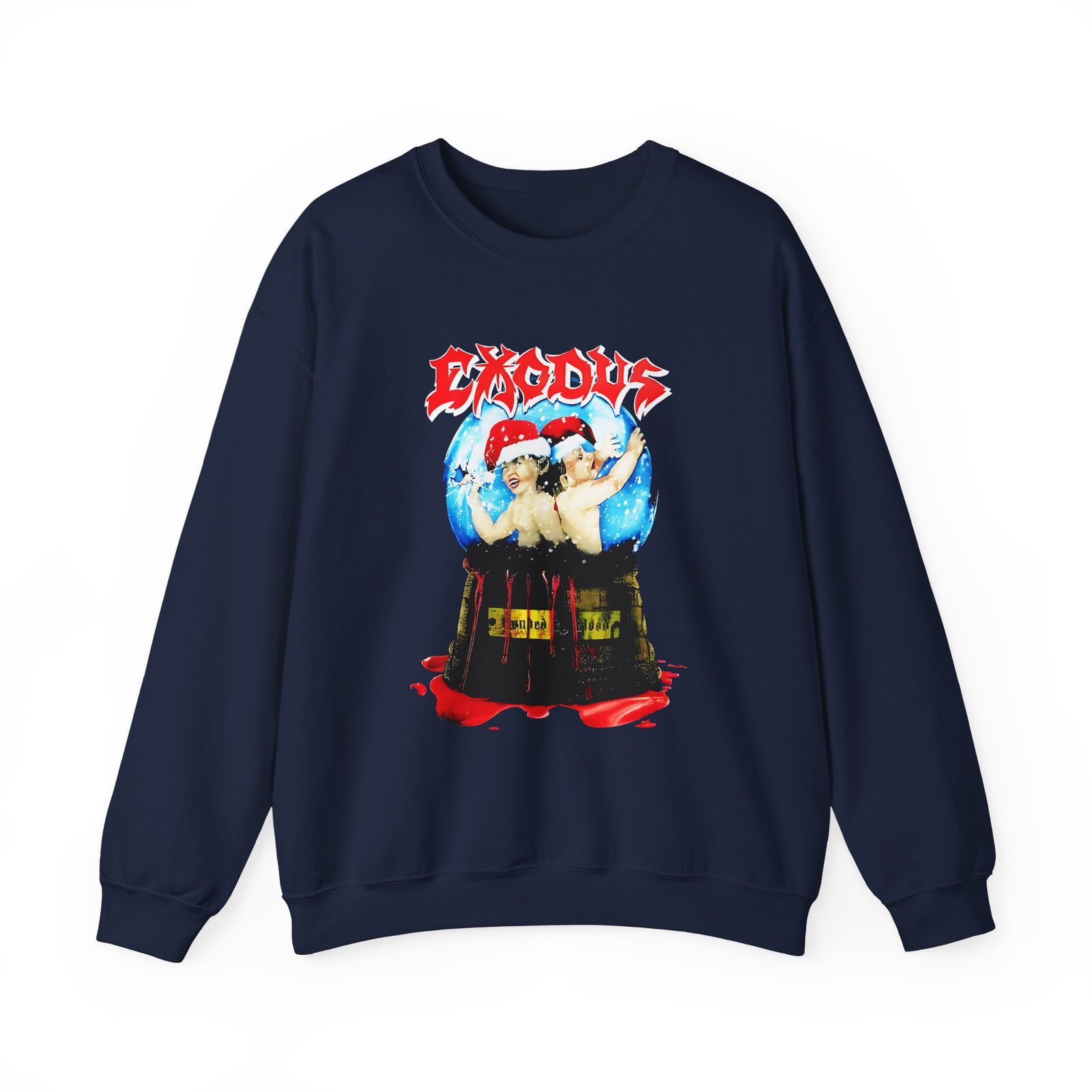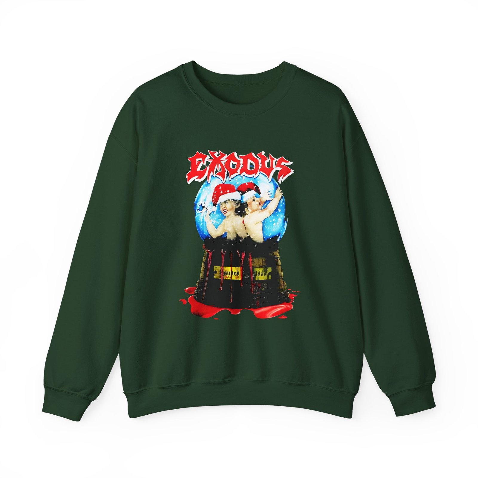 Ideal for any situation, a Exodus Bonded by Blood Holiday unisex heavy blend crewneck sweatshirt is pure comfort. These garments are made from polyester and cotton. This combination helps designs come out looking fresh and beautiful. The collar is ribbed knit, so it retains its shape even after washing. There are no itchy side seams on these sweaters.