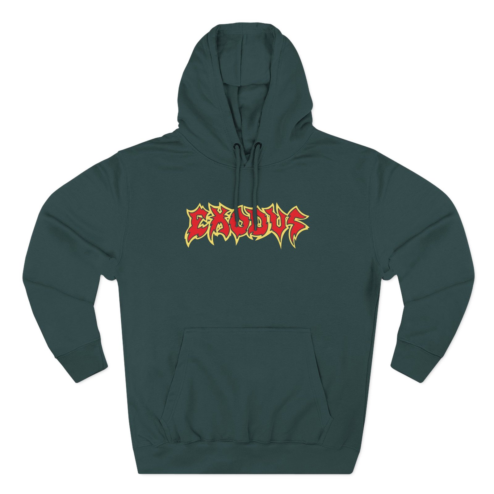 Beat the cold with this Exodus Metal Command premium pullover hoodie that’s just the right layer of warm and cozy. Made with three-panel fleece lining, this pullover is double stitched for durability and roomy. Pick one in your favorite color to match your style.