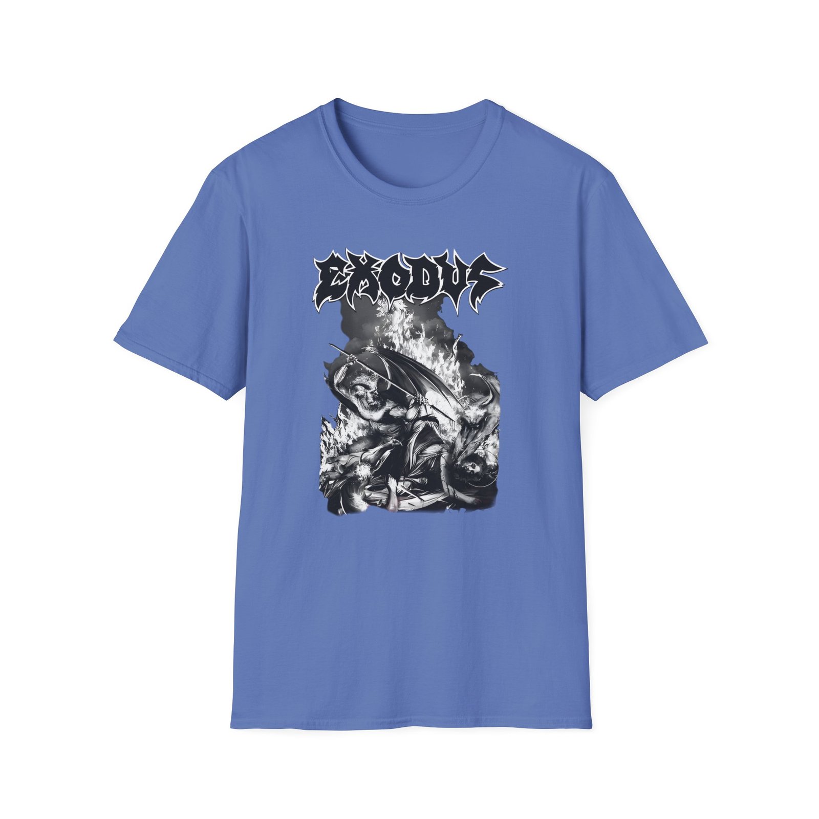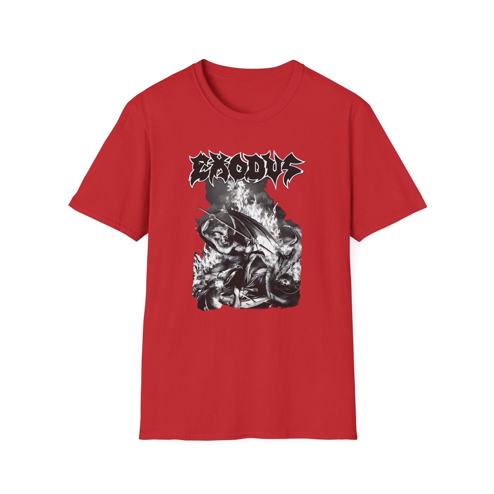 The Exodus Now Thy Death unisex soft-style t-shirt puts a new spin on casual comfort. Made from very soft materials, this tee is 100% cotton for solid colors. Heather colors and sports grey include polyester. The shoulders have twill tape for improved durability. There are no side seams. The collar is made with ribbed knitting to prevent curling damage.