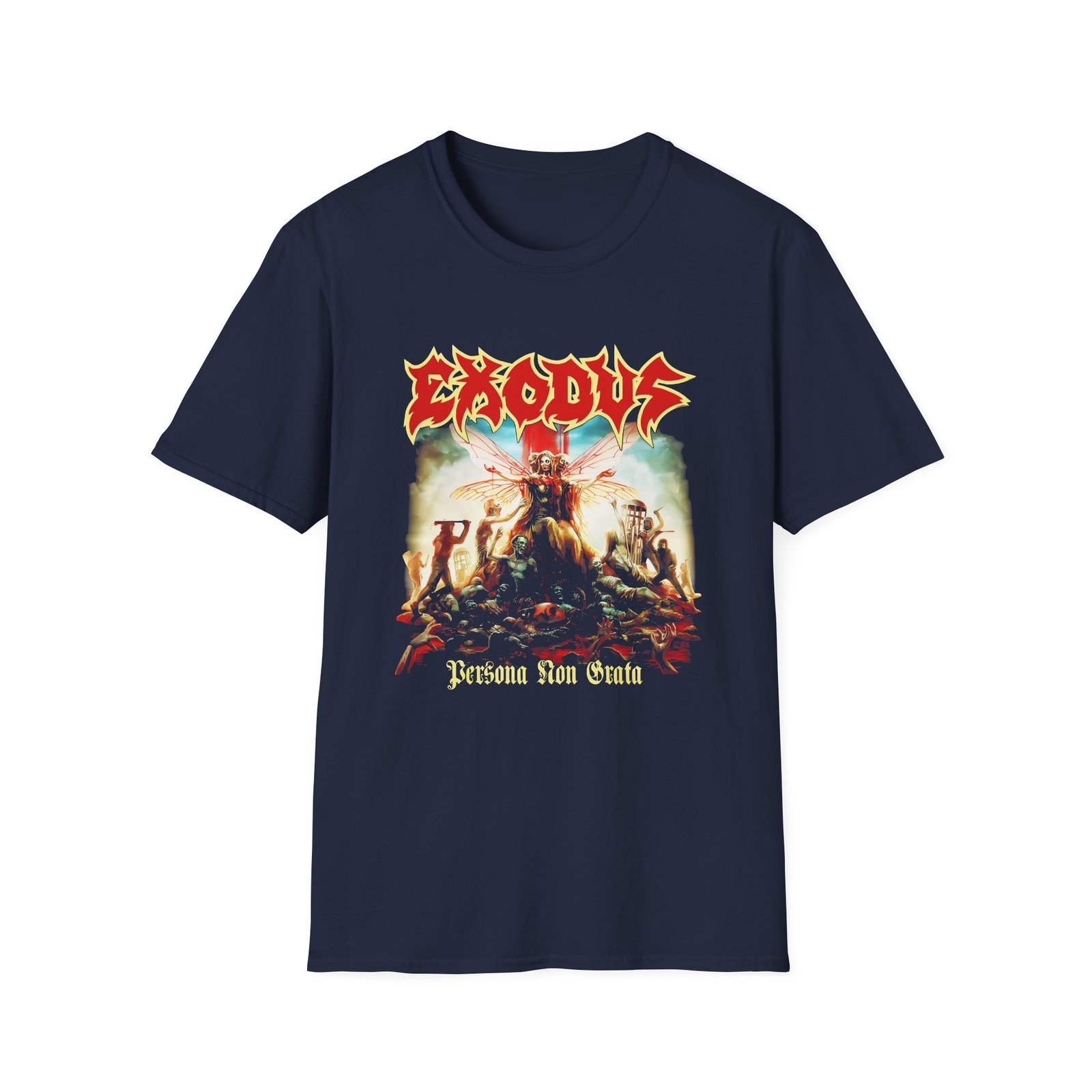 The Exodus Persona Non Grata unisex soft-style t-shirt puts a new spin on casual comfort. Made from very soft materials, this tee is 100% cotton for solid colors. Heather colors and sports grey include polyester. The shoulders have twill tape for improved durability. There are no side seams. The collar is made with ribbed knitting to prevent curling damage.
