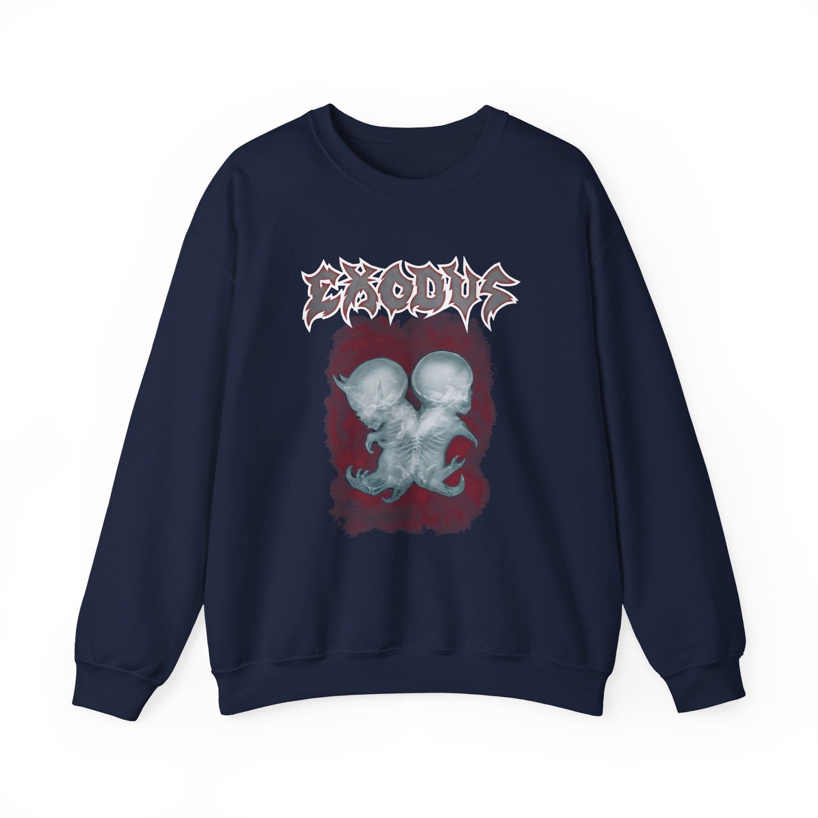 Ideal for any situation, a Exodus Prescribing Horror unisex heavy blend crewneck sweatshirt is pure comfort. These garments are made from polyester and cotton. This combination helps designs come out looking fresh and beautiful. The collar is ribbed knit, so it retains its shape even after washing. There are no itchy side seams on these sweaters.