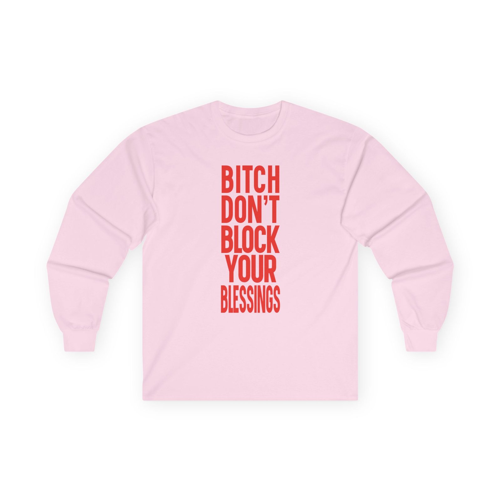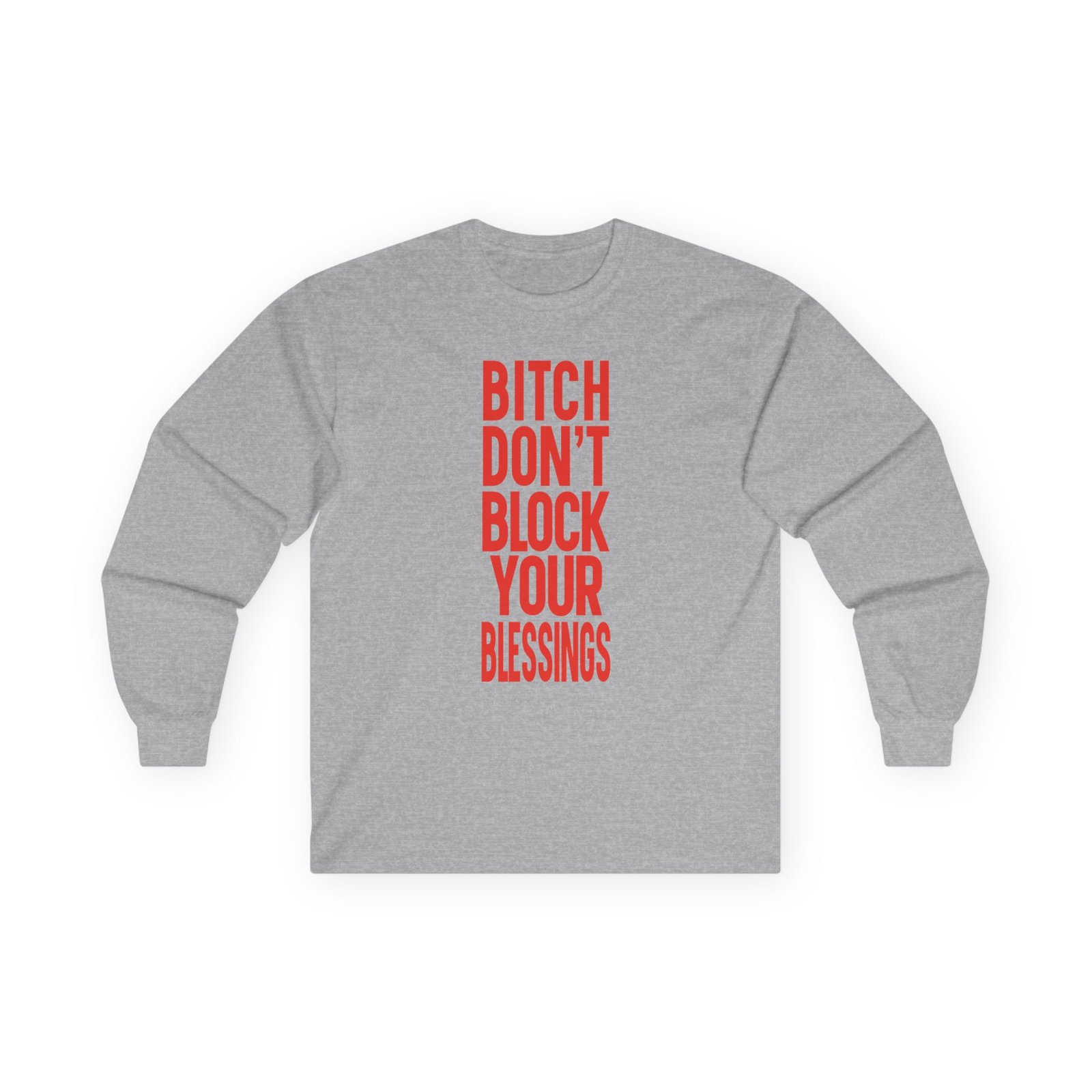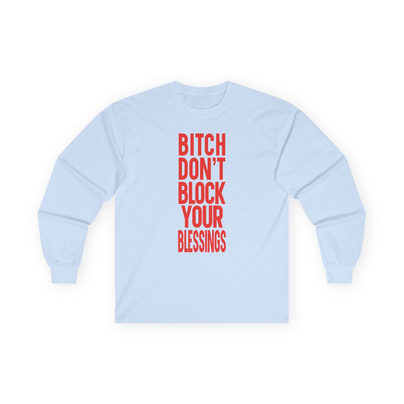 A bit more formal than a standard-issue t-shirt, the FMT Don't Block Your Blessings ultra cotton long sleeve tee is a clear comfort winner. The sleeves also act as a nice frame. There are no side seams. The shoulders are taped for improved durability. This makes for a good fitting around the shoulders and neck. The cotton used for these shirts is environmentally friendly.