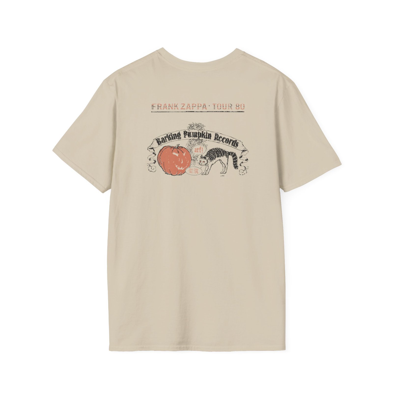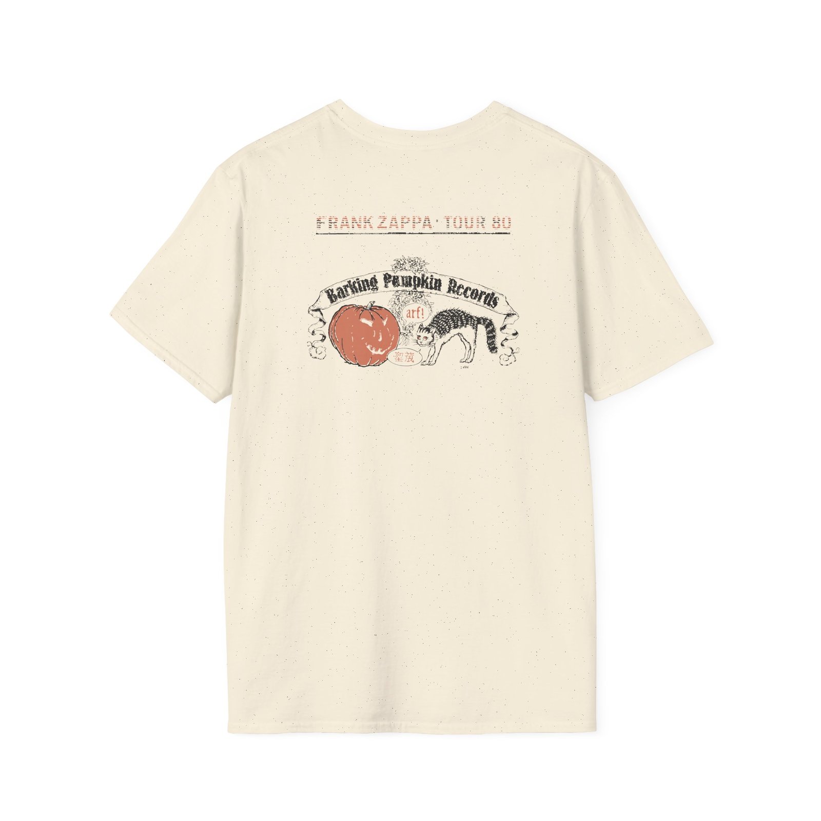 The Frank Zappa Barking Pumpkin Record unisex soft-style t-shirt puts a new spin on casual comfort. Made from very soft materials, this tee is 100% cotton for solid colors. Heather colors and sports grey include polyester. The shoulders have twill tape for improved durability. There are no side seams. The collar is made with ribbed knitting to prevent curling damage.