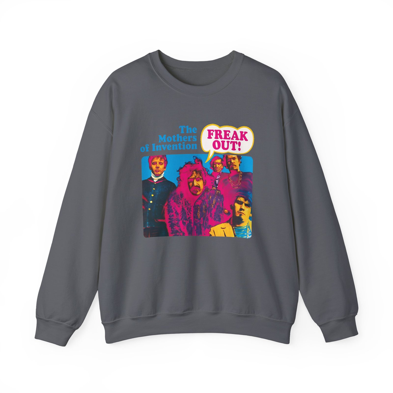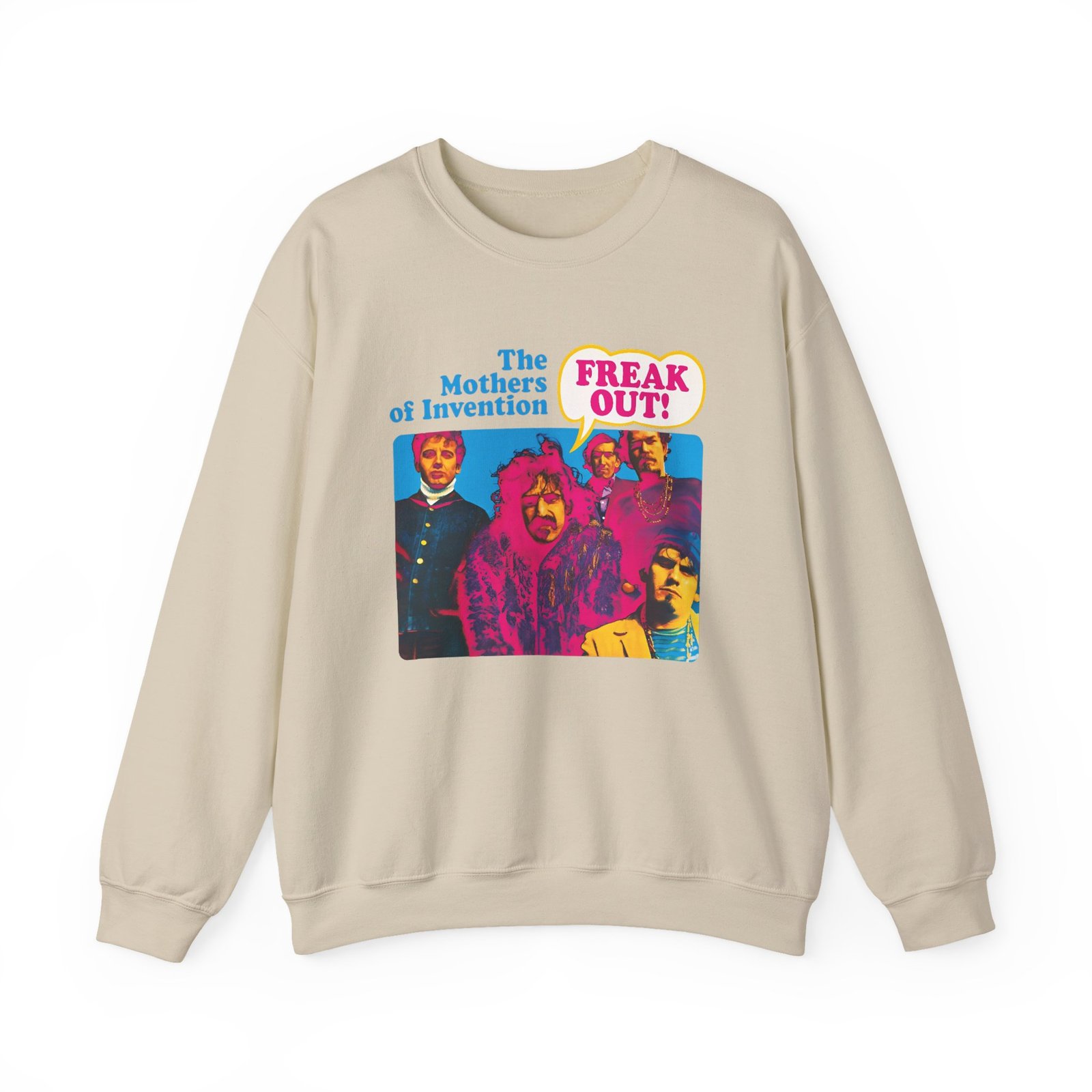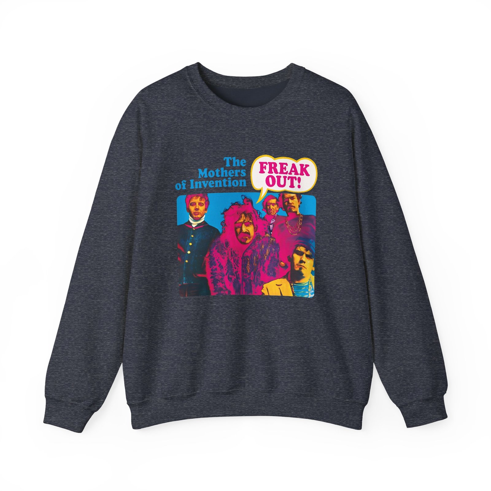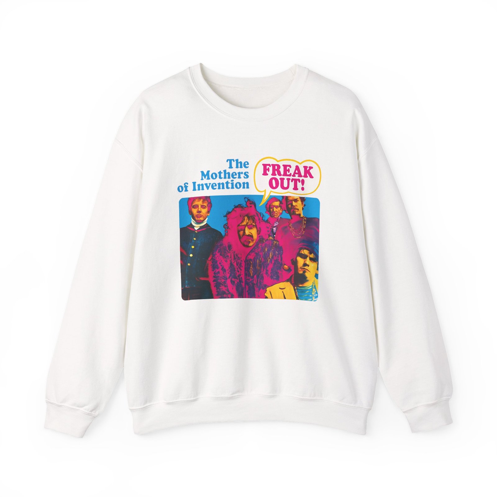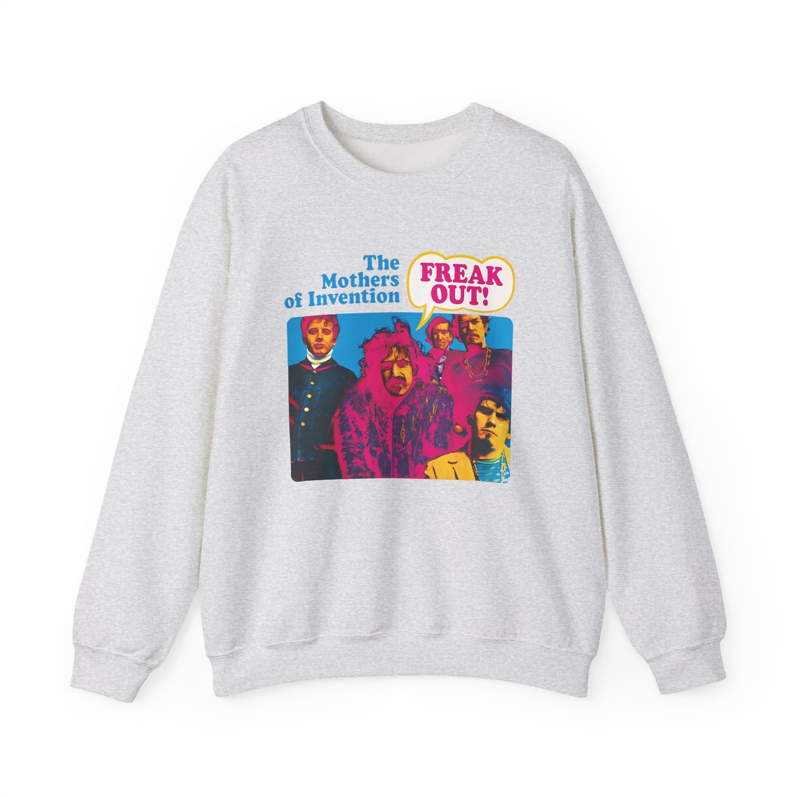 Ideal for any situation, a Frank Zappa Freak Out unisex heavy blend crewneck sweatshirt is pure comfort. These garments are made from polyester and cotton. This combination helps designs come out looking fresh and beautiful. The collar is ribbed knit, so it retains its shape even after washing. There are no itchy side seams on these sweaters.