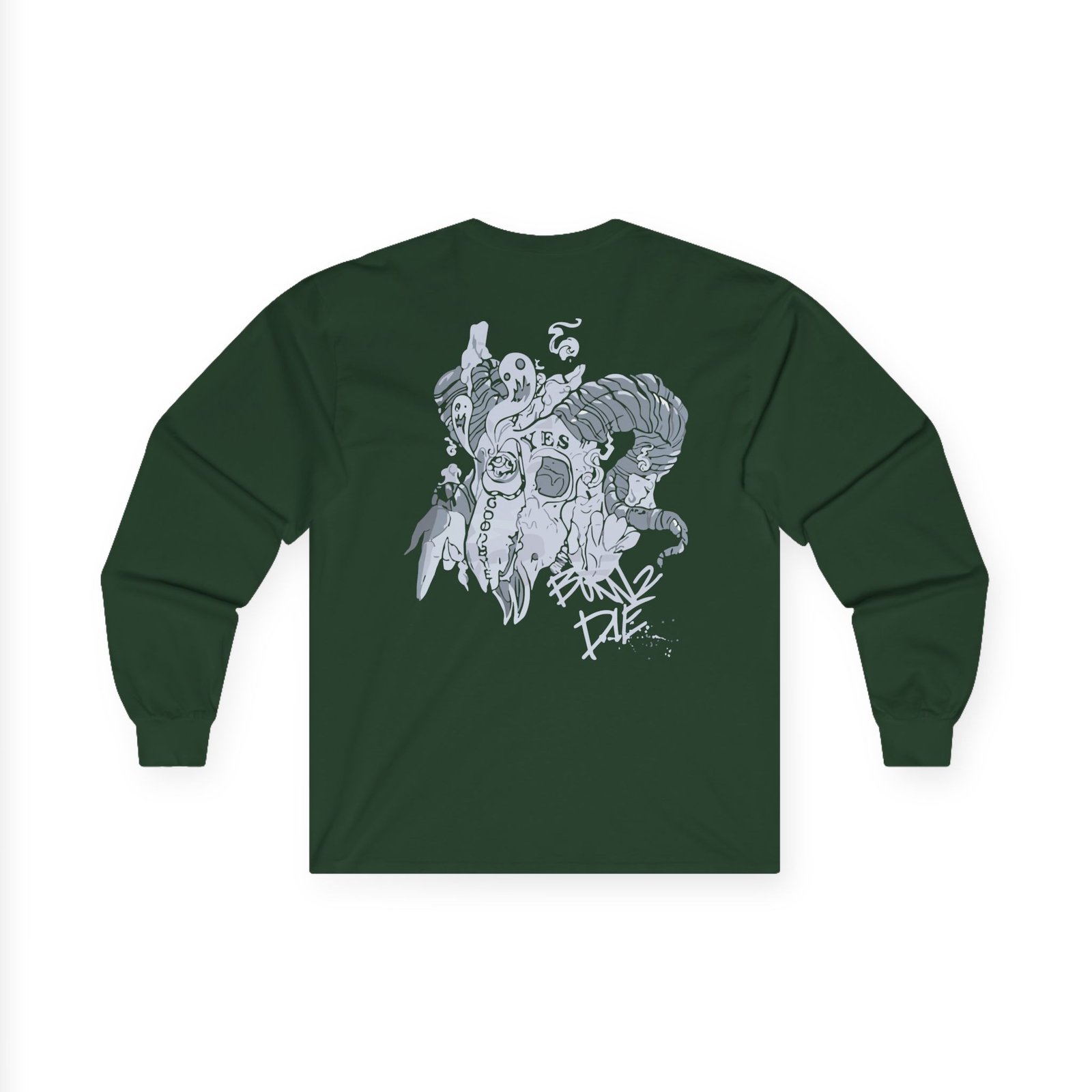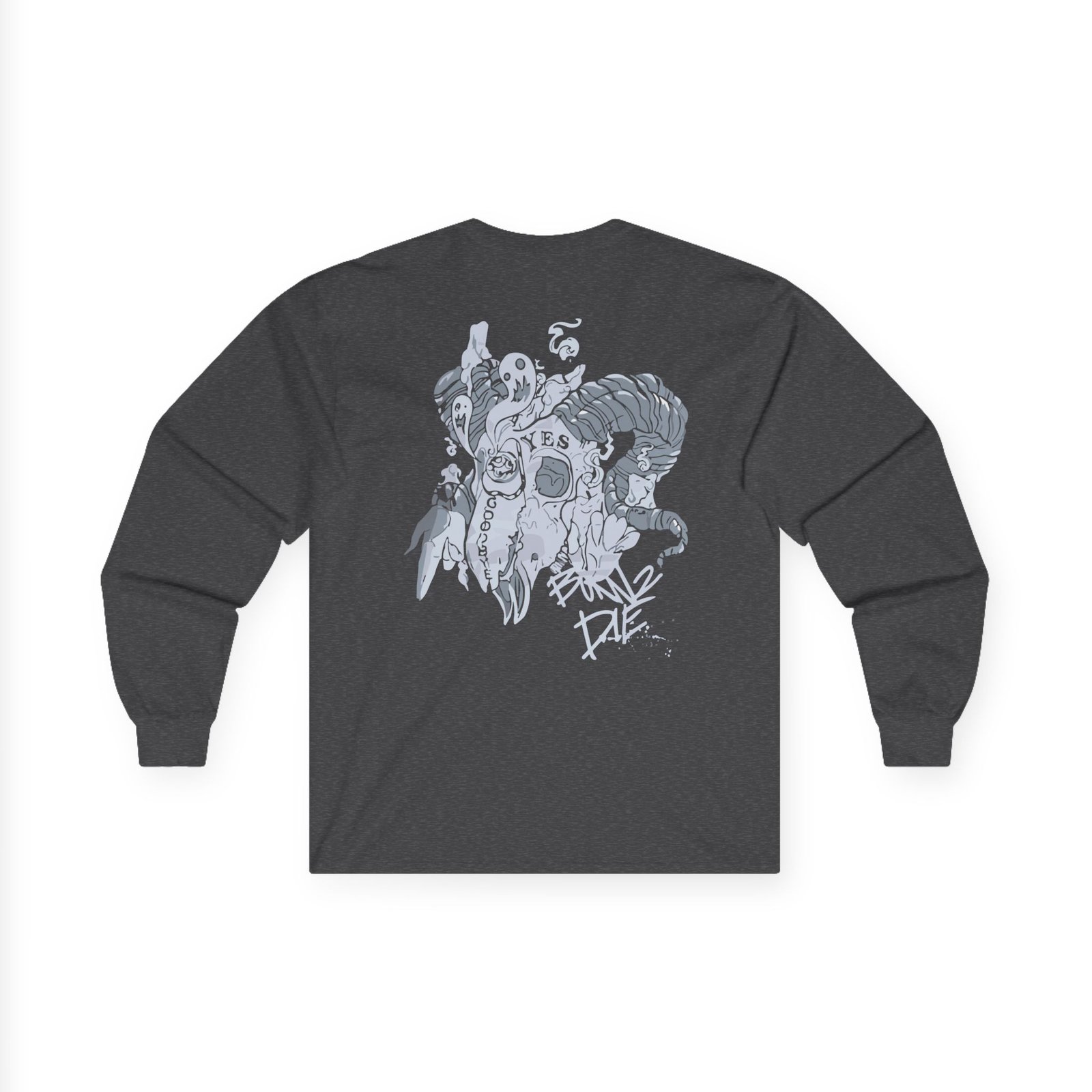 A bit more formal than a standard-issue t-shirt, the Ghastly – Born 2 Die ultra cotton long sleeve tee is a clear comfort winner. The sleeves also act as a nice frame. There are no side seams. The shoulders are taped for improved durability. This makes for a good fitting around the shoulders and neck. The cotton used for these shirts is environmentally friendly.