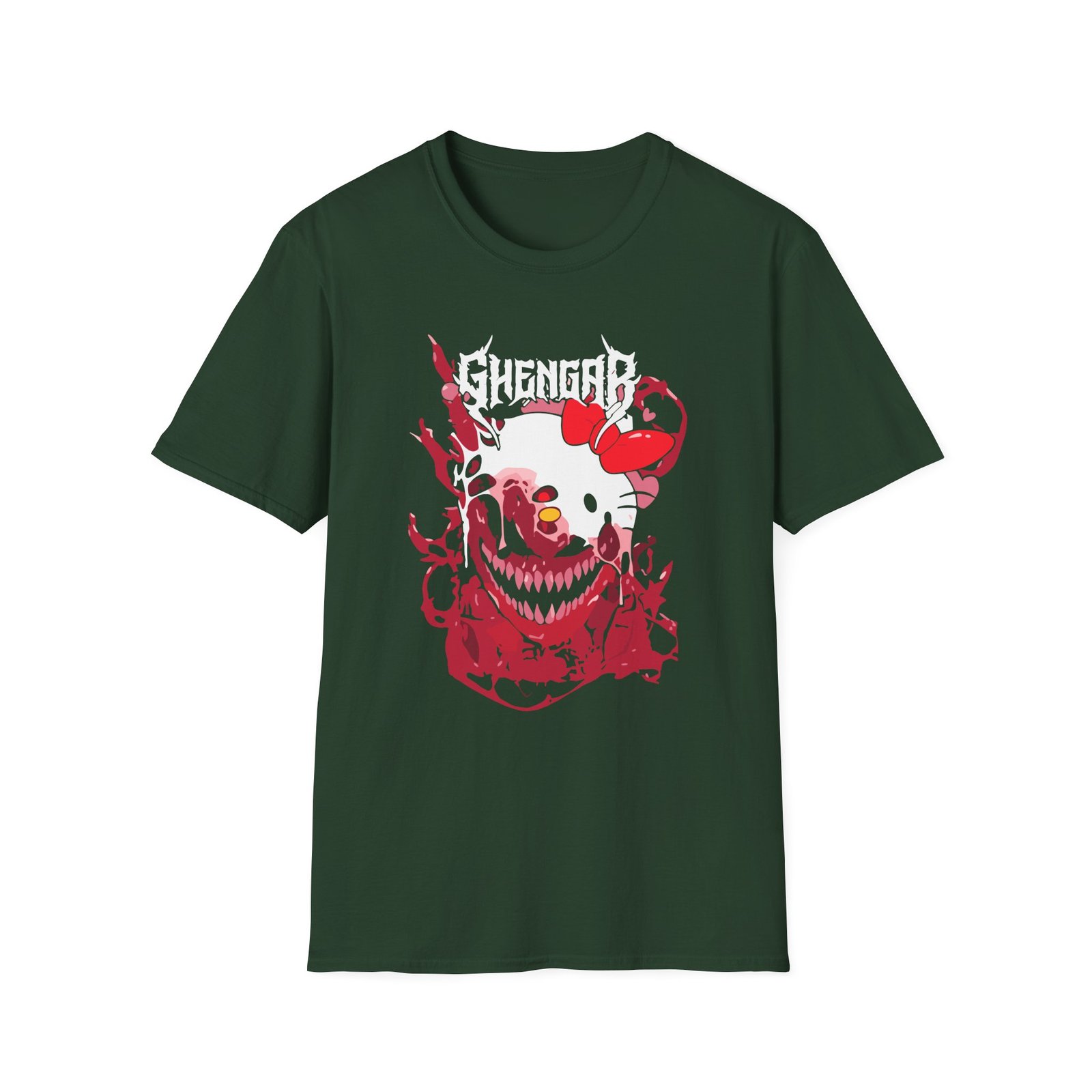 The Ghastly Ghengar unisex soft-style t-shirt puts a new spin on casual comfort. Made from very soft materials, this tee is 100% cotton for solid colors. Heather colors and sports grey include polyester. The shoulders have twill tape for improved durability. There are no side seams. The collar is made with ribbed knitting to prevent curling damage.
