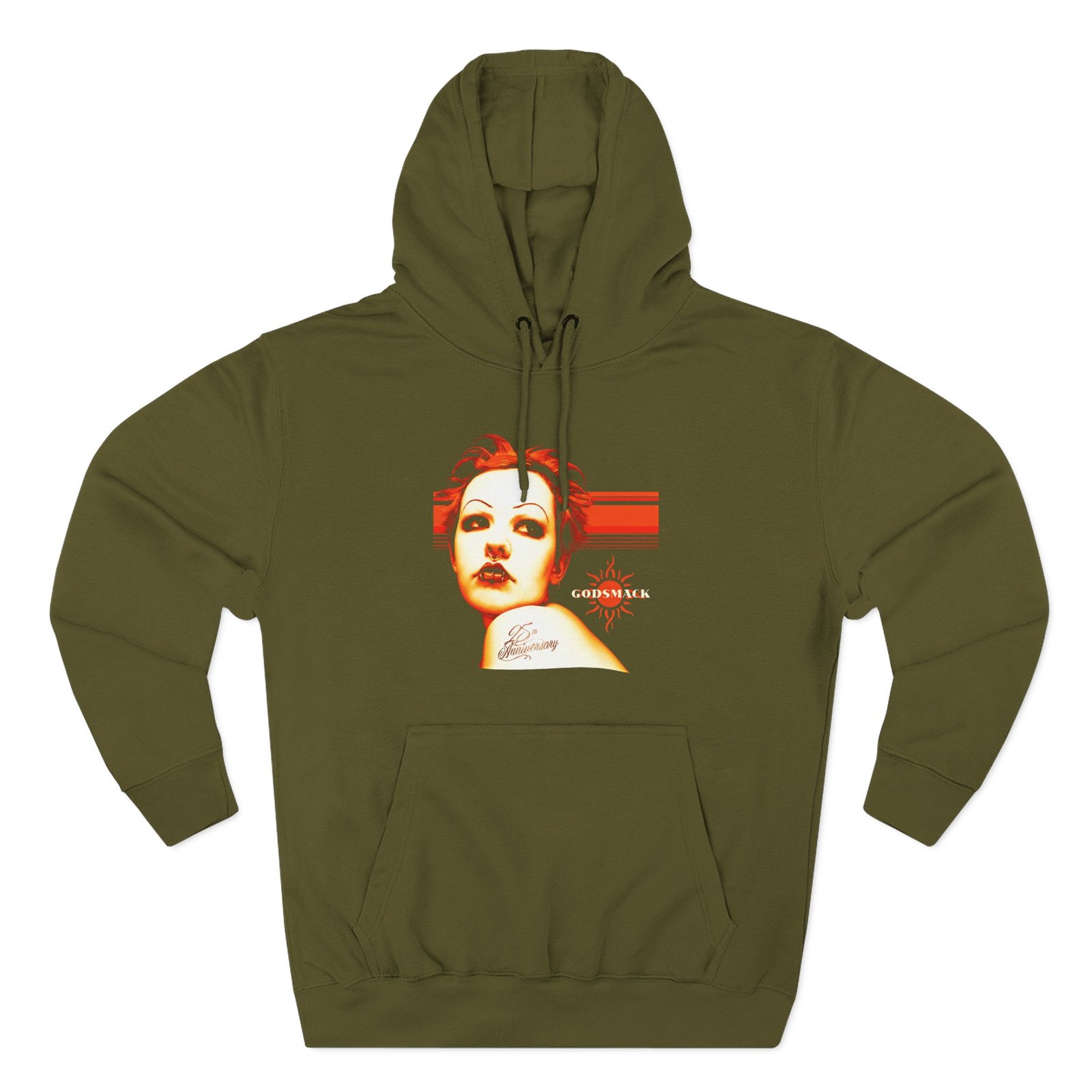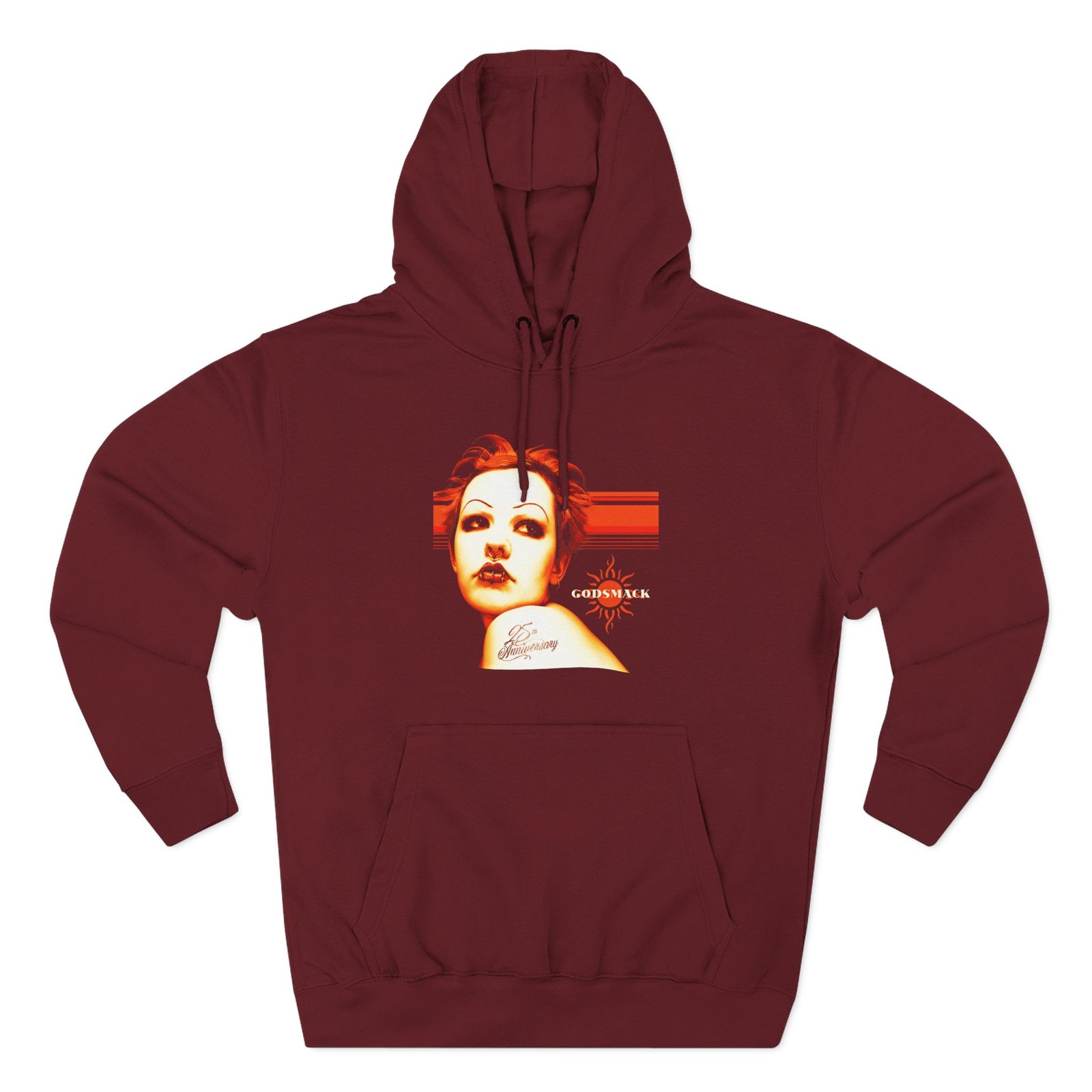 Beat the cold with this Godsmack 25th Anniversary premium pullover hoodie that’s just the right layer of warm and cozy. Made with three-panel fleece lining, this pullover is double stitched for durability and roomy. Pick one in your favorite color to match your style.