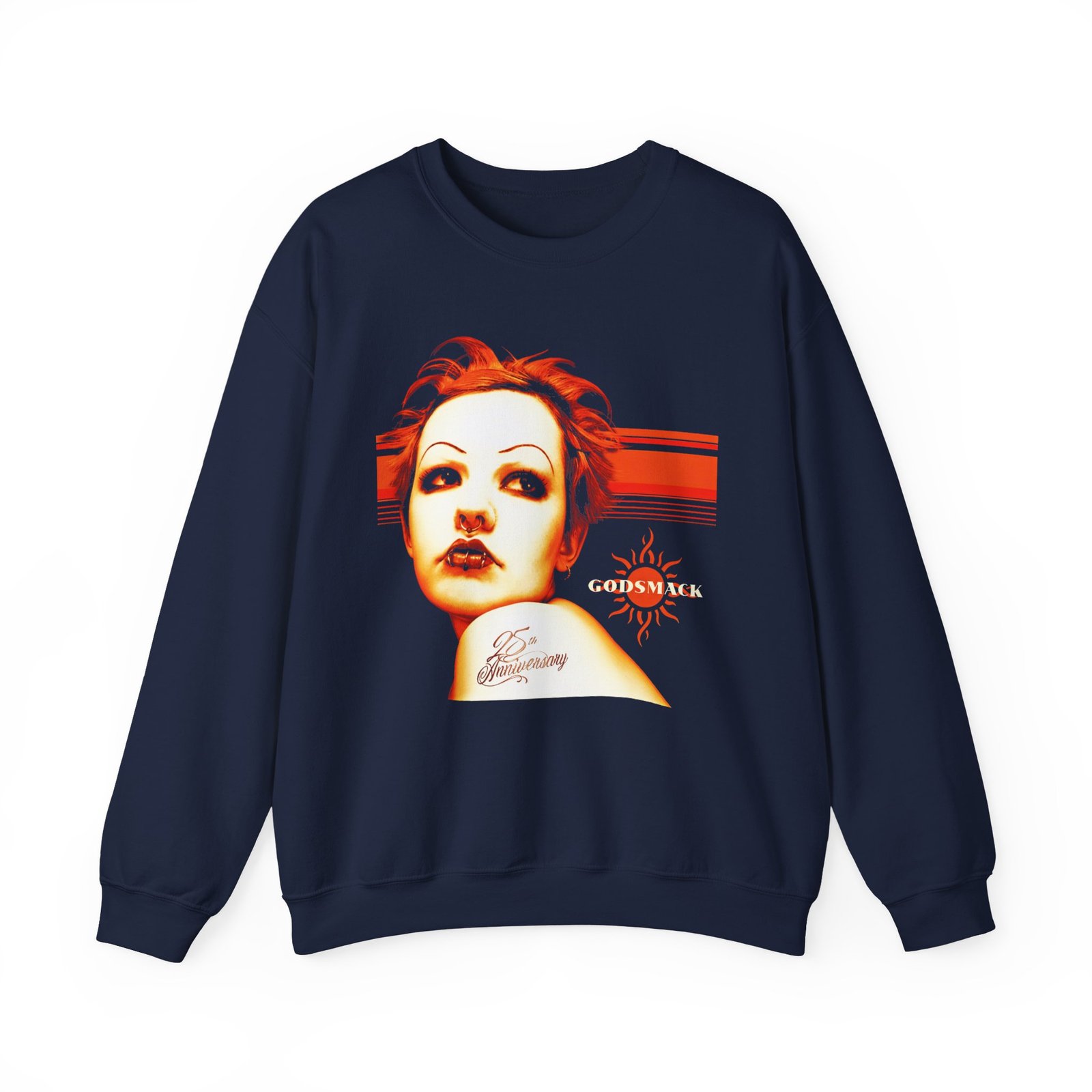 Ideal for any situation, a Godsmack 25th Anniversary unisex heavy blend crewneck sweatshirt is pure comfort. These garments are made from polyester and cotton. This combination helps designs come out looking fresh and beautiful. The collar is ribbed knit, so it retains its shape even after washing. There are no itchy side seams on these sweaters.