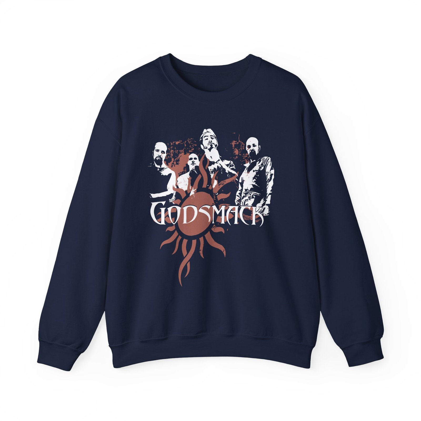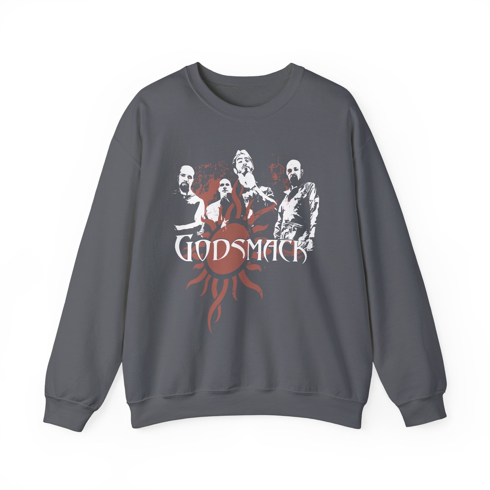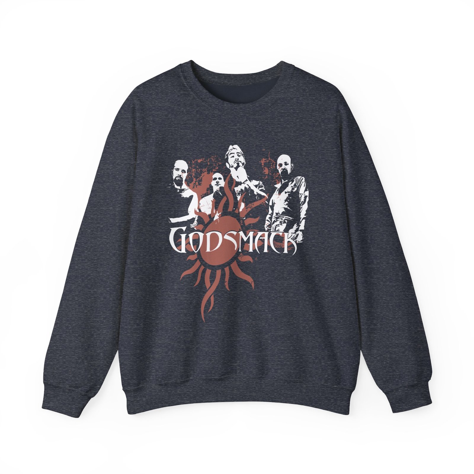 Ideal for any situation, a Godsmack Awake unisex heavy blend crewneck sweatshirt is pure comfort. These garments are made from polyester and cotton. This combination helps designs come out looking fresh and beautiful. The collar is ribbed knit, so it retains its shape even after washing. There are no itchy side seams on these sweaters.