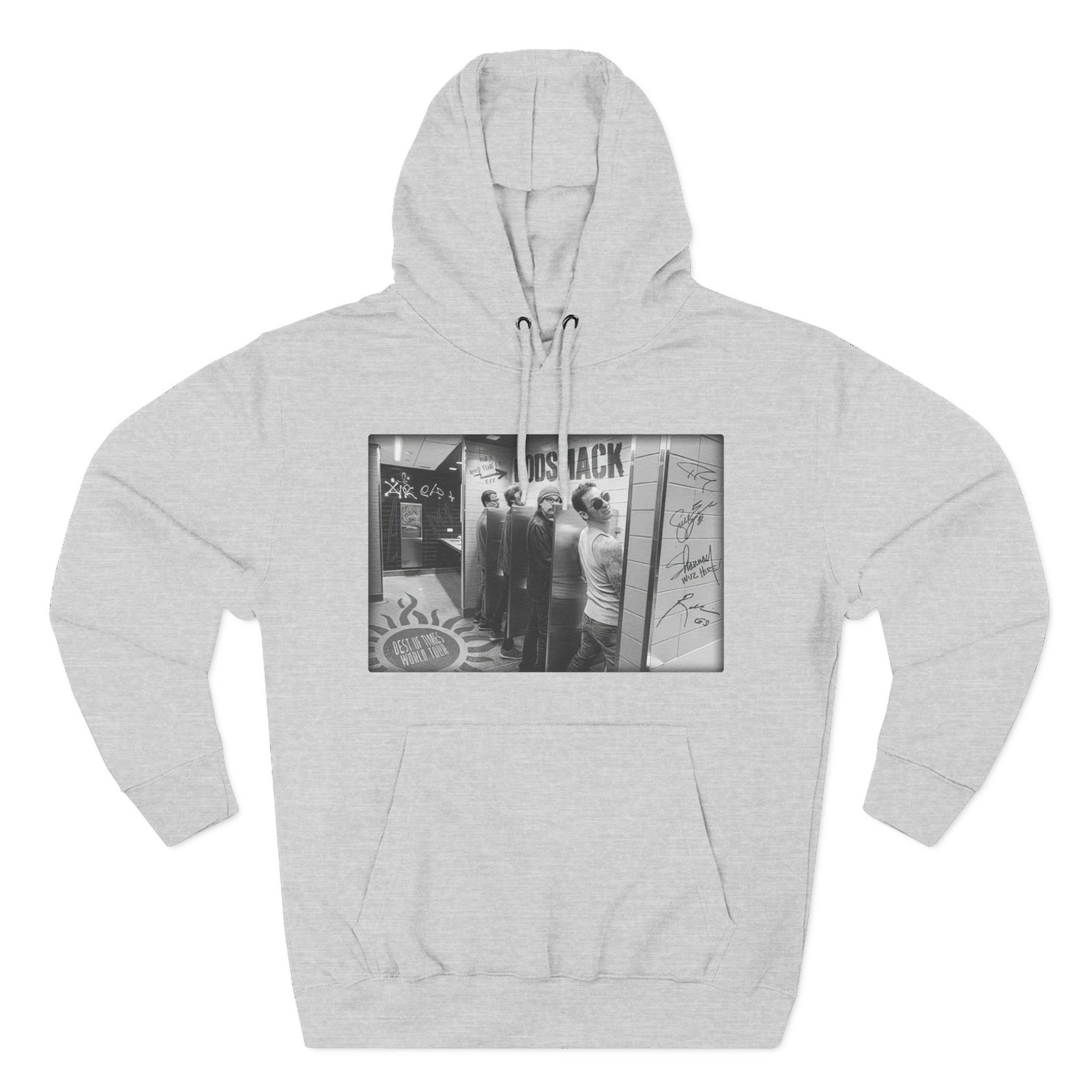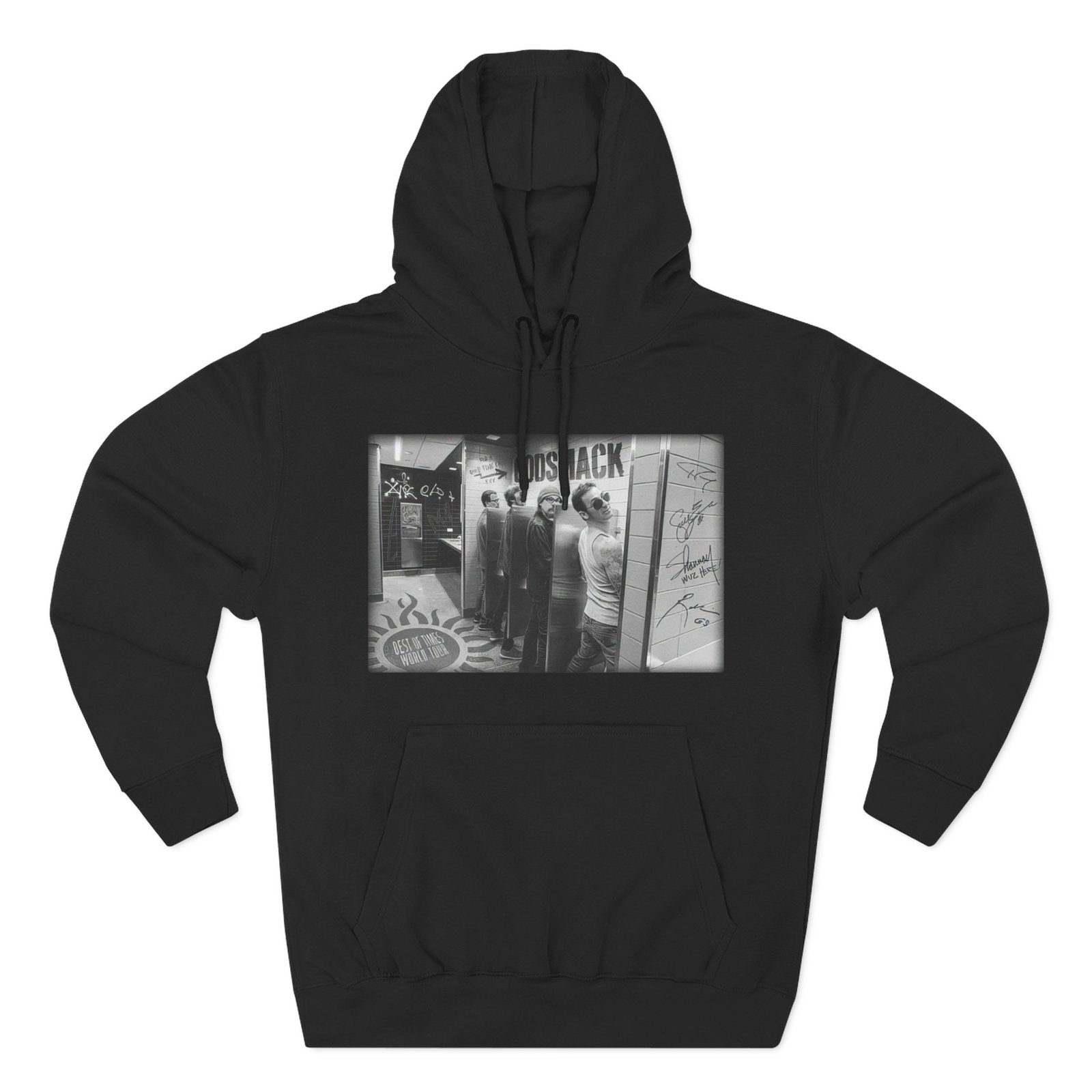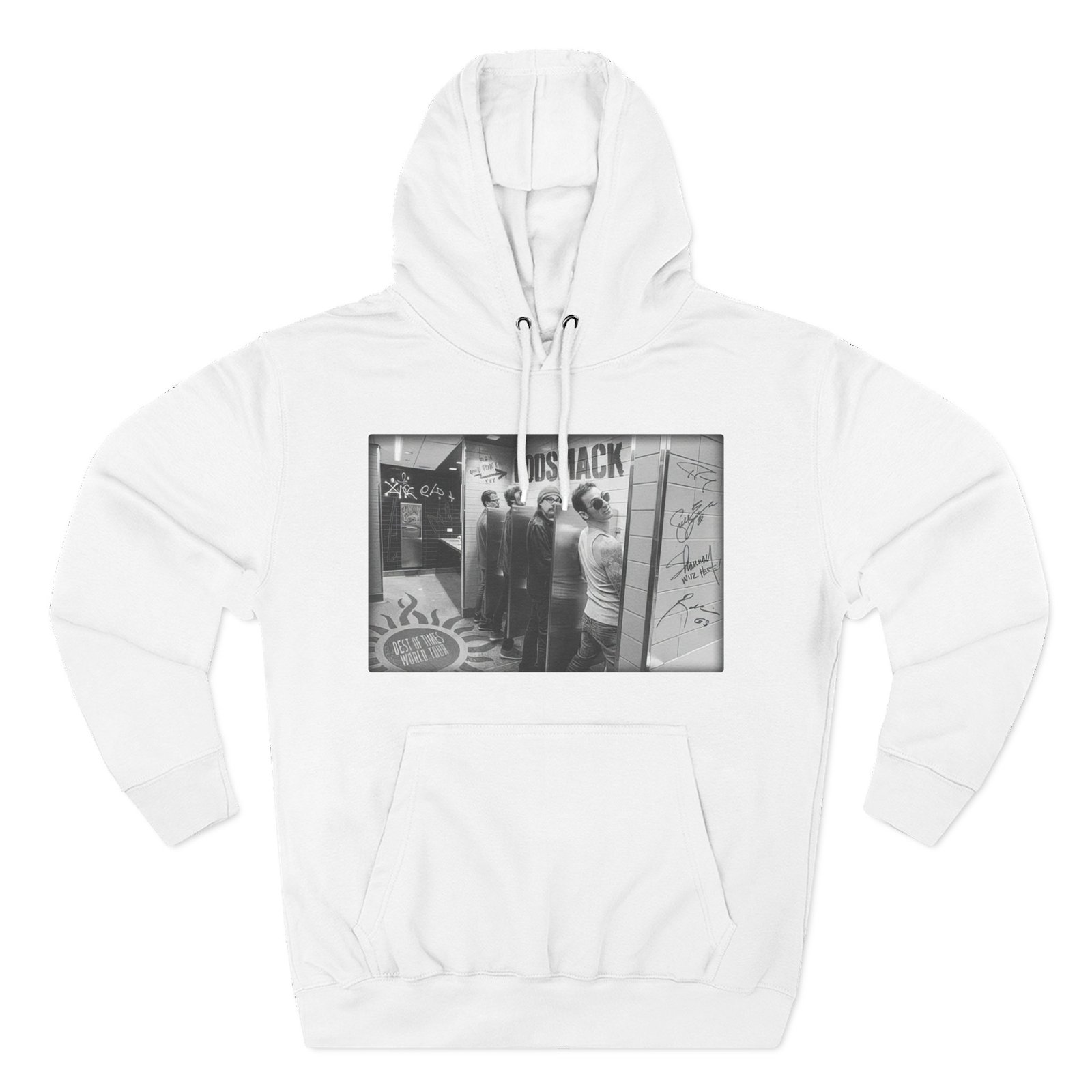 Beat the cold with this Godsmack Bathroom Photo premium pullover hoodie that’s just the right layer of warm and cozy. Made with three-panel fleece lining, this pullover is double stitched for durability and roomy. Pick one in your favorite color to match your style.