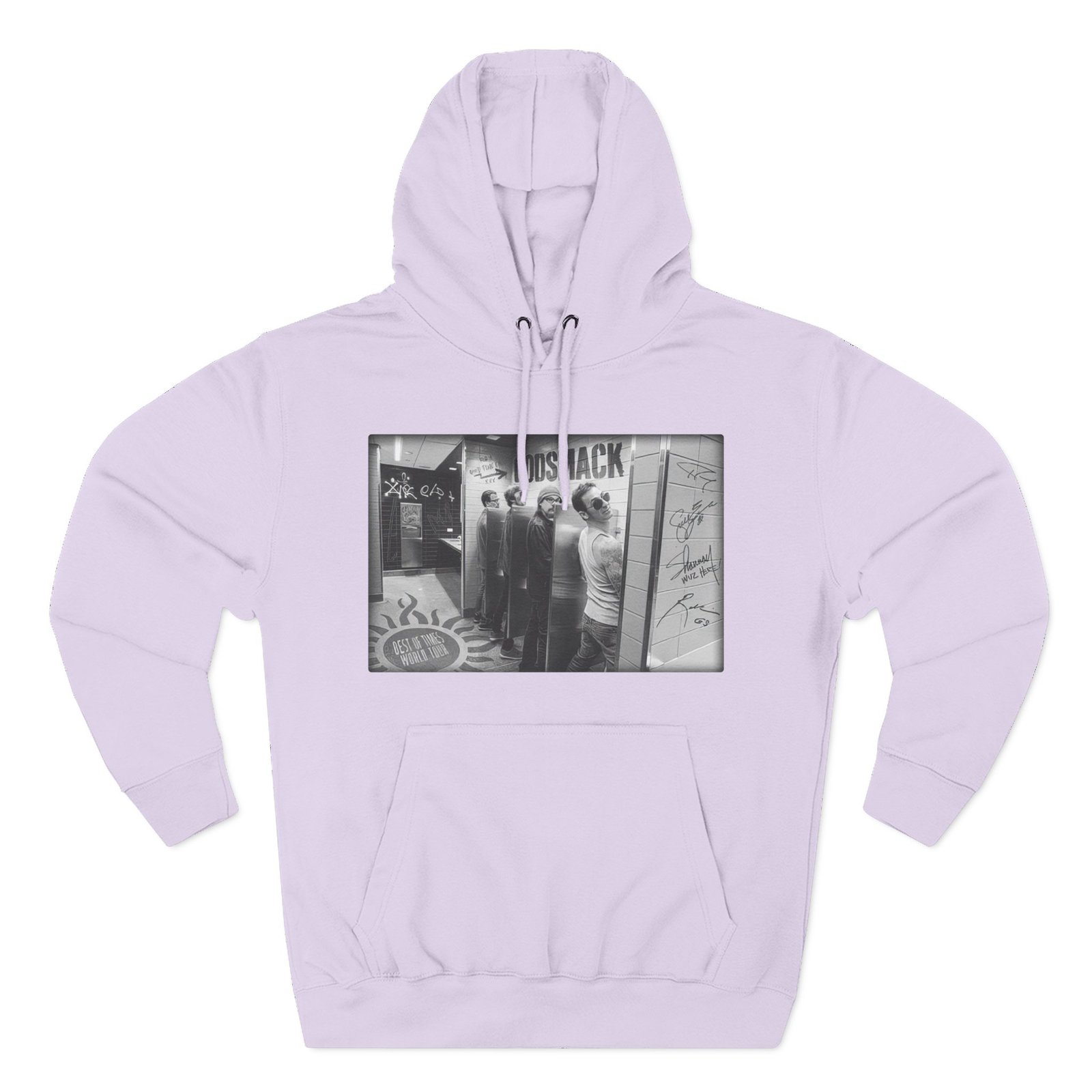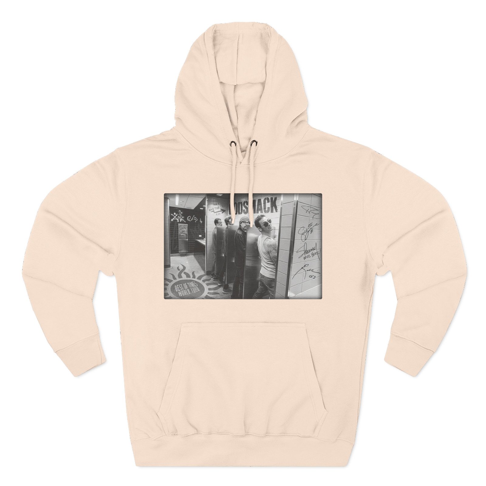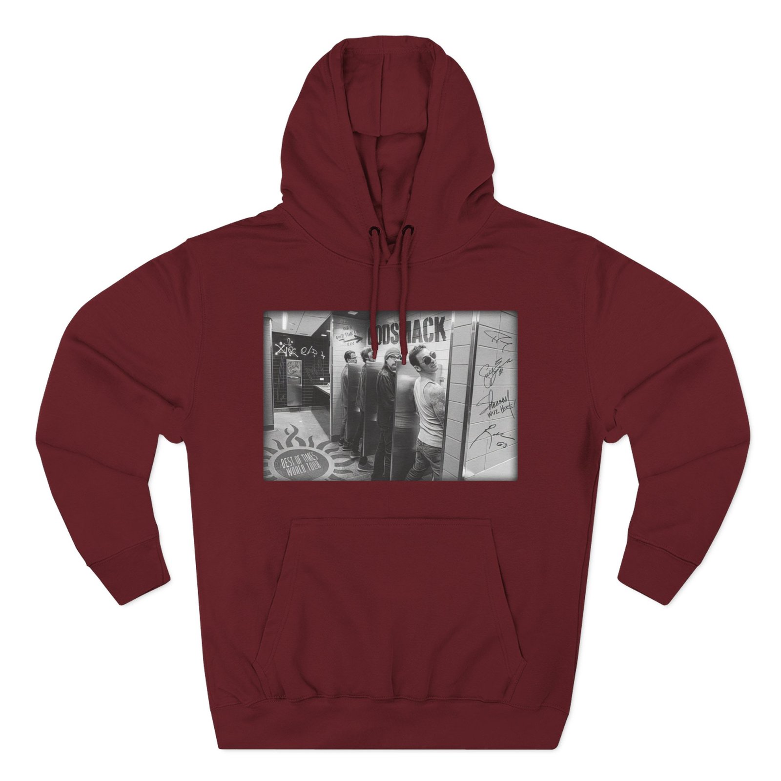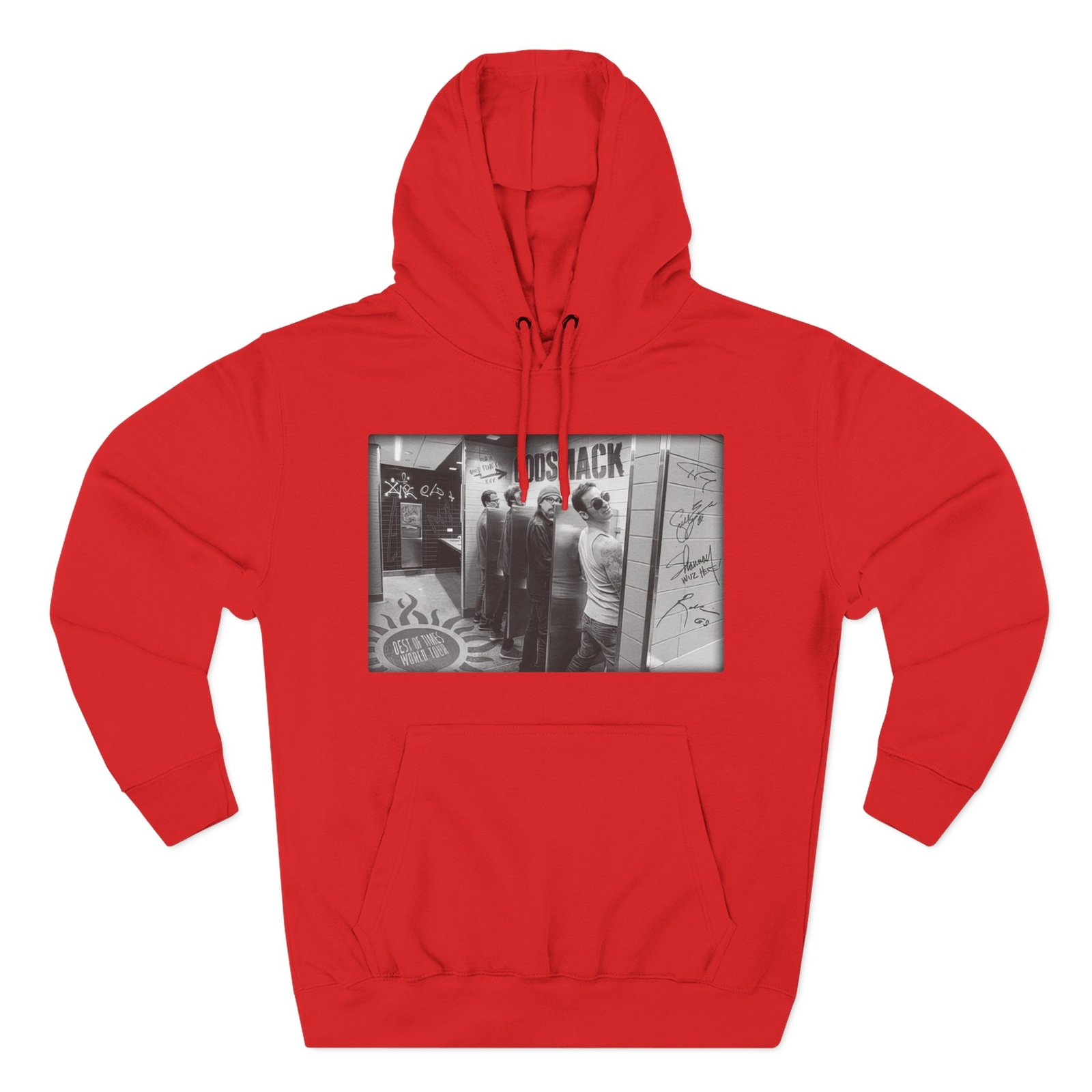 Beat the cold with this Godsmack Bathroom Photo premium pullover hoodie that’s just the right layer of warm and cozy. Made with three-panel fleece lining, this pullover is double stitched for durability and roomy. Pick one in your favorite color to match your style.