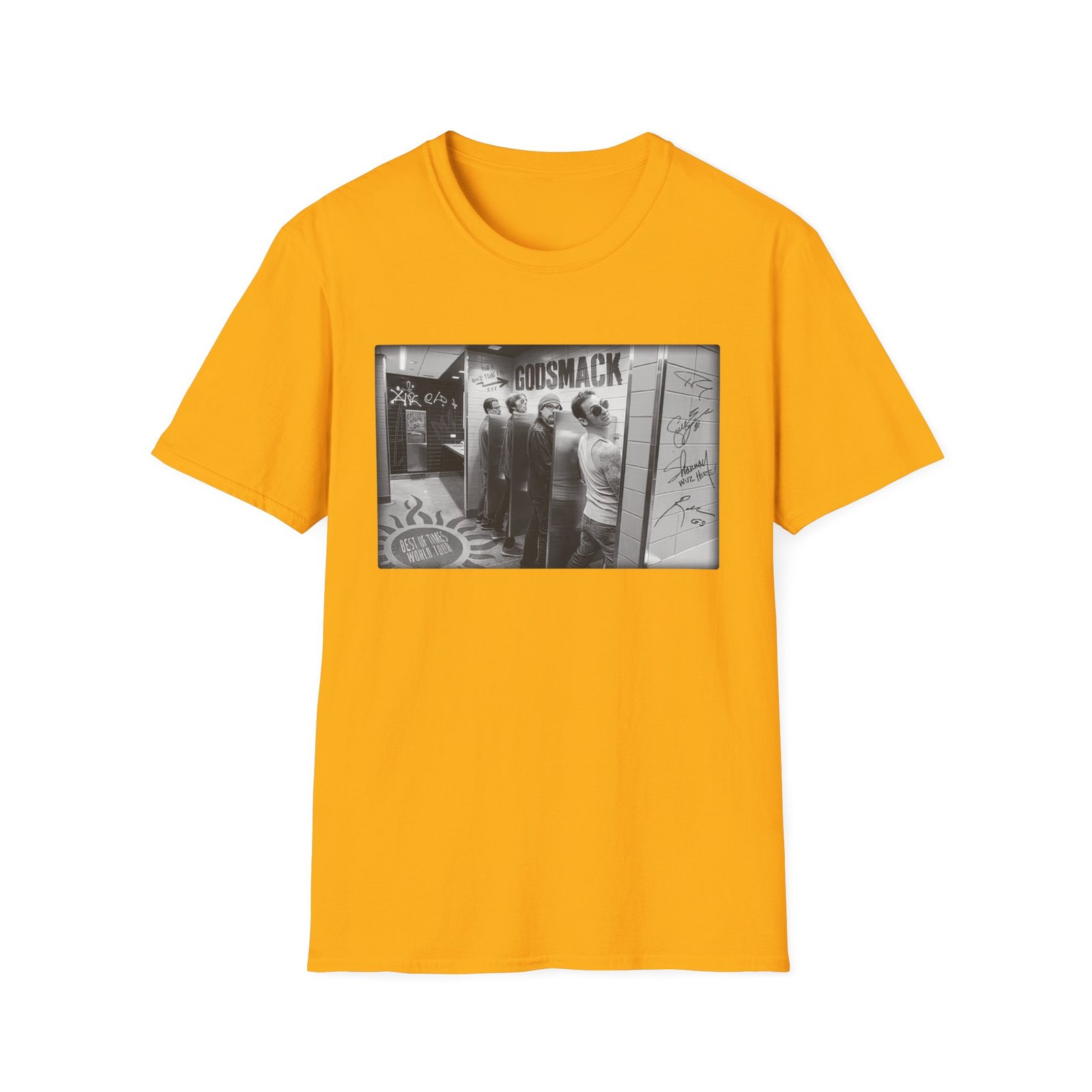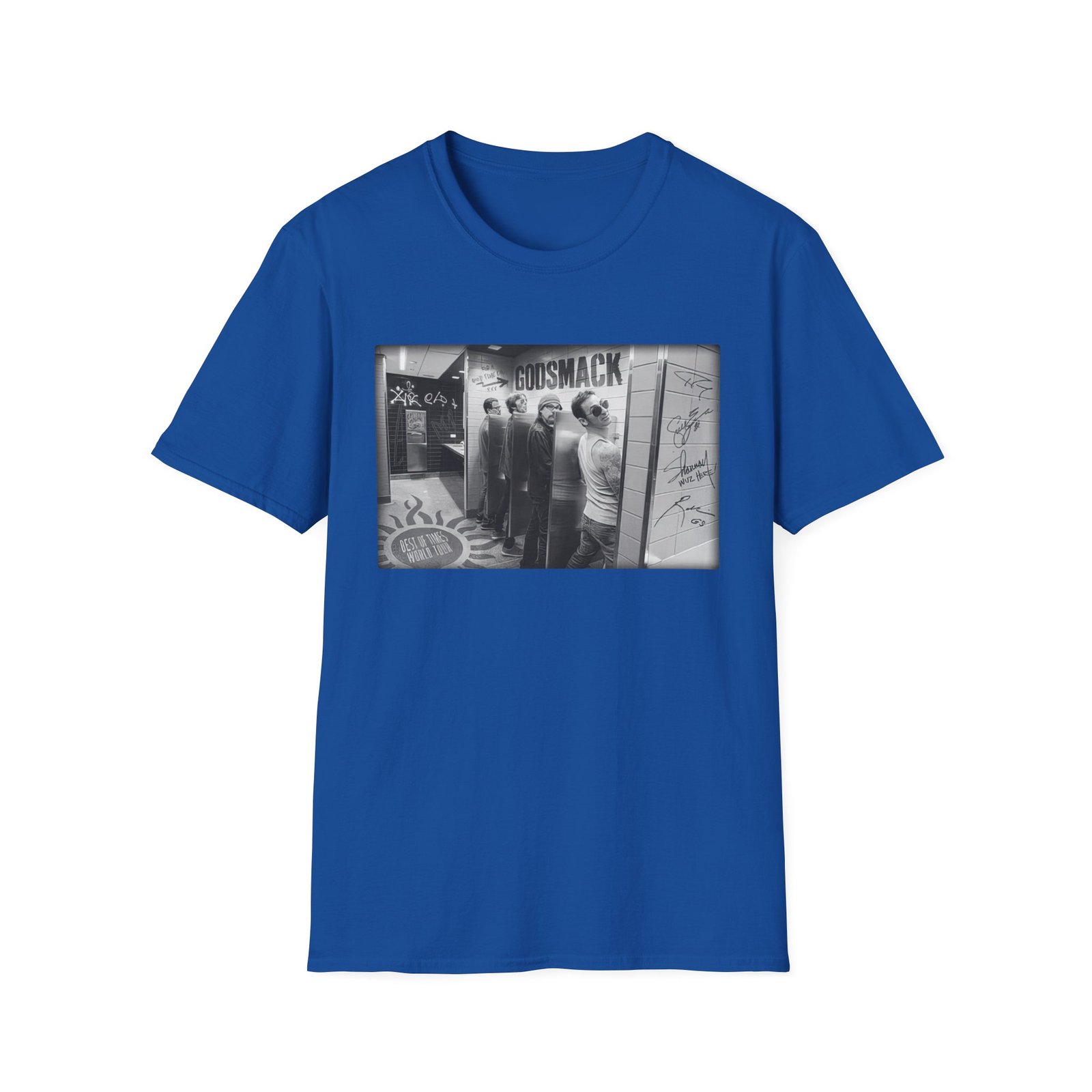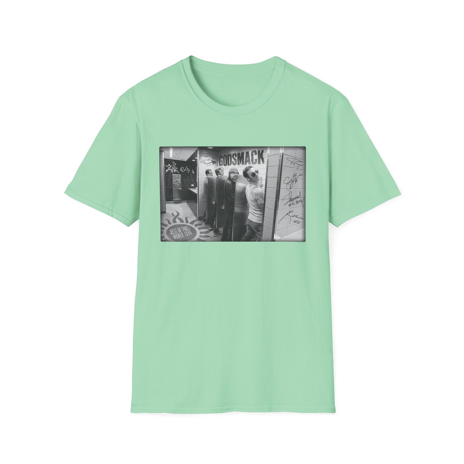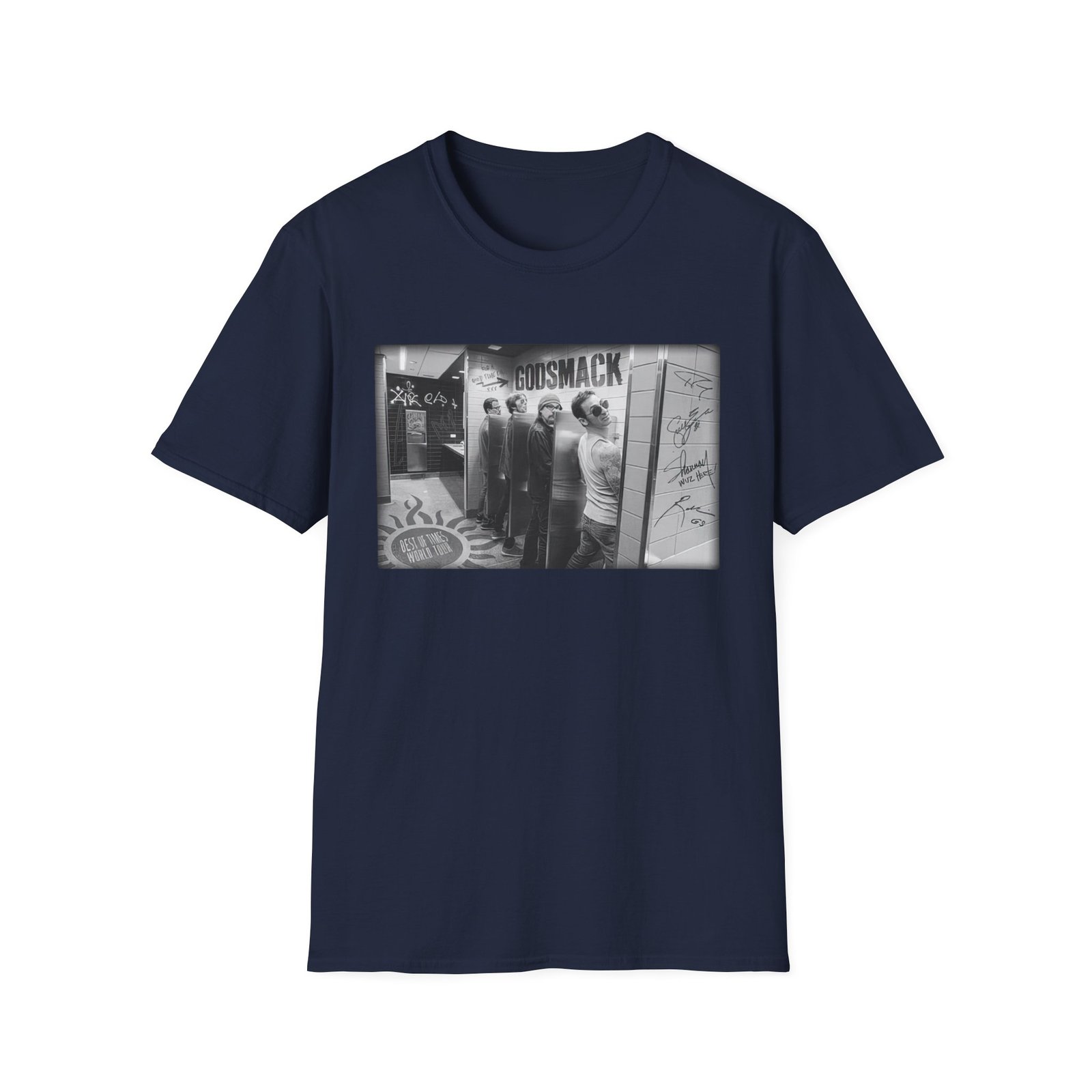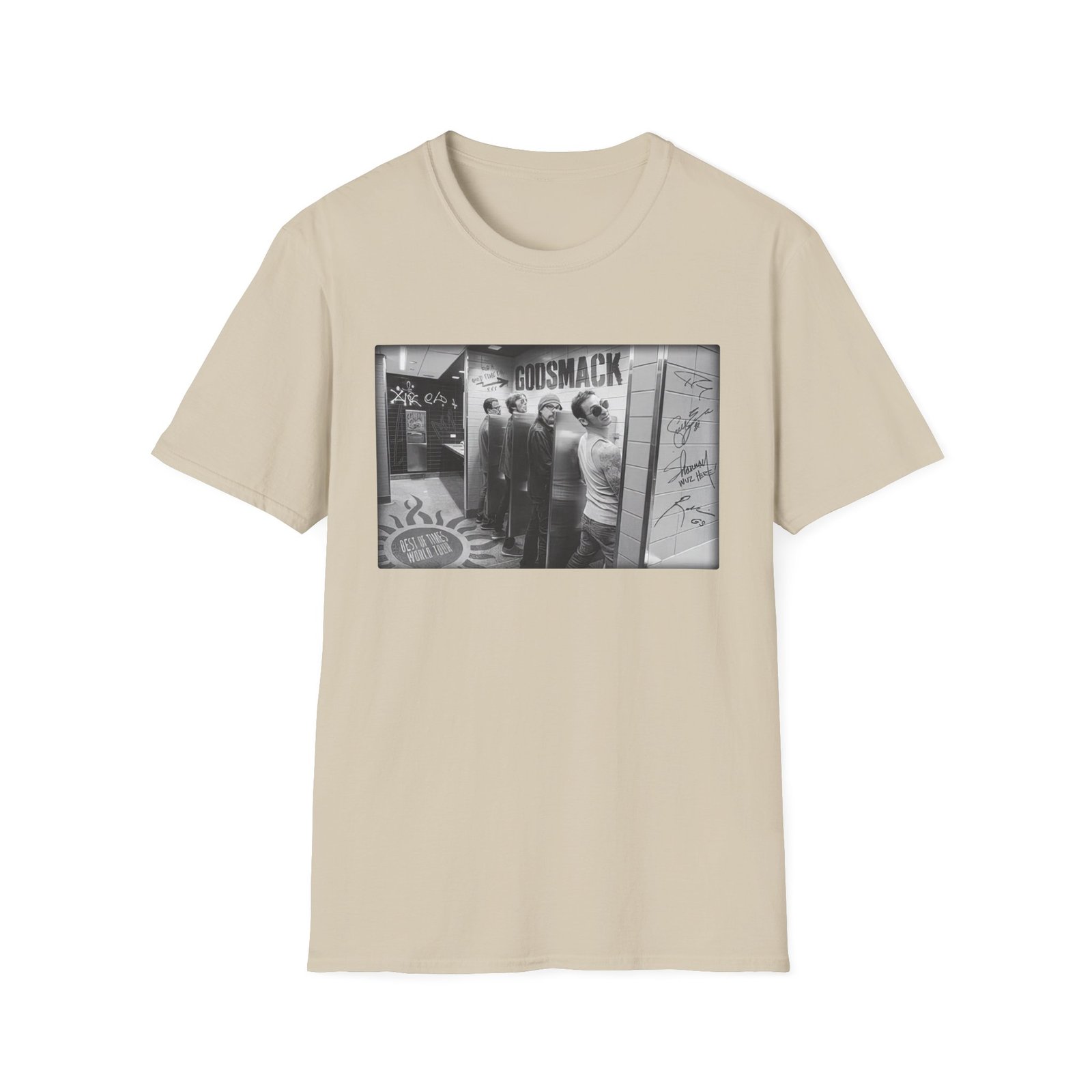 The Godsmack Bathroom Photo unisex soft-style t-shirt puts a new spin on casual comfort. Made from very soft materials, this tee is 100% cotton for solid colors. Heather colors and sports grey include polyester. The shoulders have twill tape for improved durability. There are no side seams. The collar is made with ribbed knitting to prevent curling damage.