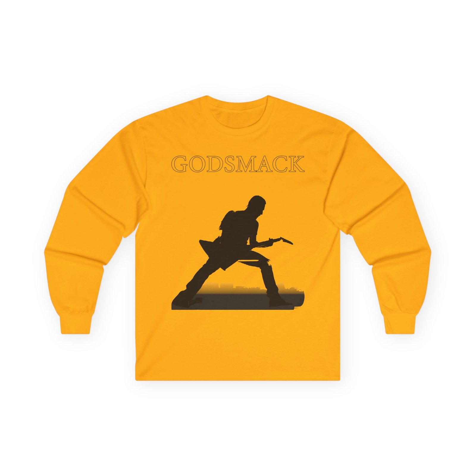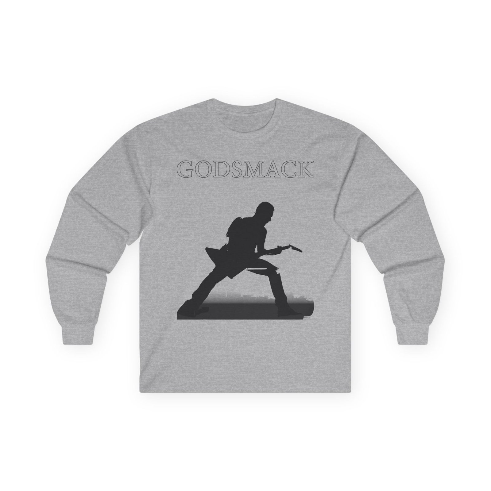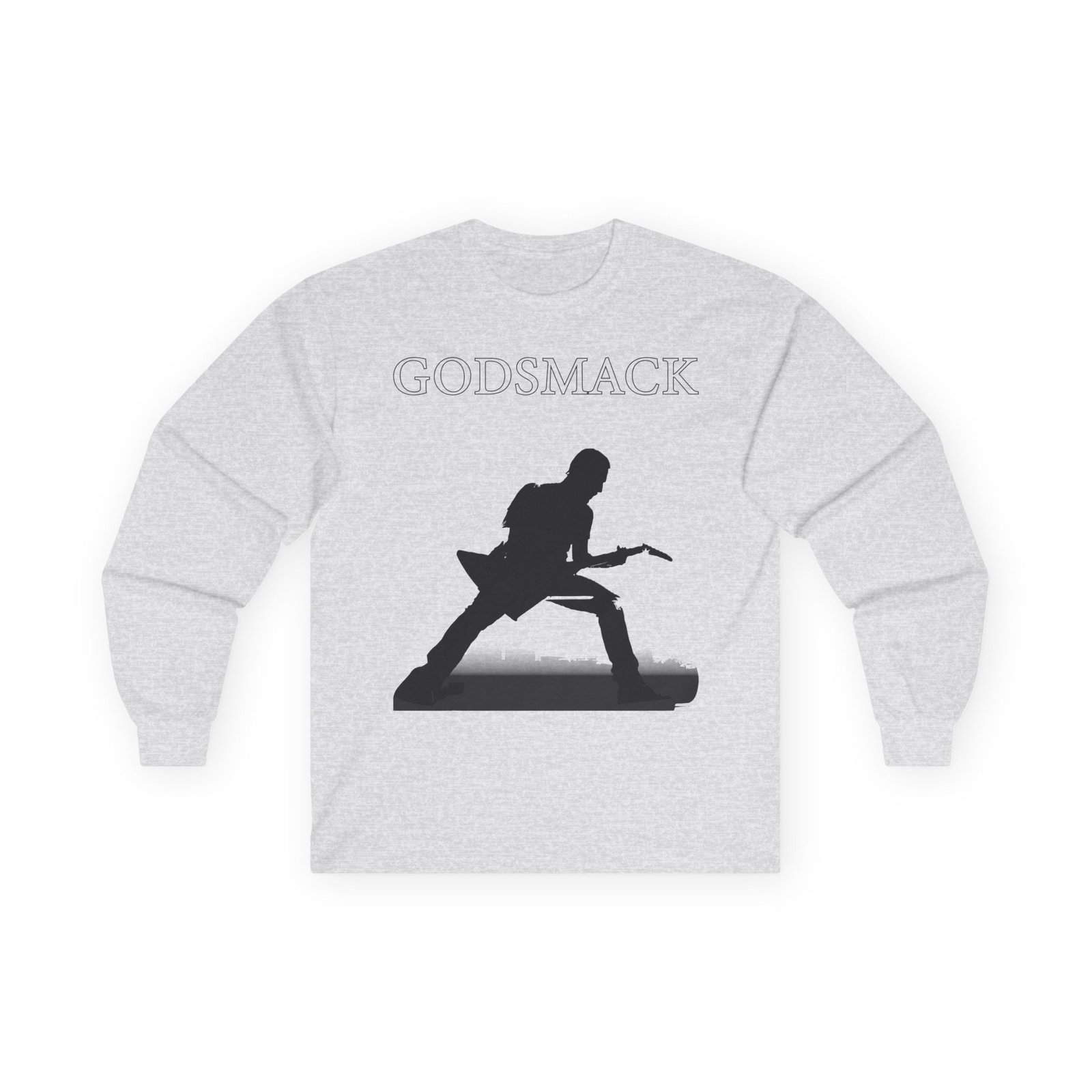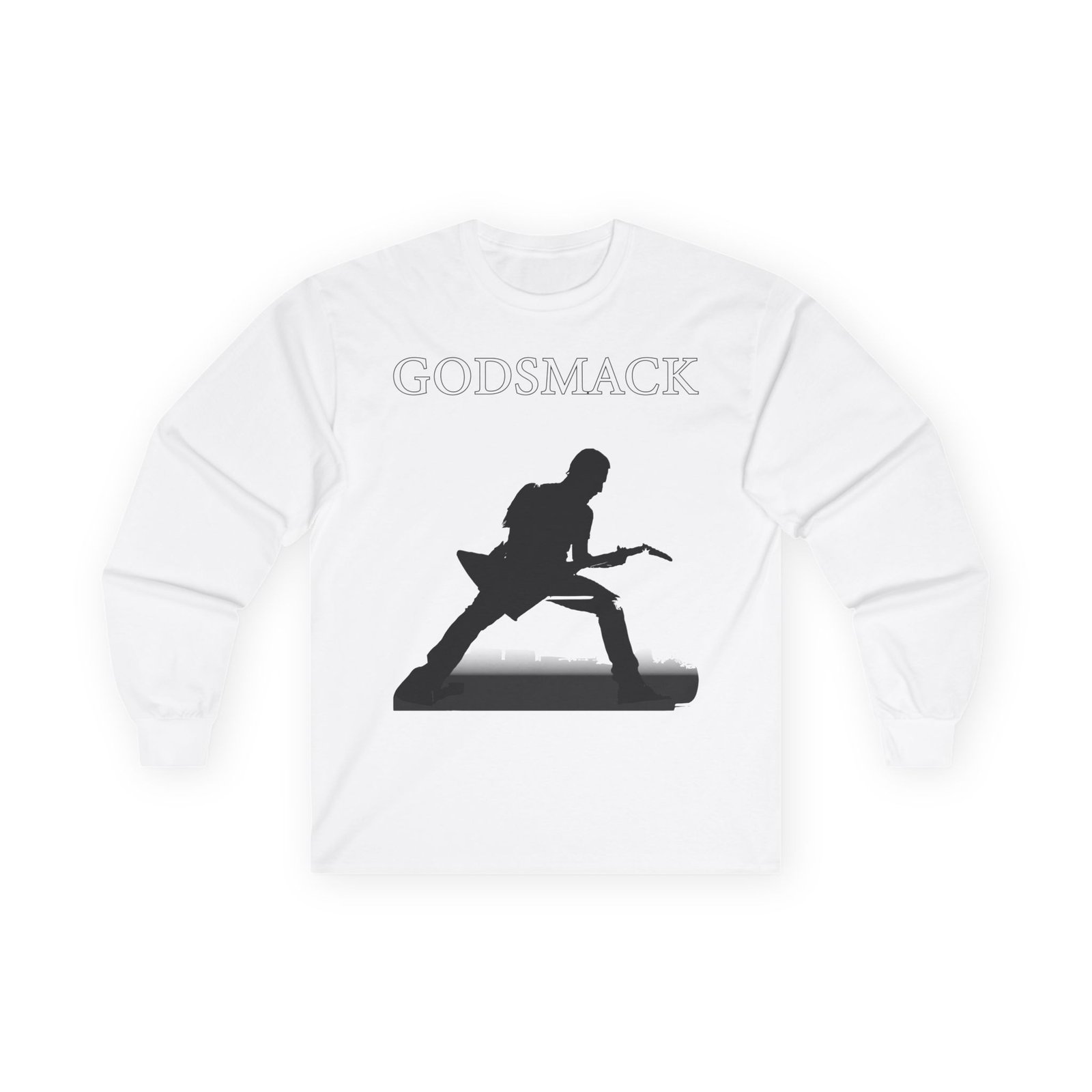 A bit more formal than a standard-issue t-shirt, the Godsmack Guitar Photo ultra cotton long sleeve tee is a clear comfort winner. The sleeves also act as a nice frame. There are no side seams. The shoulders are taped for improved durability. This makes for a good fitting around the shoulders and neck. The cotton used for these shirts is environmentally friendly.