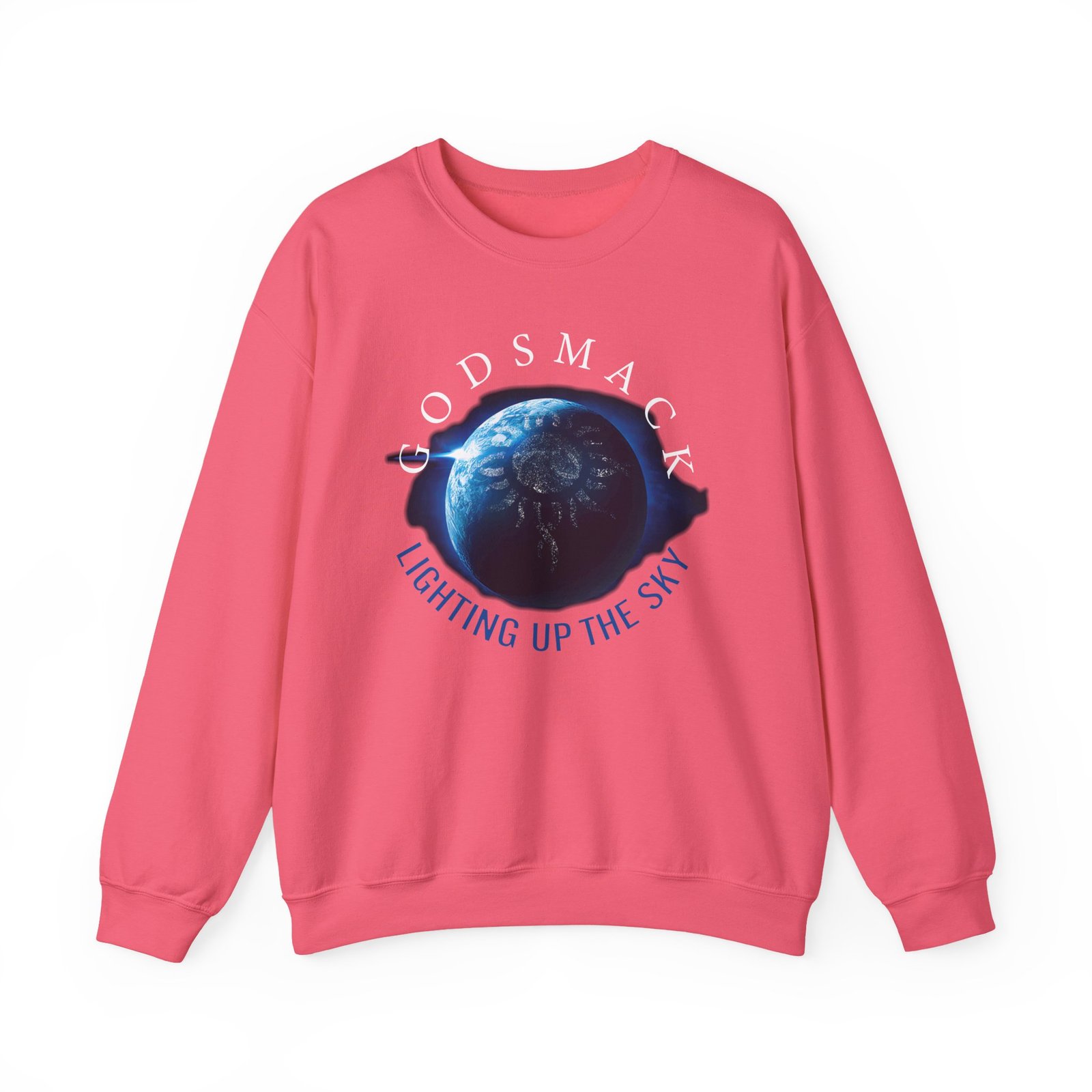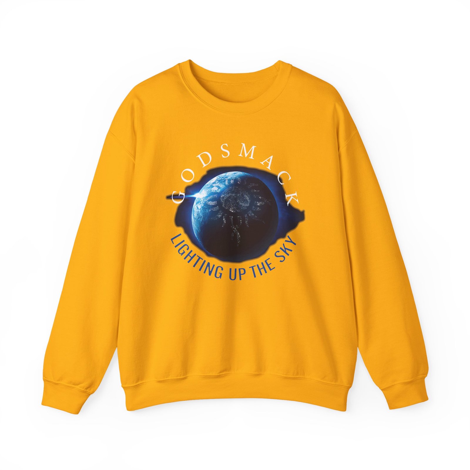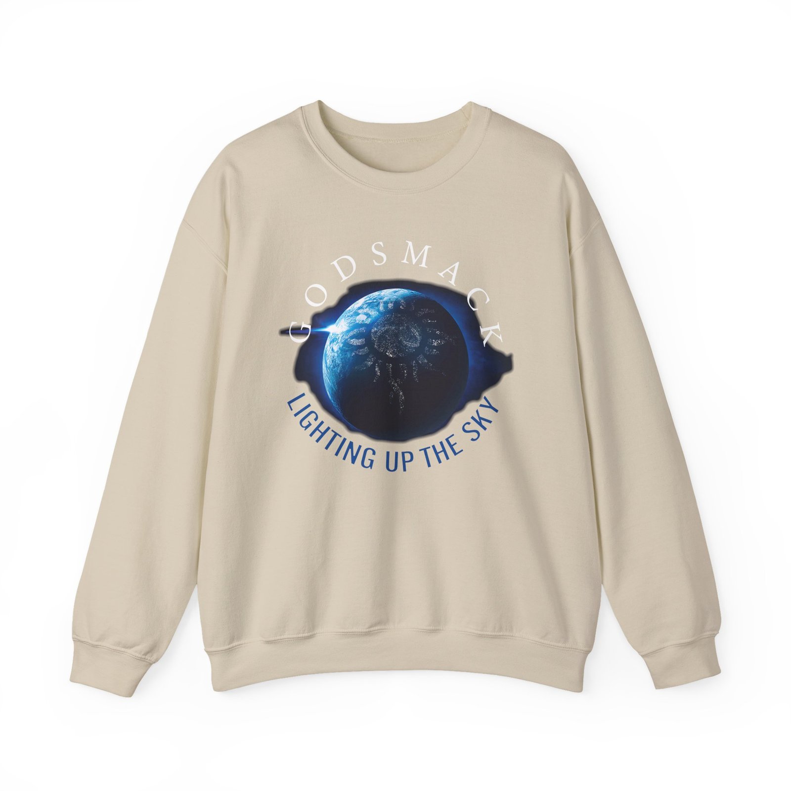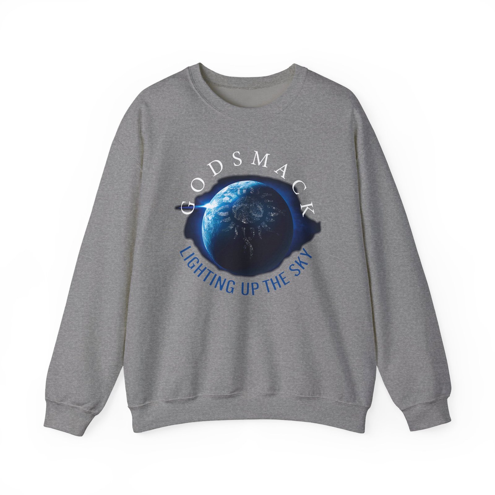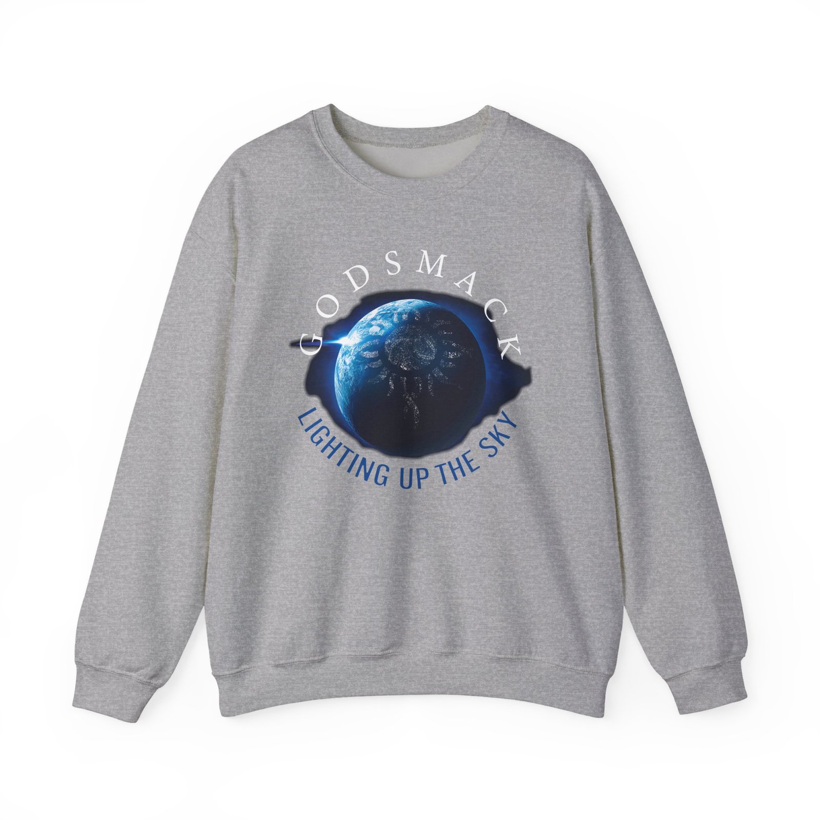 Ideal for any situation, a Godsmack Lighting Up the Sky Sun unisex heavy blend crewneck sweatshirt is pure comfort. These garments are made from polyester and cotton. This combination helps designs come out looking fresh and beautiful. The collar is ribbed knit, so it retains its shape even after washing. There are no itchy side seams on these sweaters.