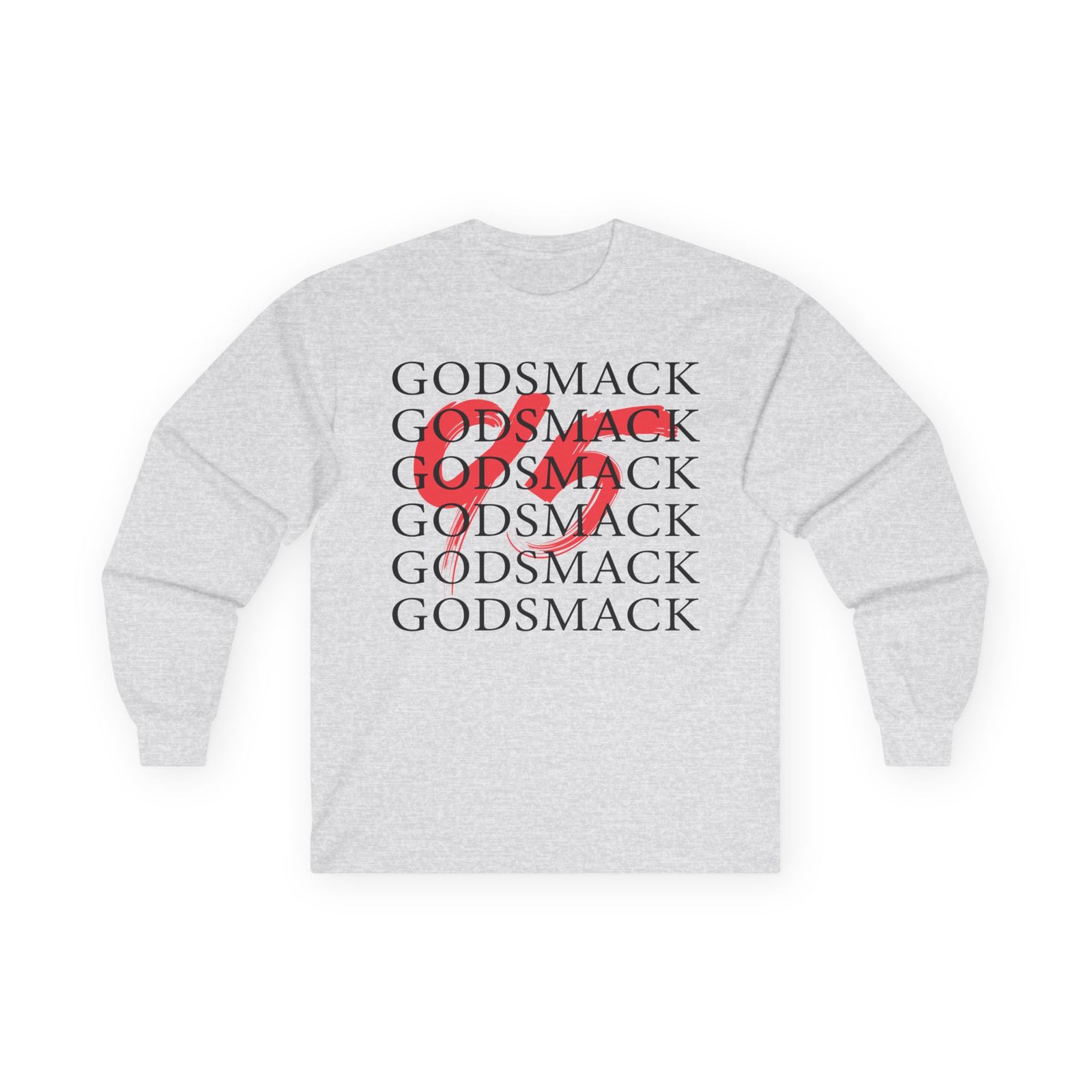 A bit more formal than a standard-issue t-shirt, the Godsmack Overlay Logo ultra cotton long sleeve tee is a clear comfort winner. The sleeves also act as a nice frame. There are no side seams. The shoulders are taped for improved durability. This makes for a good fitting around the shoulders and neck. The cotton used for these shirts is environmentally friendly.