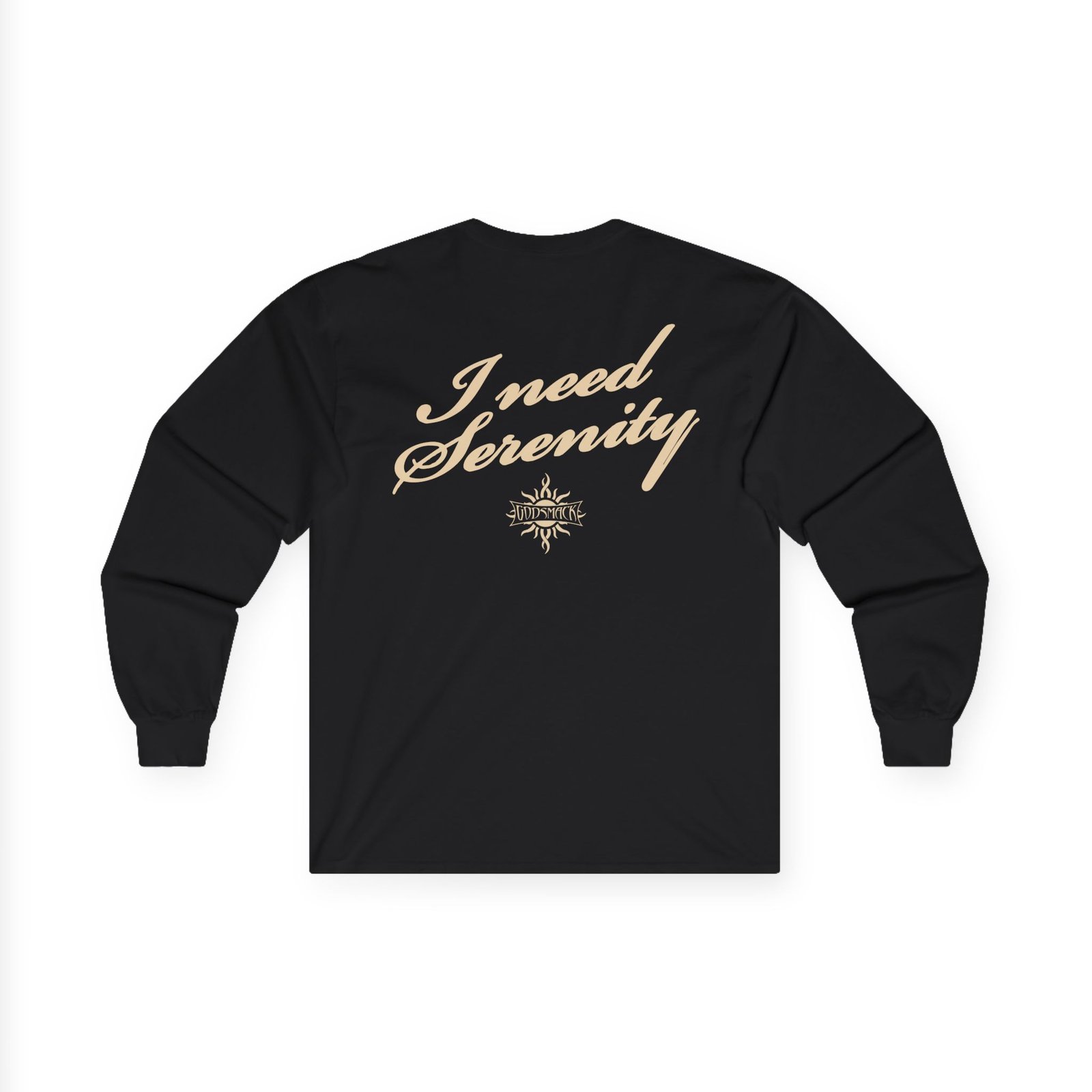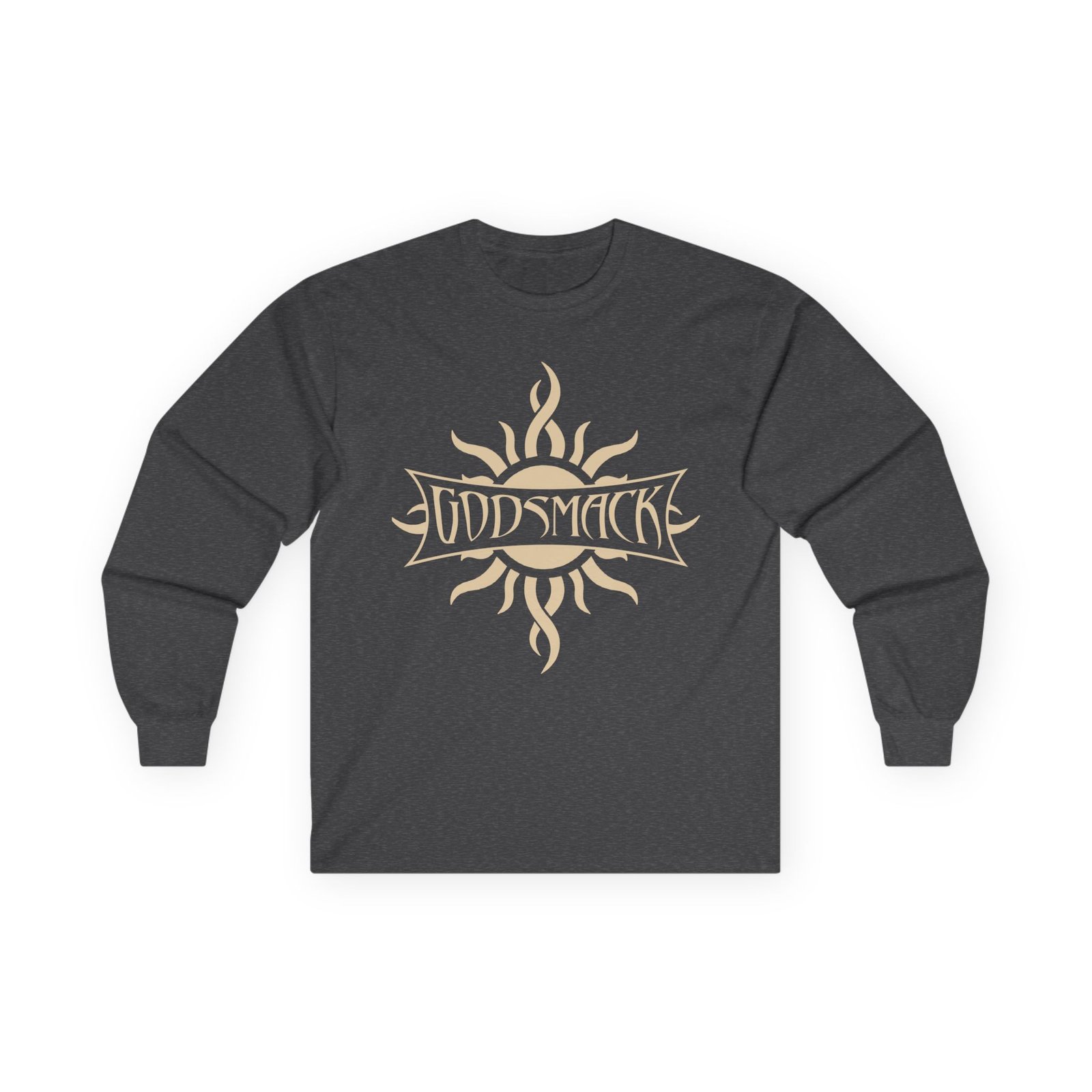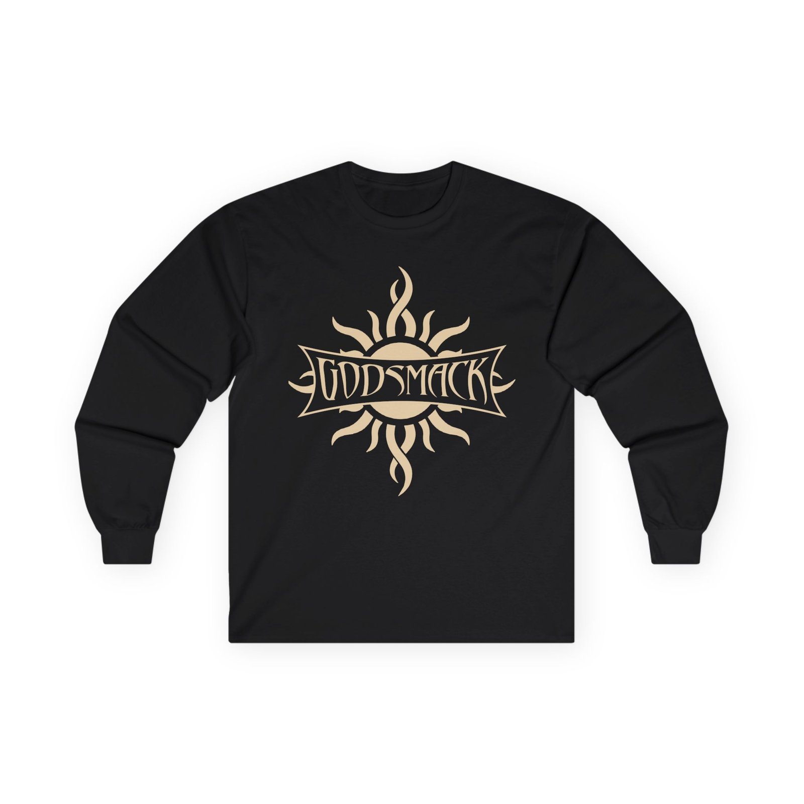 A bit more formal than a standard-issue t-shirt, the Godsmack Serenity ultra cotton long sleeve tee is a clear comfort winner. The sleeves also act as a nice frame. There are no side seams. The shoulders are taped for improved durability. This makes for a good fitting around the shoulders and neck. The cotton used for these shirts is environmentally friendly.