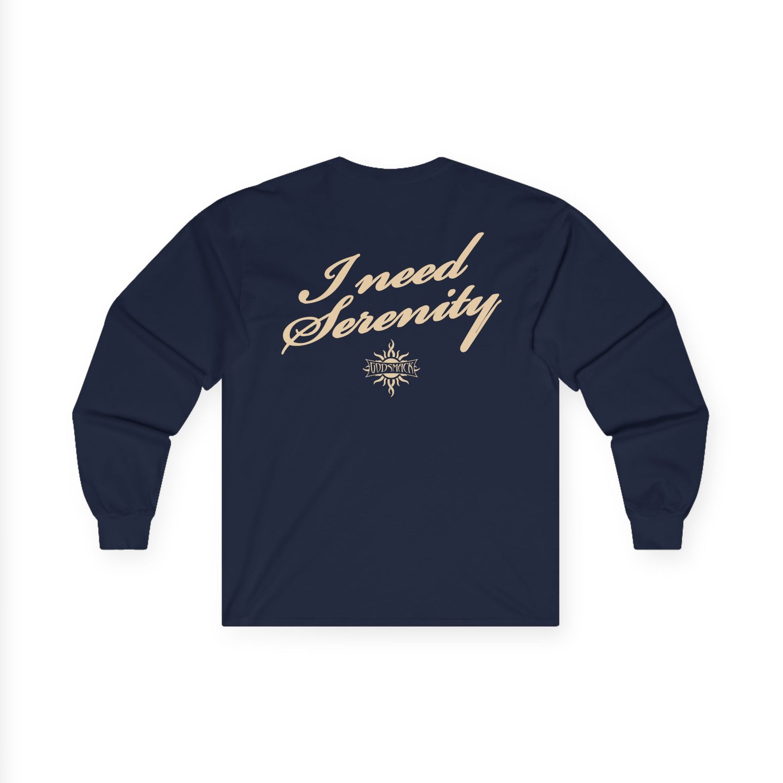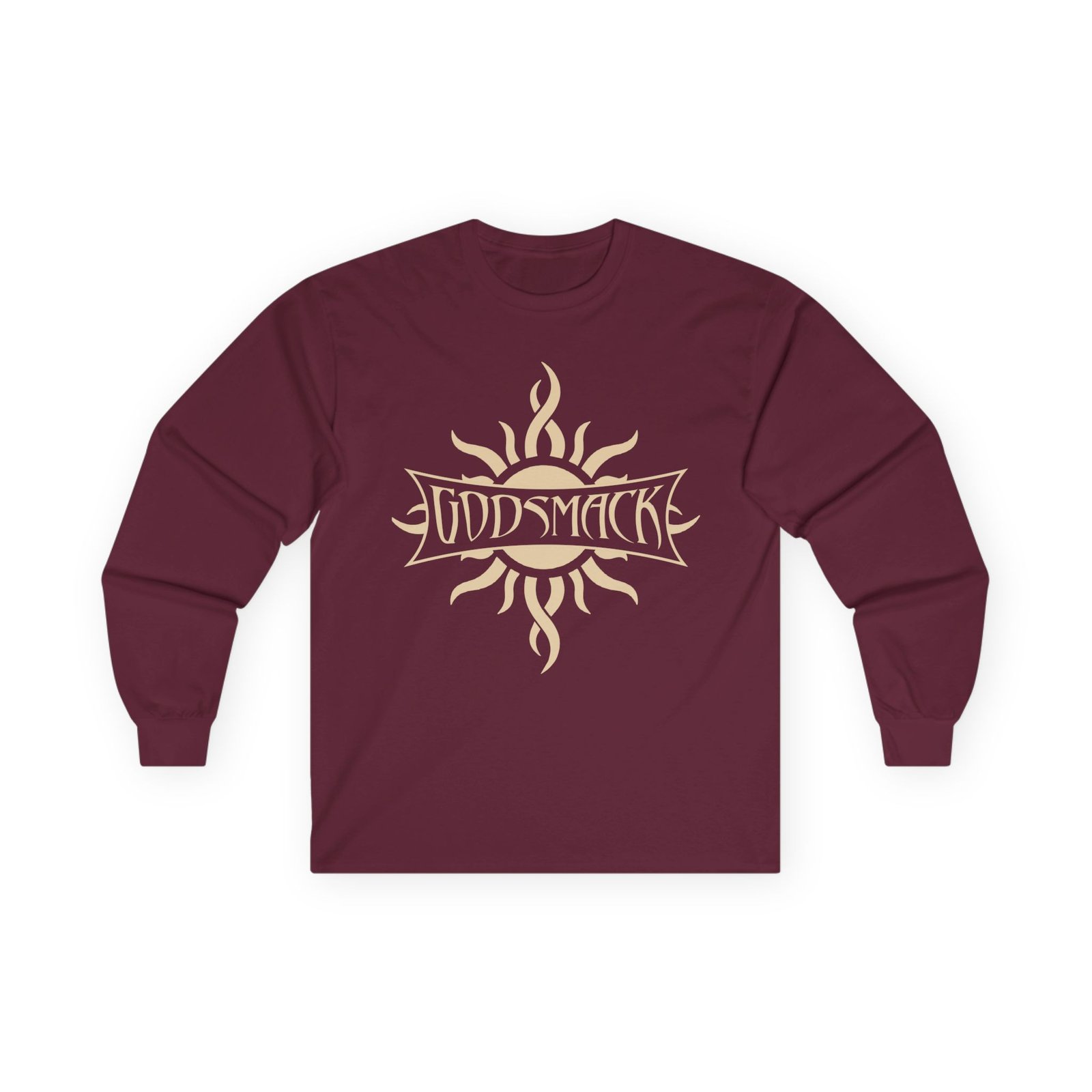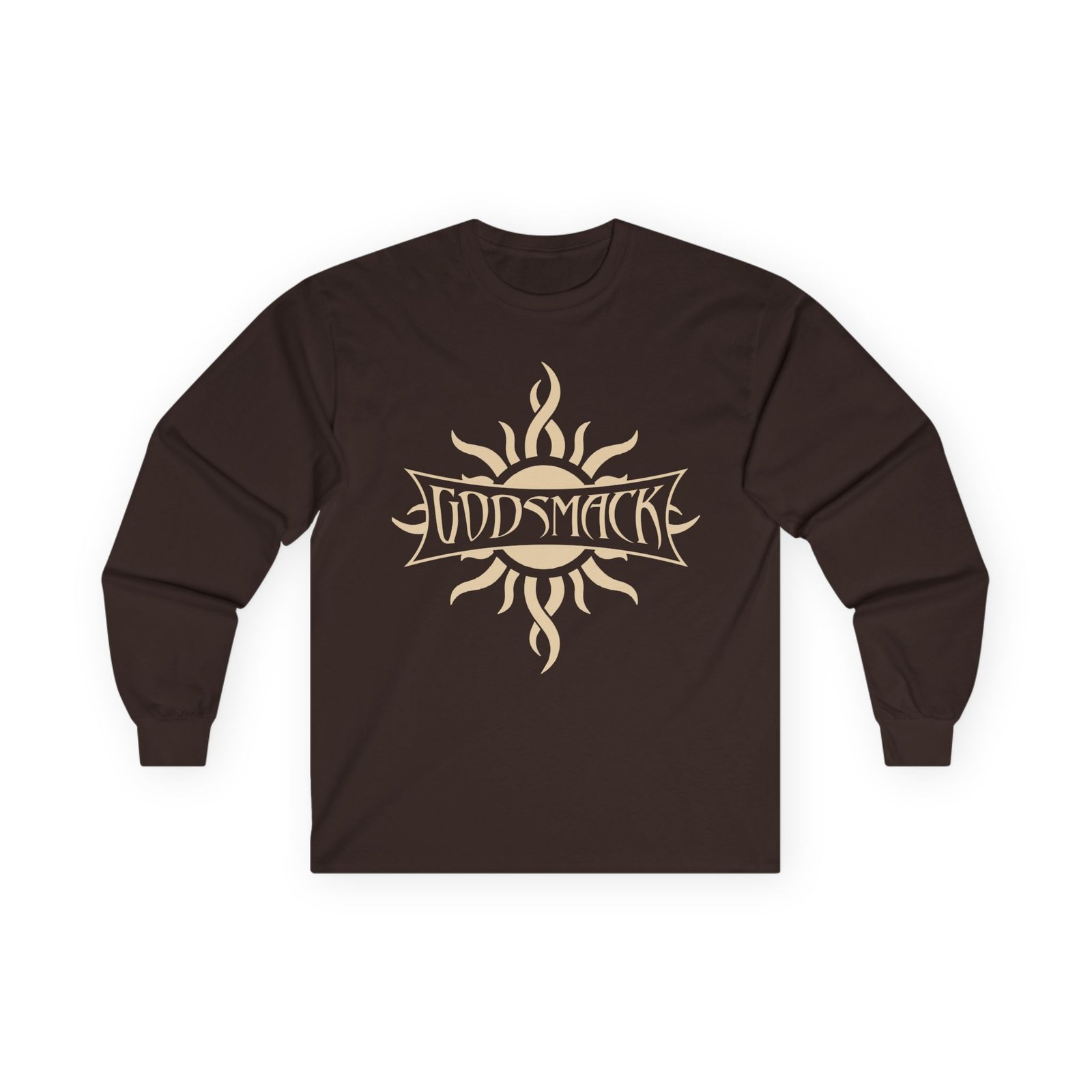 A bit more formal than a standard-issue t-shirt, the Godsmack Serenity ultra cotton long sleeve tee is a clear comfort winner. The sleeves also act as a nice frame. There are no side seams. The shoulders are taped for improved durability. This makes for a good fitting around the shoulders and neck. The cotton used for these shirts is environmentally friendly.