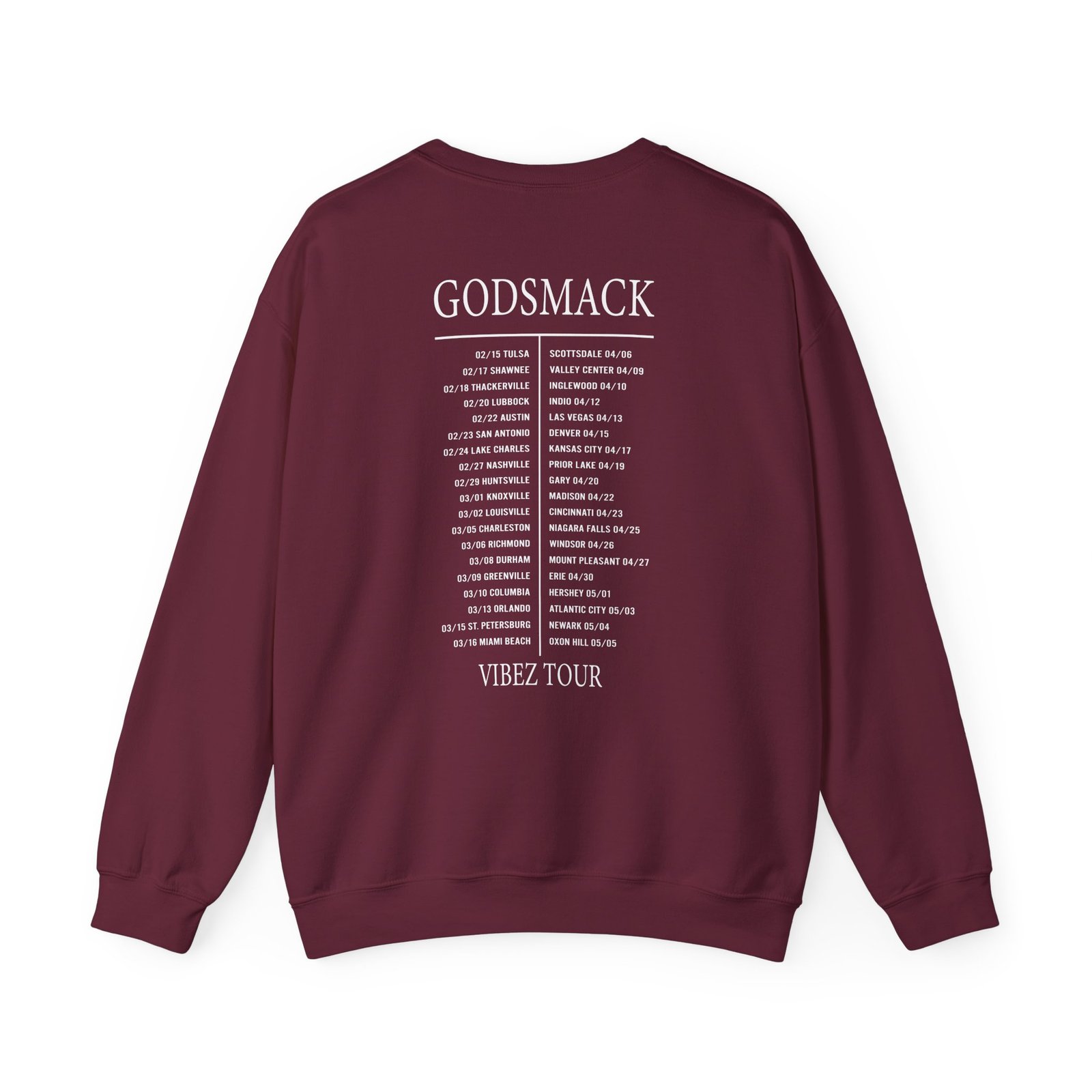 Ideal for any situation, a Godsmack Vibez Tour unisex heavy blend crewneck sweatshirt is pure comfort. These garments are made from polyester and cotton. This combination helps designs come out looking fresh and beautiful. The collar is ribbed knit, so it retains its shape even after washing. There are no itchy side seams on these sweaters.