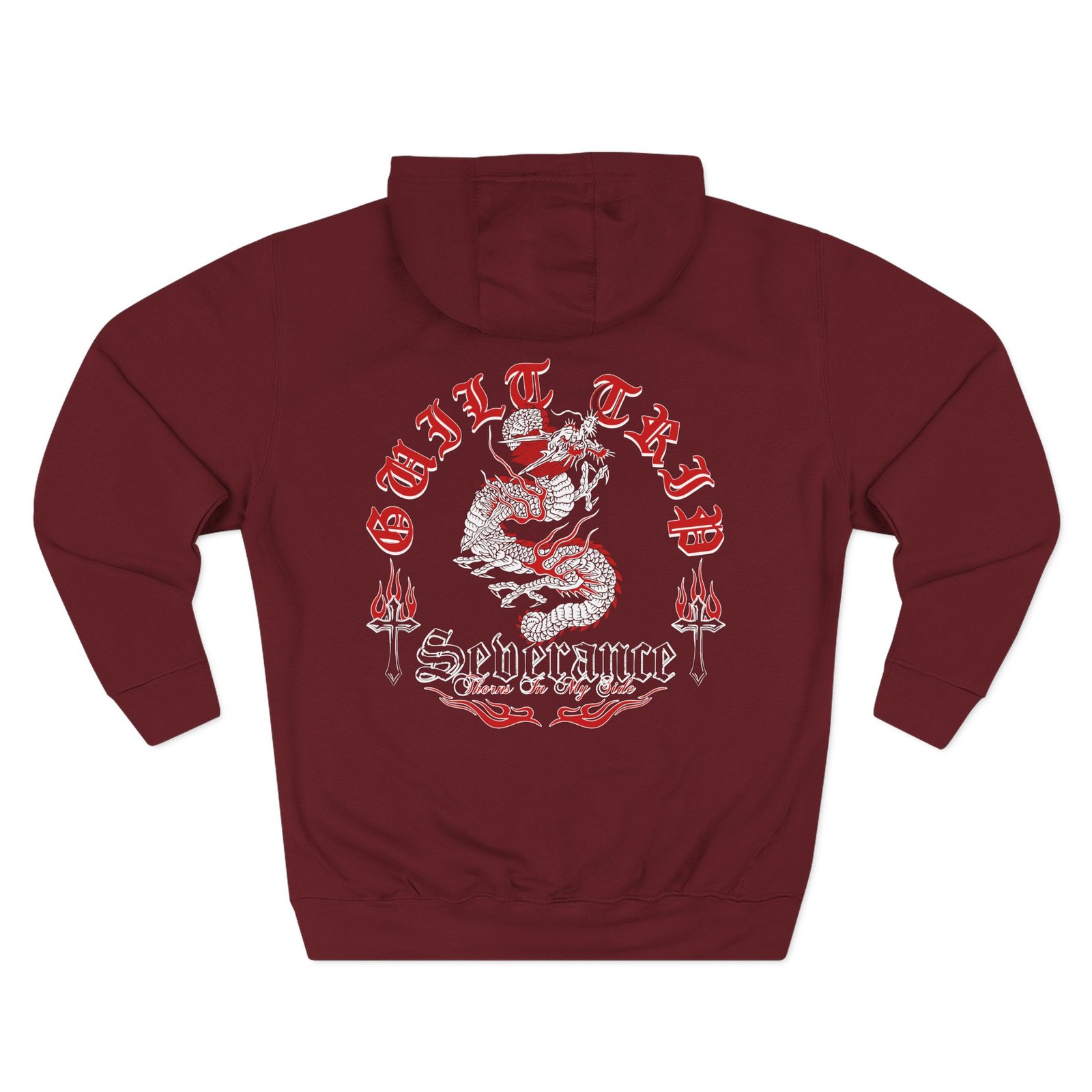 Beat the cold with this Guilt Trip Dragon premium pullover hoodie that’s just the right layer of warm and cozy. Made with three-panel fleece lining, this pullover is double stitched for durability and roomy. Pick one in your favorite color to match your style.