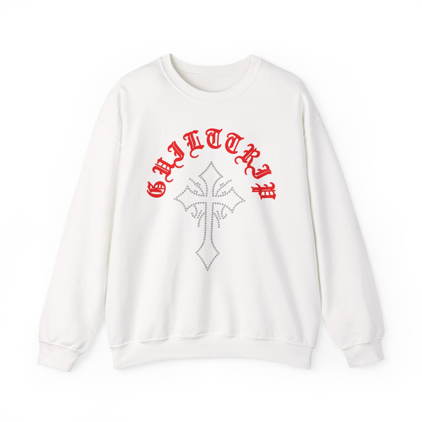 Ideal for any situation, a Guilt Trip Rhinestone unisex heavy blend crewneck sweatshirt is pure comfort. These garments are made from polyester and cotton. This combination helps designs come out looking fresh and beautiful. The collar is ribbed knit, so it retains its shape even after washing. There are no itchy side seams on these sweaters.