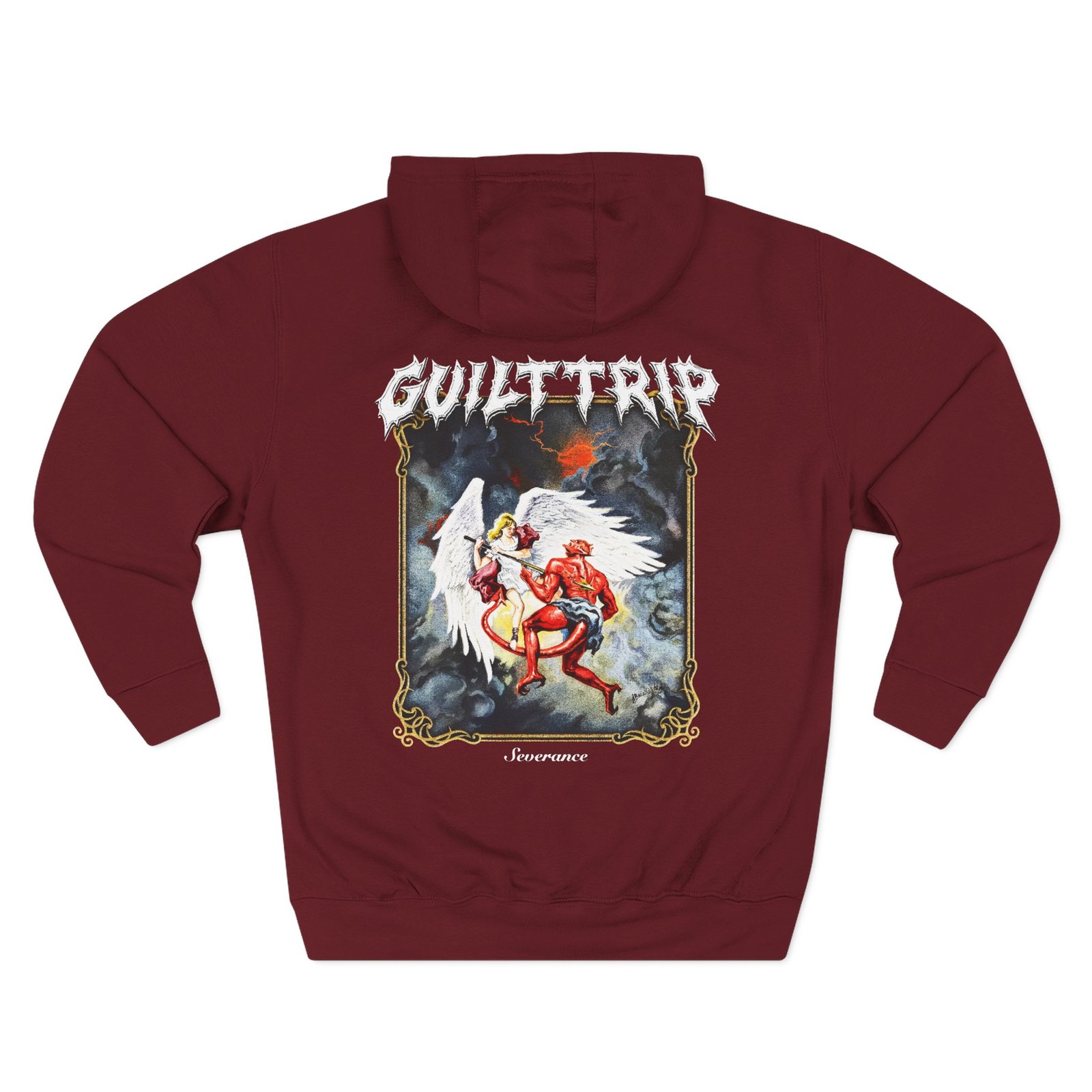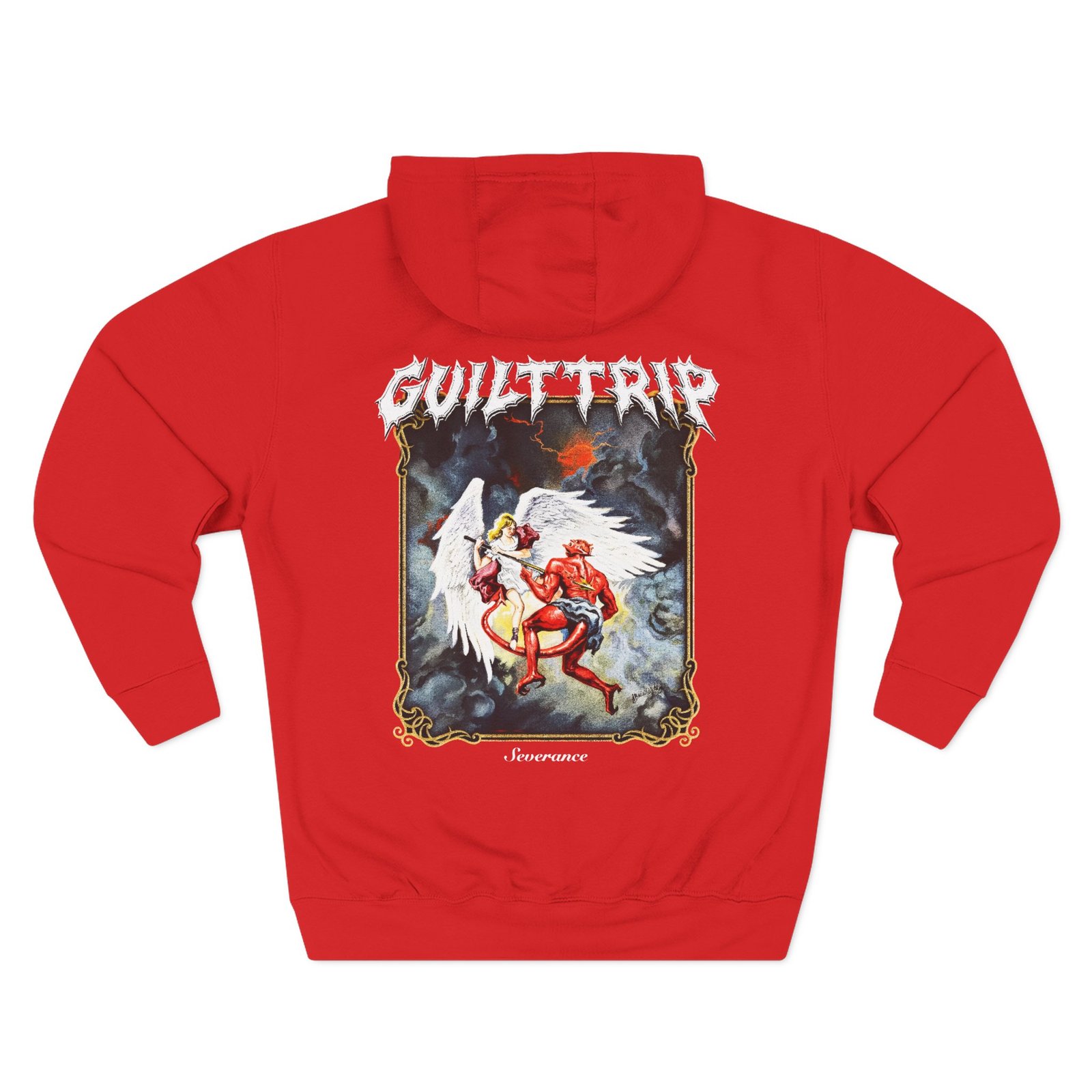 Beat the cold with this Guilt Trip Severance premium pullover hoodie that’s just the right layer of warm and cozy. Made with three-panel fleece lining, this pullover is double stitched for durability and roomy. Pick one in your favorite color to match your style.
