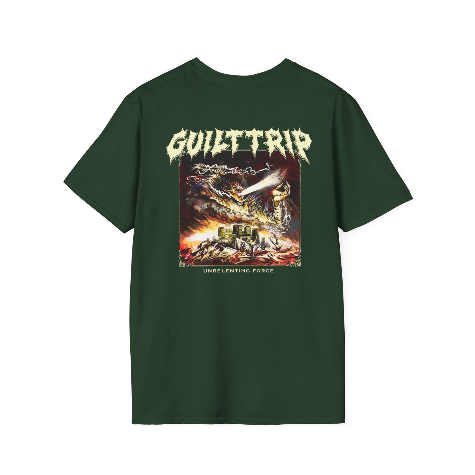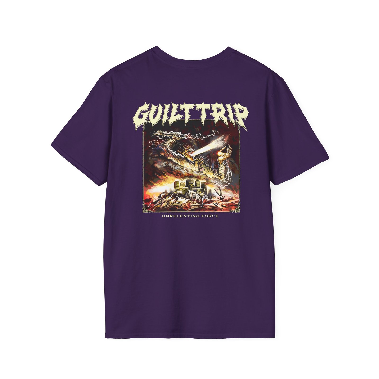 The Guilt Trip Unrelenting Force unisex soft-style t-shirt puts a new spin on casual comfort. Made from very soft materials, this tee is 100% cotton for solid colors. Heather colors and sports grey include polyester. The shoulders have twill tape for improved durability. There are no side seams. The collar is made with ribbed knitting to prevent curling damage.