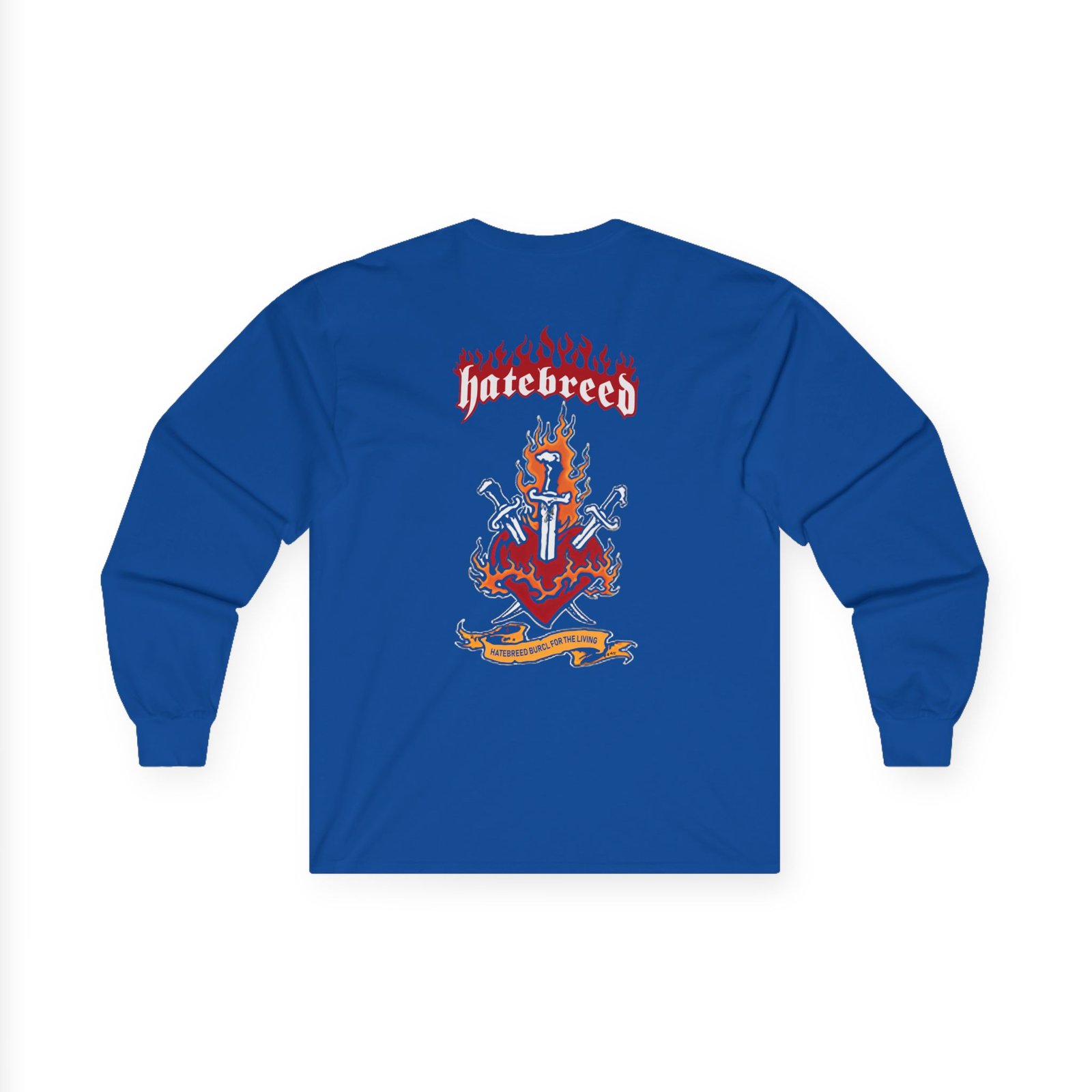 A bit more formal than a standard-issue t-shirt, the Hatebreed Burial for the Living 98 Tour ultra cotton long sleeve tee is a clear comfort winner. The sleeves also act as a nice frame. There are no side seams. The shoulders are taped for improved durability. This makes for a good fitting around the shoulders and neck. The cotton used for these shirts is environmentally friendly.