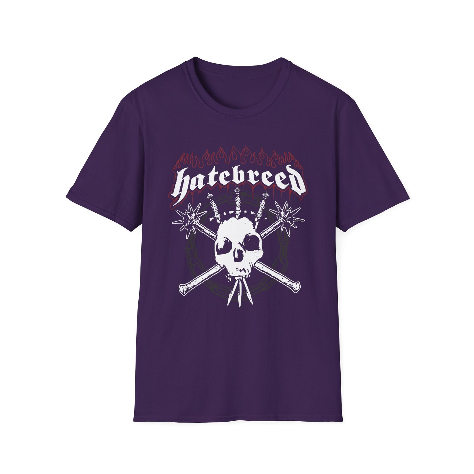 The Hatebreed Flames & Skull Logo unisex soft-style t-shirt puts a new spin on casual comfort. Made from very soft materials, this tee is 100% cotton for solid colors. Heather colors and sports grey include polyester. The shoulders have twill tape for improved durability. There are no side seams. The collar is made with ribbed knitting to prevent curling damage.