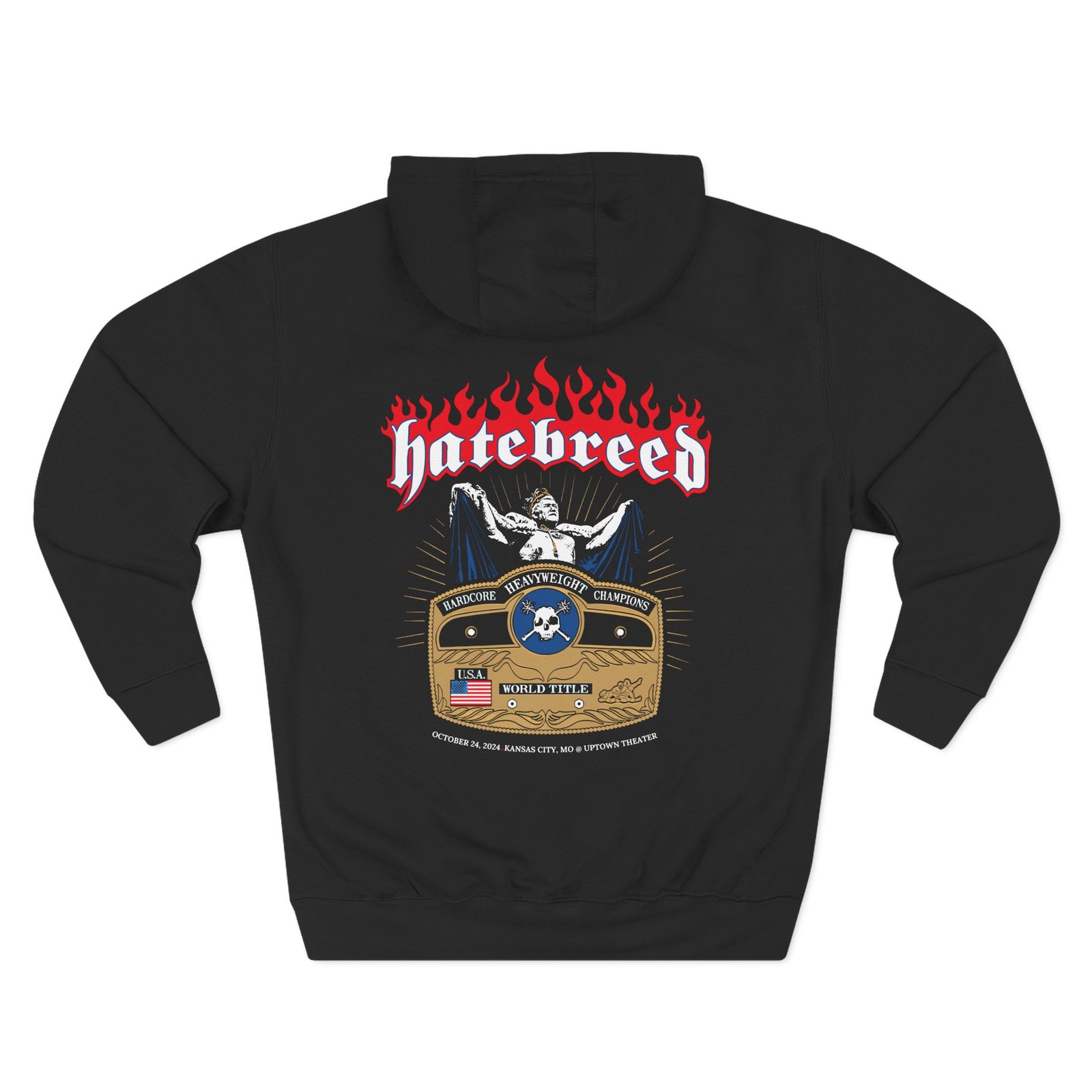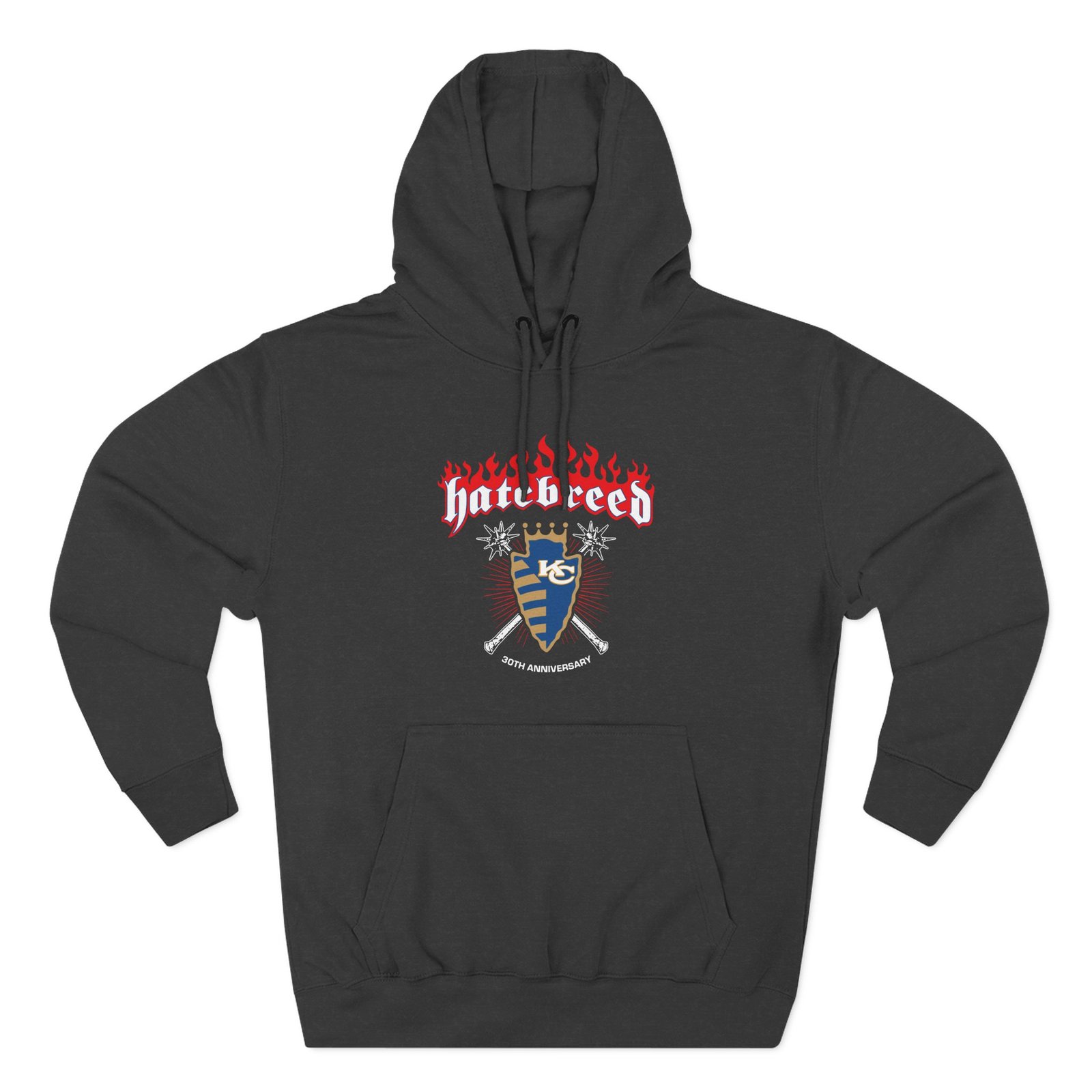 Beat the cold with this Hatebreed Kansas City premium pullover hoodie that’s just the right layer of warm and cozy. Made with three-panel fleece lining, this pullover is double stitched for durability and roomy. Pick one in your favorite color to match your style.